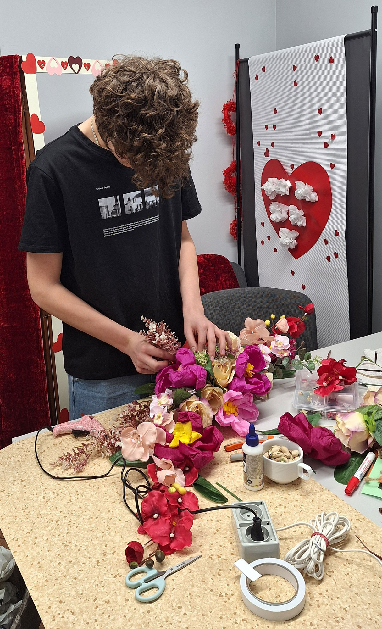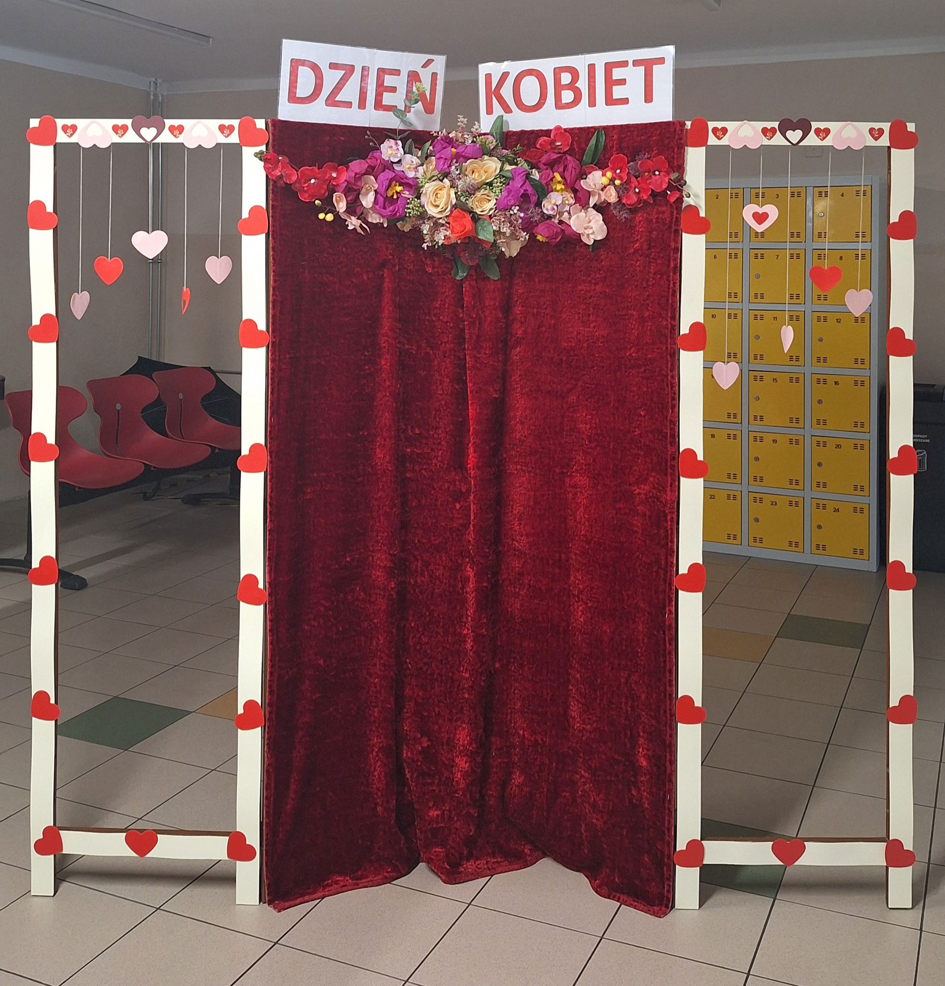 Chłopcy wykonali dla koleżanek i Pań wychowawczyń z internatu dekorację w formie ramki do robienia zdjęć na okoliczność Dnia Kobiet.