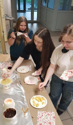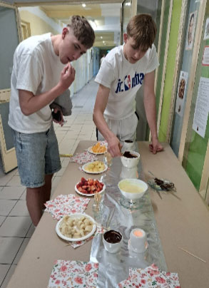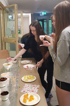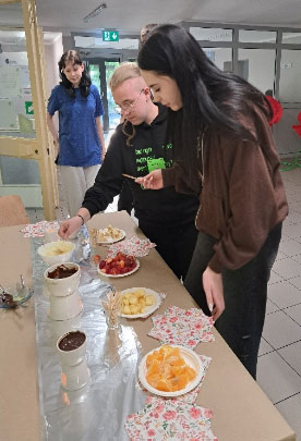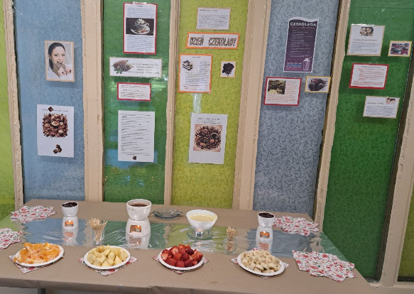 Młodzież z ochotą korzystała z poczęstunku, poznając różne smaki czekolady w połączeniu z owocami. Wraz ze wspomnieniem cudownego smaku i zalet produktu przez rok oczekiwać będziemy na kolejne czekoladowe święto.