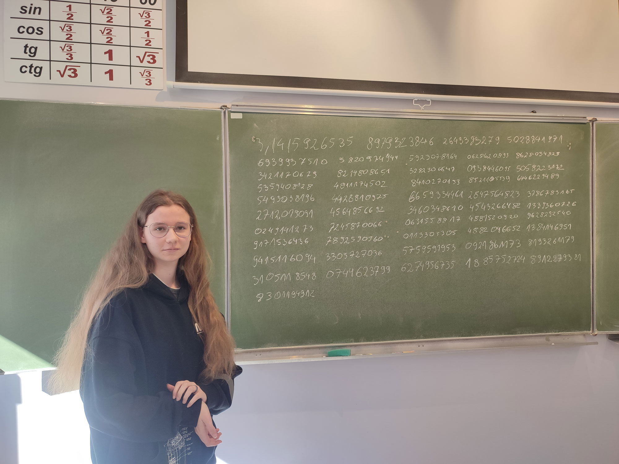 501 to najlepszy wynik tegorocznego konkursu „Liczba π” i nowy rekord szkoły (poprzedni rekord 454). Właśnie tyle cyfr w rozwinięciu dziesiętnym liczby π zapamiętała zwyciężczyni Martyna Uchto z klasy 3D. Drugie miejsce zajęła Julia Jaromin z klasy 2Bp – zapamiętała 214 cyfr, trzecie miejsce Wanesa Miszczyszyn z klasy 4Cp – 101 cyfr.