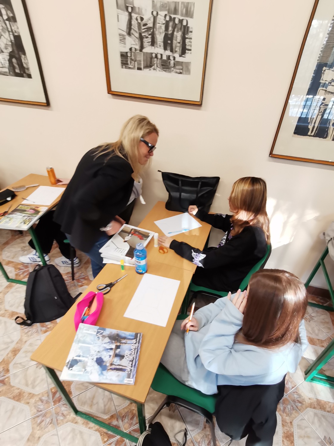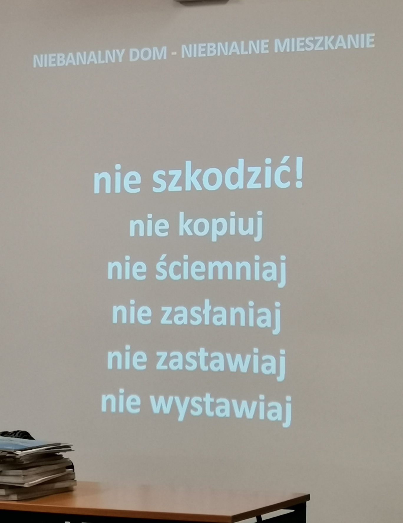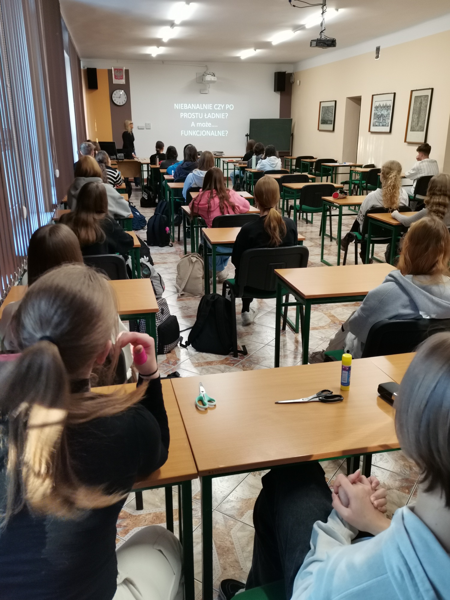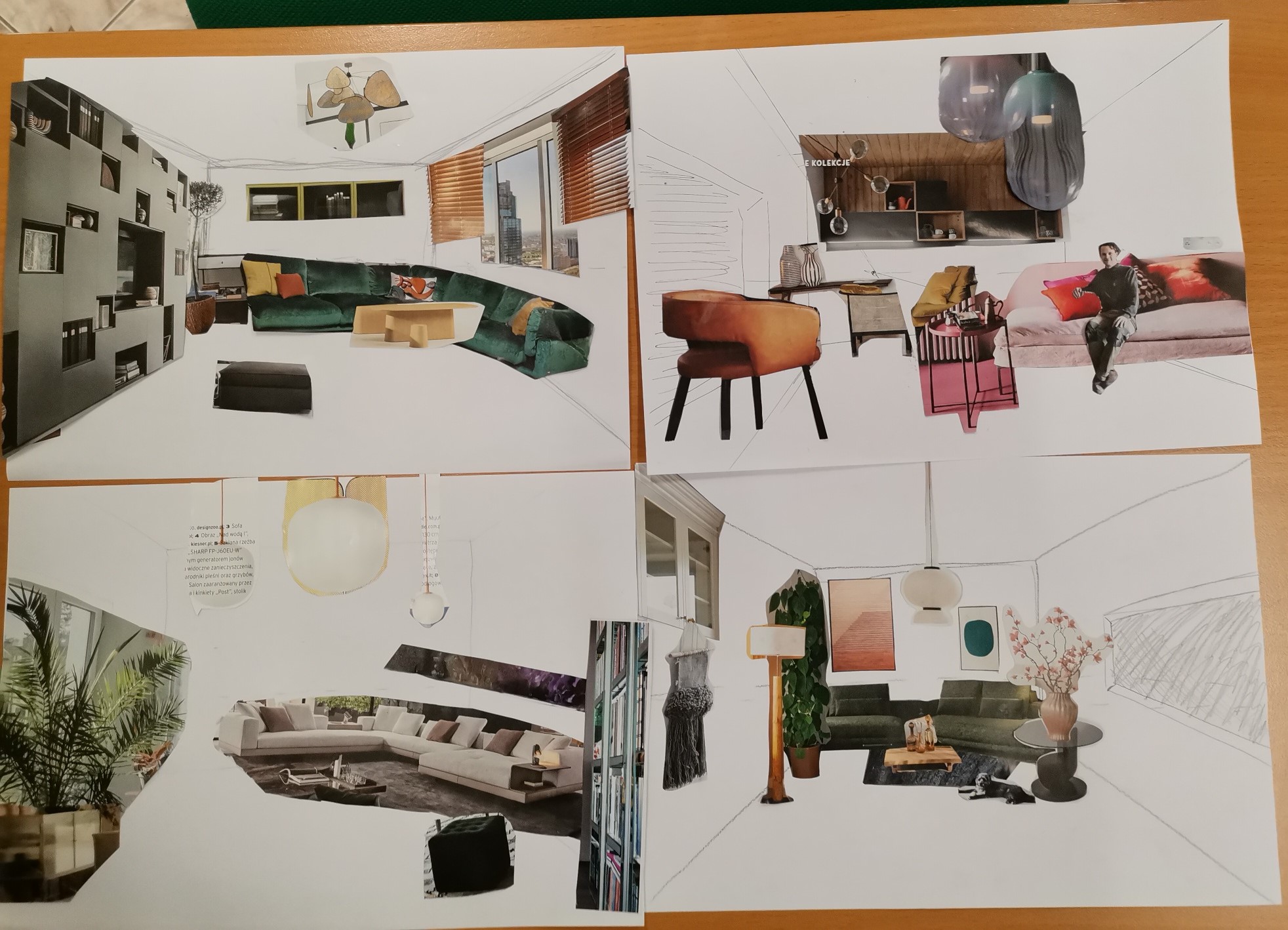 27 listopada 2023 r. uczennice i uczniowie z klas 1 E i 1 F z kierunku – Technik aranżacji wnętrz uczestniczyli w warsztatach prowadzonych przez wykładowcę Akademii Śląskiej panią doktor Barbarę Uherek- Bradecką. Temat warsztatów to: „Niebanalny dom - niebanalne wnętrze”. Na początku zajęć było wprowadzenie - co to jest w ogóle architektura wnętrz i na czym należy się skupić projektując. Hasło przewodnie architekta wnętrz to: nie szkodzić, nie kopiuj (z katalogu), nie ściemniaj (raczej jasne barwy), nie zasłaniaj (bez firan, zasłon), nie wystawiaj (wszystkich swoich pamiątek z podróży). Pokazane zostały błędy w aranżacji wnętrz na różnych przykładach, w różnych stylach mieszkania a także możliwości zastosowań różnych materiałów. W drugiej części warsztatów młodzież sama projektowała pokój naklejając na kartkę wycięte z katalogów elementy wyposażenia wnętrza. Można zauważyć dużą różnorodność w podejściu do tematu na załączonych zdjęciach. Zajęcia możemy uznać za bardzo udane. Na zakończenie warsztatów pani doktor zaprosiła młodzież do uczestnictwa w 4 DESIGN DAYS, w terminie 25 - 28.01.2024 r. w Międzynarodowym Centrum Kongresowym w Katowicach.