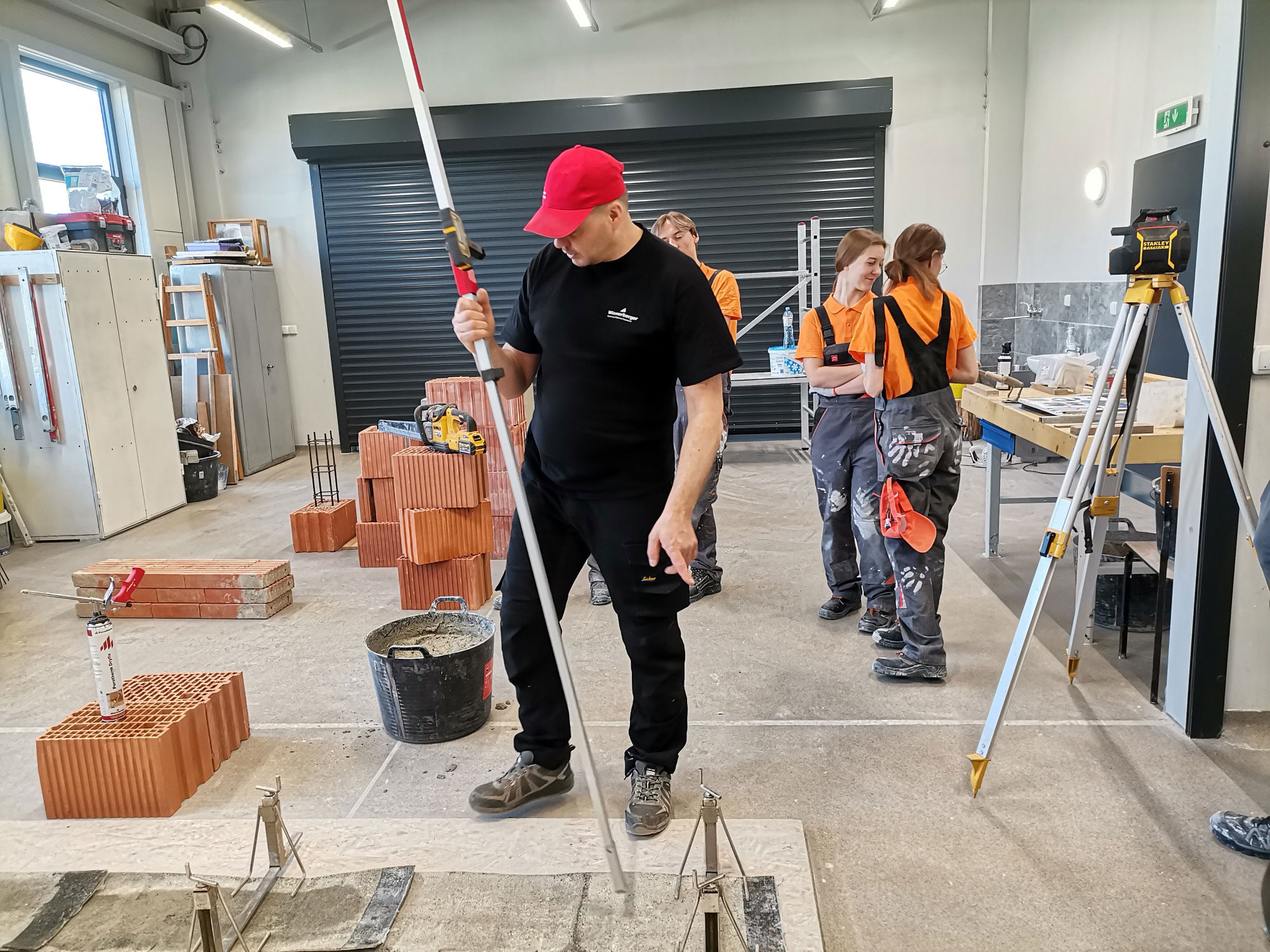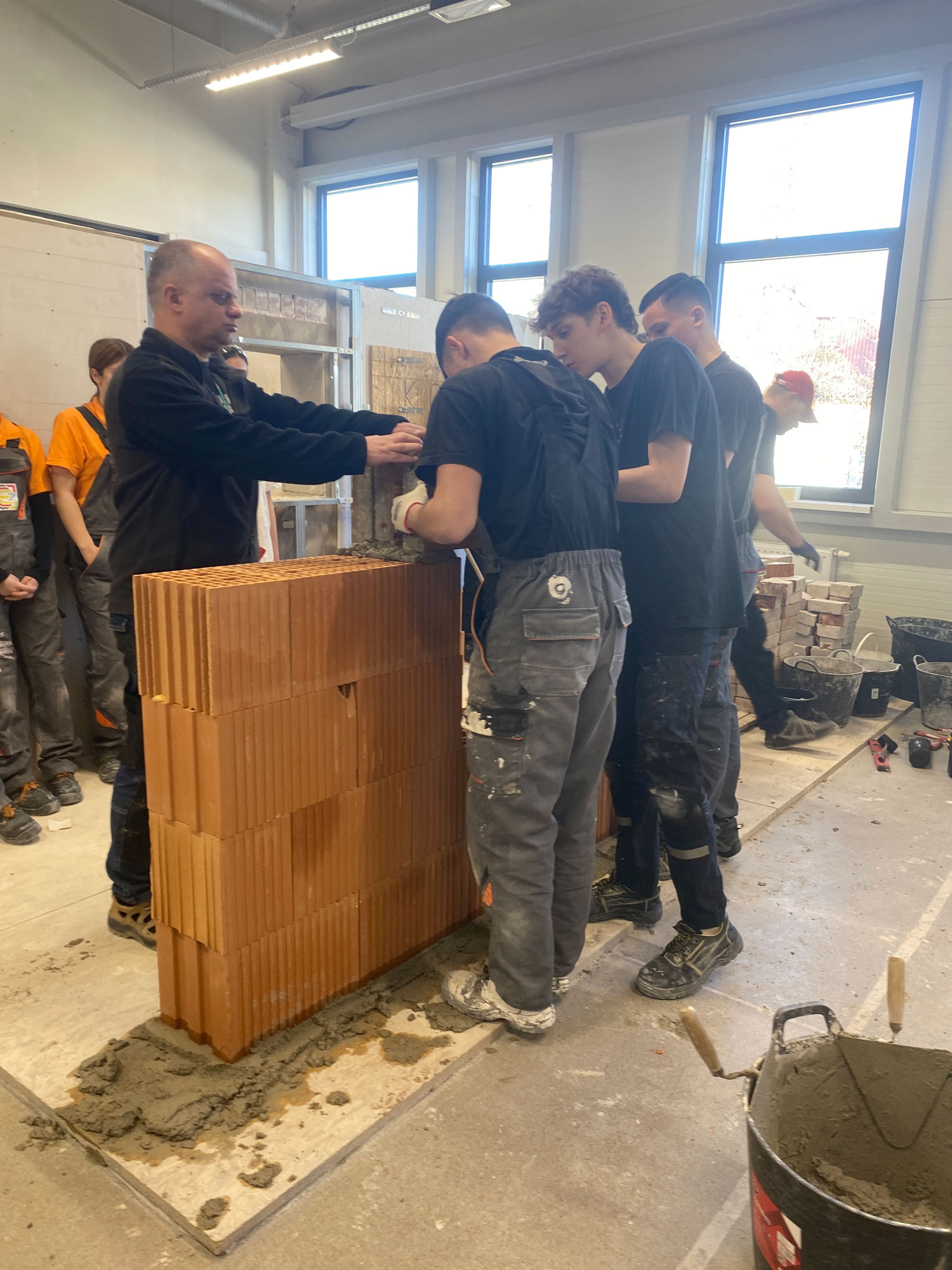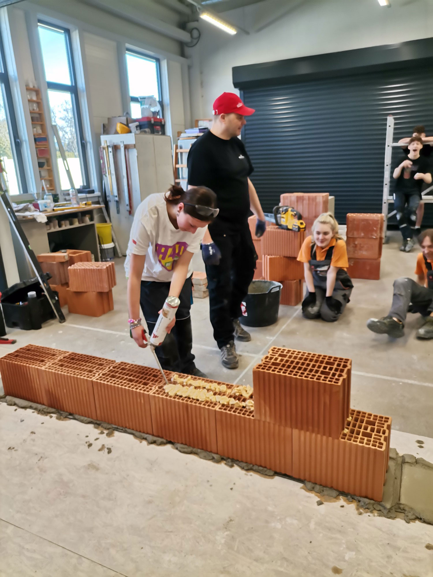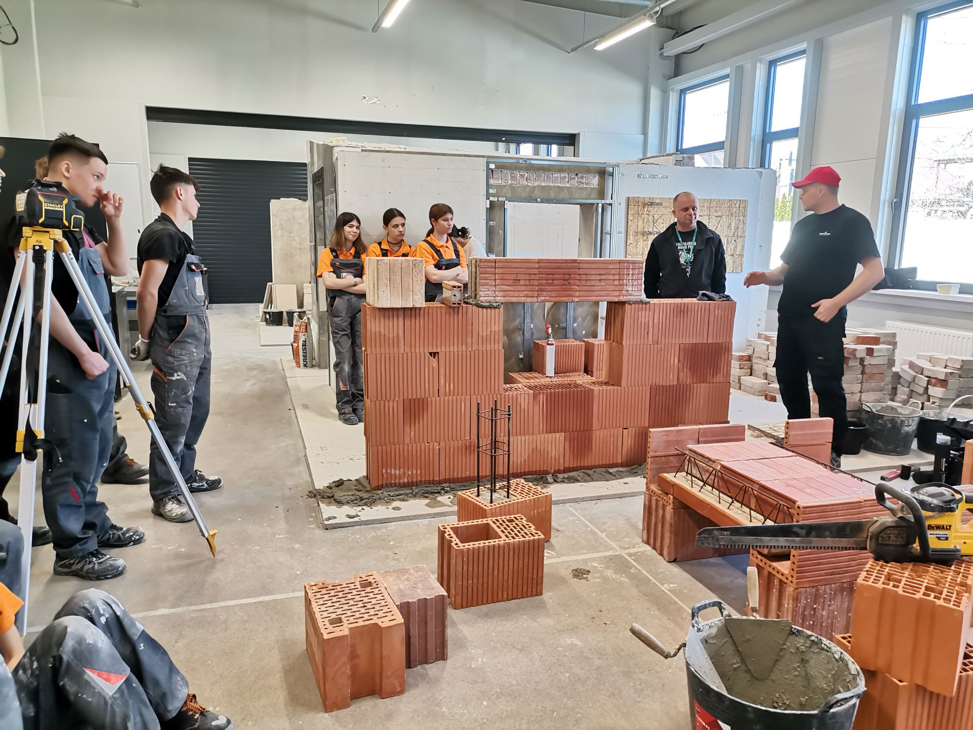 18 marca 2025 r. uczniowie klas 2 E, 1 B, 5 A, 3 ap uczestniczyli w warsztatach prowadzonych przez przedstawiciela firmy Wienerberger. Wienerberger to firma zajmująca się materiałami budowlanymi oraz rozwiązaniami infrastrukturalnymi. Produkują oni między innymi wysokiej jakości ceramiczne cegły konstrukcyjne, ceramiczne rozwiązania na elewacje, dachówki ceramiczne, systemy rur ceramicznych oraz z tworzyw sztucznych a także ceramiczne i betonowe bruki. Nasi uczniowie mieli możliwość zbudowania fragmentu muru z zastosowaniem Porotherm Dryfix – jest to technologia murowania pustaków ceramicznych na sucho, na cienkowarstwową zaprawę Porotherm Dryfix. Cechuje ją szybkość, prostota, lekkość i czystość murowania. A także wykonania nadproża czy fragmentu stropu co nie sprawiało uczniom trudności. Część z materiałów, które zostały wykorzystane w trakcie warsztatów została w szkole i posłuży do murowania na następnych zajęciach. Była to kolejna dawka wiedzy przekazana w interesujący sposób. W następnym roku szkolnym również uczniowie innych klas będą mogli zapoznać się z tą technologią.