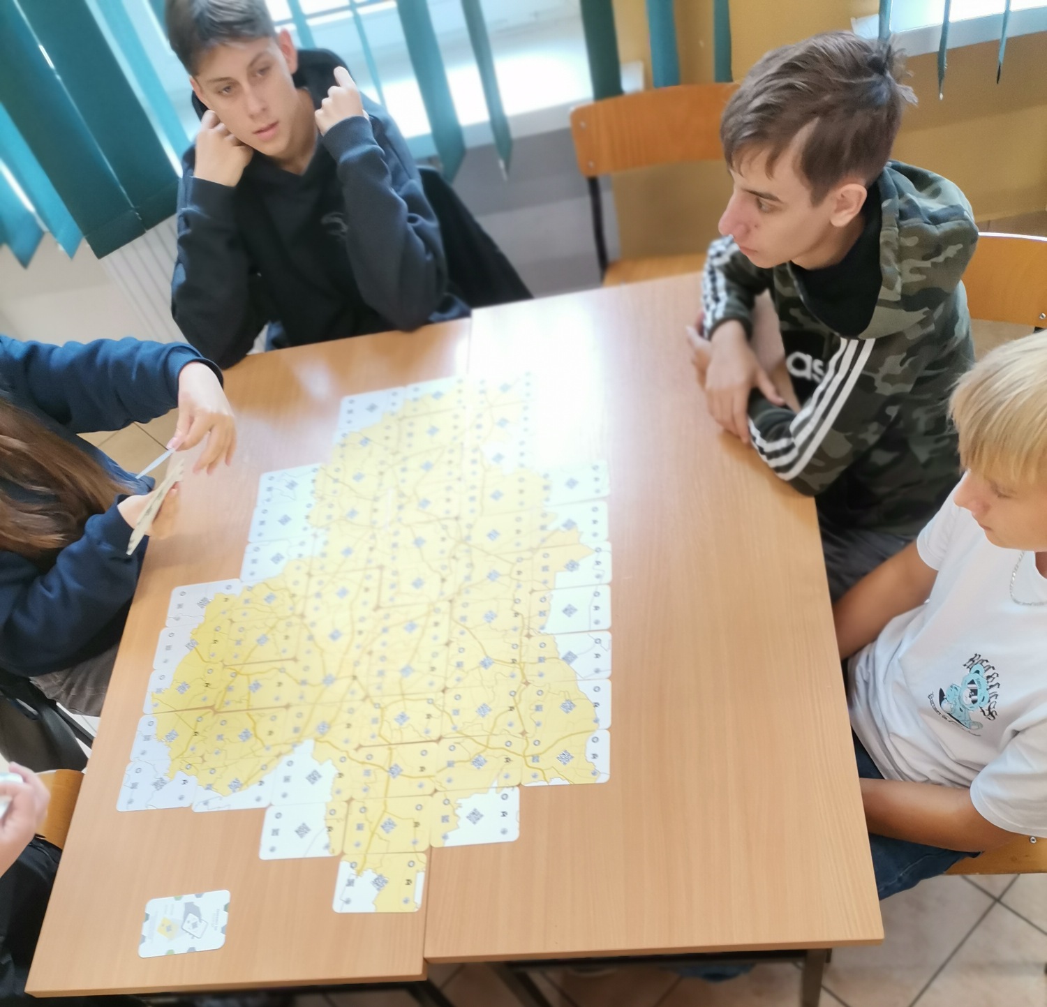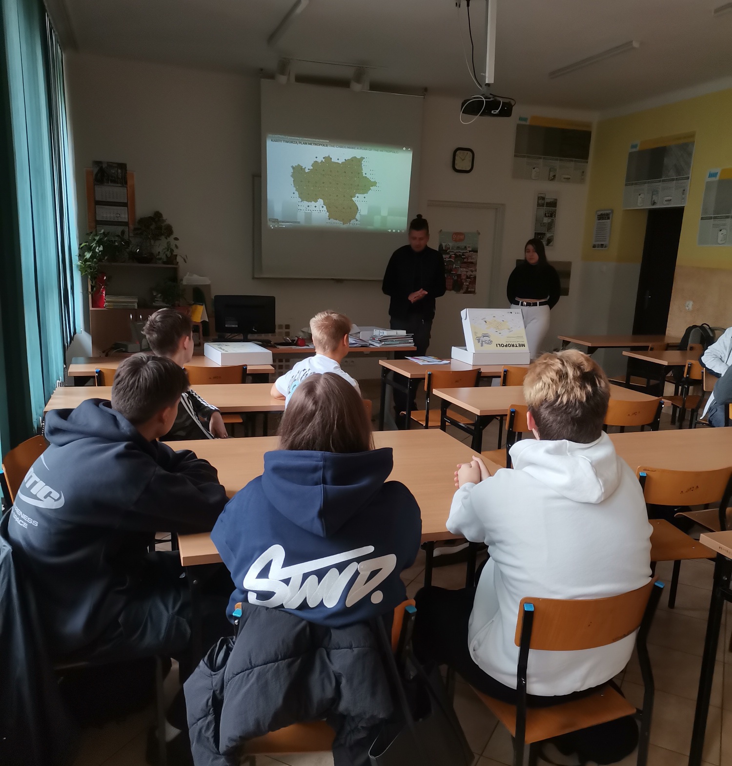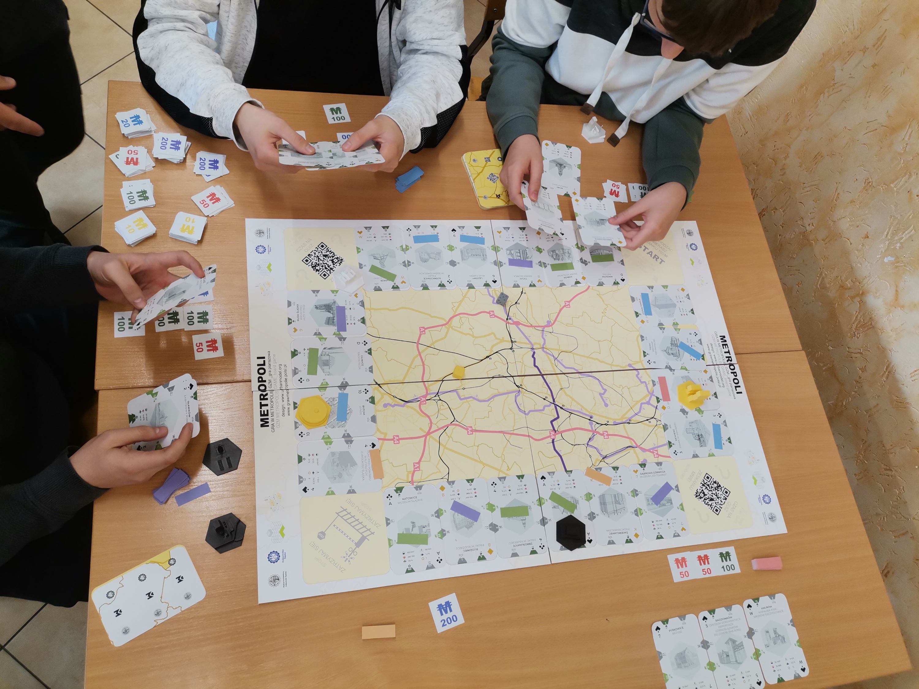 17 października 2025 r. przedstawiciele klas budowlanych: 1 Cp, 2 Bp, 3 Ap, 4 Ep uczestniczyli w warsztatach: „Gra w Metropolię”. Jest to planszowa gra strategiczna, w której gracze inwestują w nieruchomości, zarządzają funduszami i korzystają ze specjalnych połączeń komunikacyjnych. W czasie gry jest też część z quizem co wiąże się ze znajomością metropolii. Grę wymyślili i przygotowali studenci Koła Naukowego na Politechnice Śląskiej Wydziału Architektury pod kierunkiem Dziekana Wydziału Architektury- dr hab. inż. arch. prof. Tomasza Bradeckiego, którego gościliśmy w naszej szkole wraz ze studentką z Koła Naukowego. Uczestnicy gry w 2 zespołach mieli możliwość poznania metropolii w tym przypadku poprzez udział terenów zielonych w poszczególnych miastach wchodzących w skład metropolii. Inna opcja gry to komunikacja w metropolii. Było to połączenie zdobywania wiedzy i zabawy. Warsztaty możemy zaliczyć do udanych, a otrzymany komplet gry zostanie udostępniony również innym uczniom m.in. na zajęciach biznesu i zarządzania.