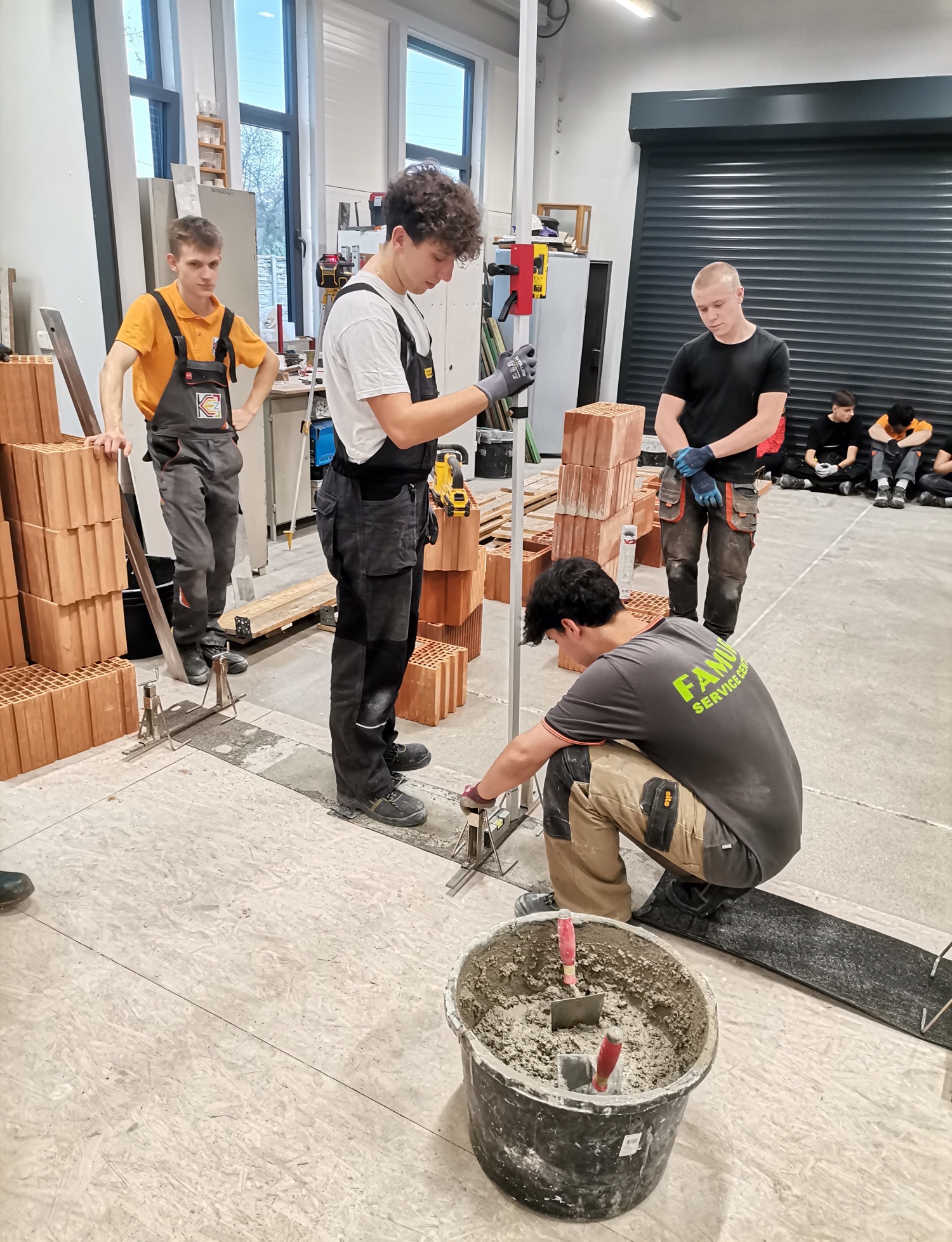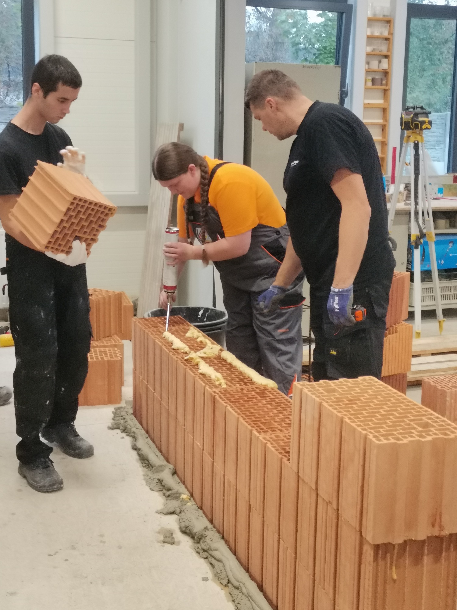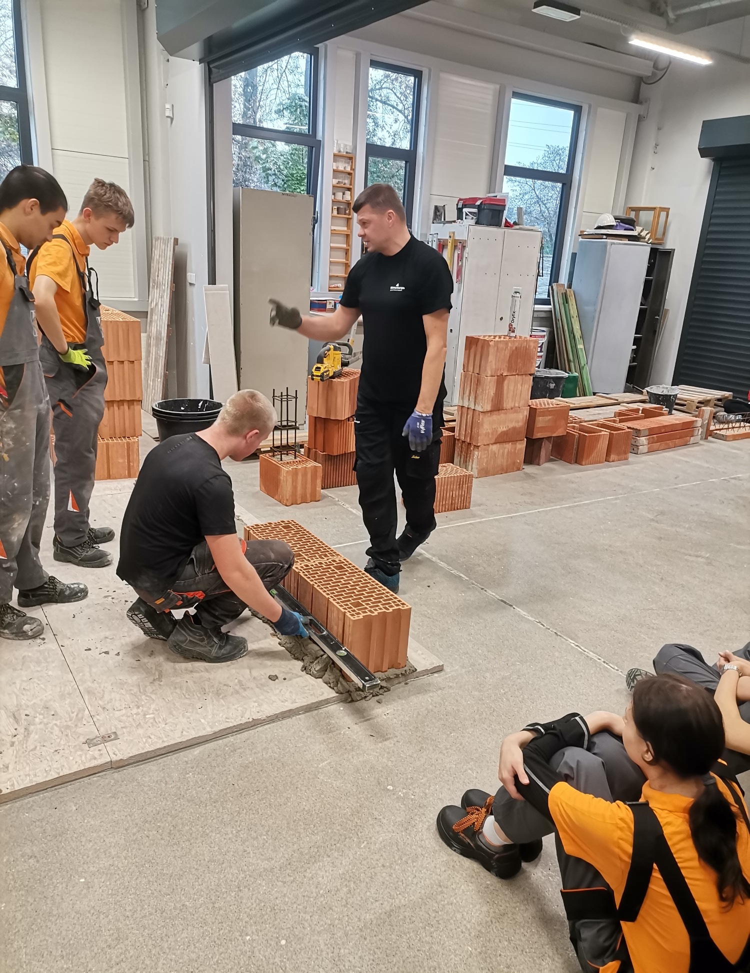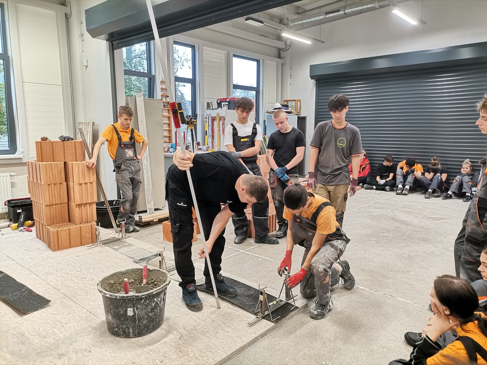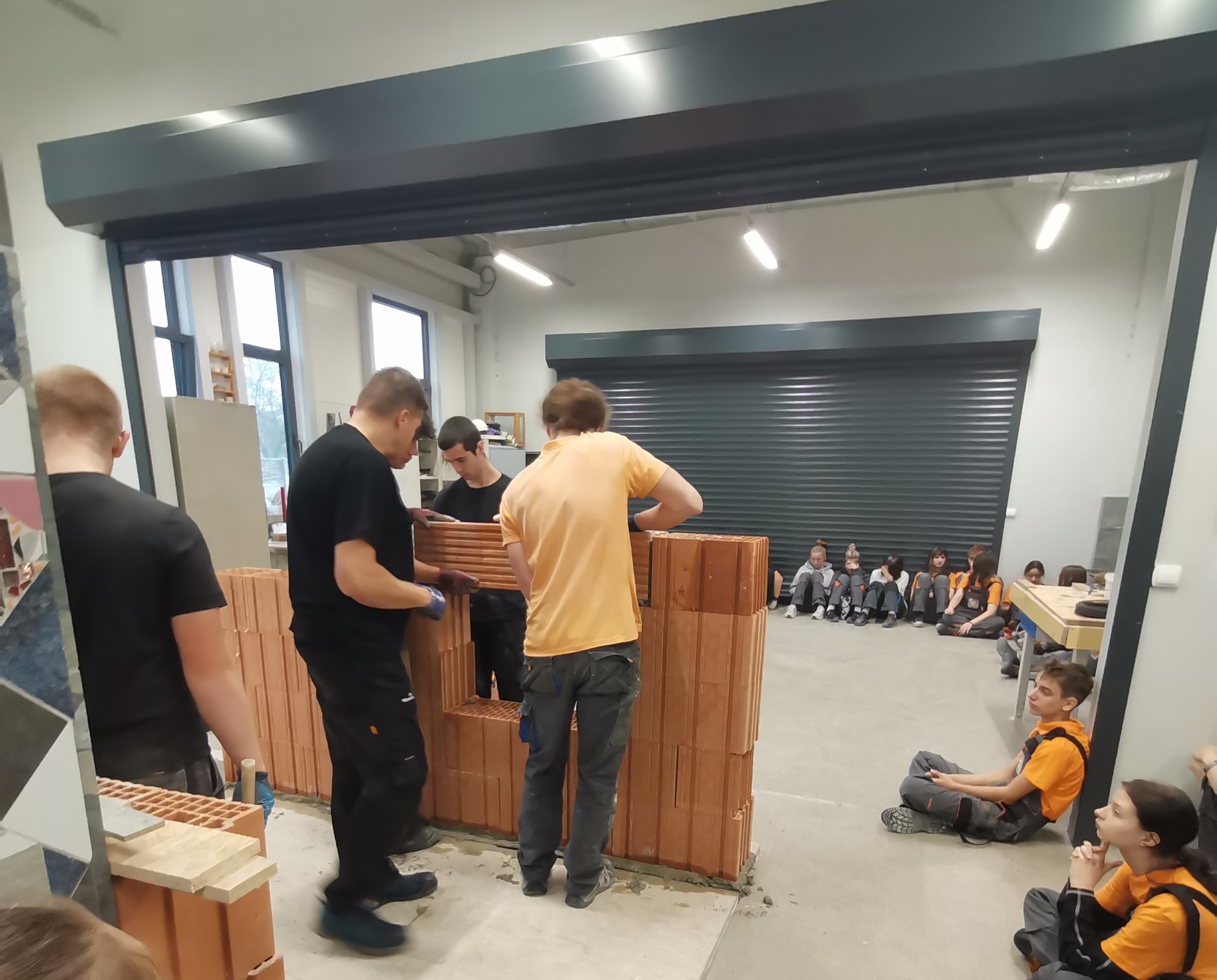 9 października 2025 r. na hali warsztatowej gościliśmy przedstawiciela firmy Wienerberger. Szkolenie to stało się już tradycją w naszej szkole. Udział w nim brali uczniowie - przedstawiciele klas: 1 ap, 2 Ap, 2 Bp, 3 Ap, 3 Ep, 4 Ep. Celem szkolenia było wzniesienie fragmentu muru z pustaków ceramicznych w systemie Dryfix. Część uczniów miała możliwość samodzielnego wykonania części zadania. Oprócz praktyki była również część wykładowa dotycząca działalności firmy, produktów, BHP w firmie i na budowie. Możemy powiedzieć, że po raz kolejny spotkanie przyniosło zwiększenie poziomu umiejętności i wiadomości przyszłych fachowców w dziedzinie budownictwa.