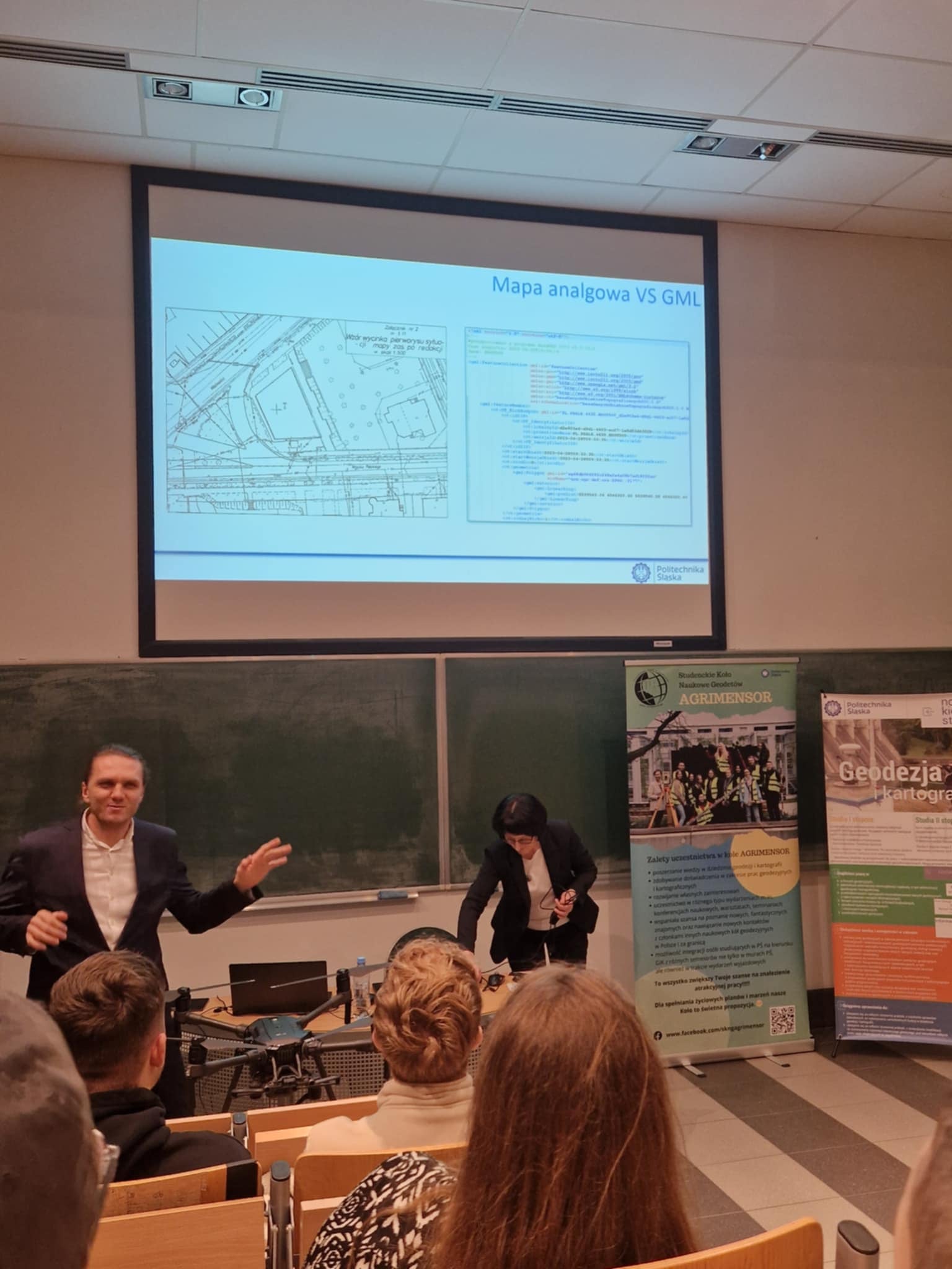 W ubiegły czwartek Politechnika Śląska 🏫 zgromadziła Młodzież z techników geodezyjnych województwa śląskiego👩‍🦰🧑‍🦰 na wspólne wykłady i pokazy. Mowa była o formatach .gml, sztucznej inteligencji w geodezji oraz metodach pomiarowych🤓🧠🌍. Przedstawiciele Wydziału Górnictwa, Inżynierii Bezpieczeństwa i Automatyki Przemysłowe zaprezentowali również nowoczesne instrumenty wykorzystywane podczas zajęć na Politechnice.