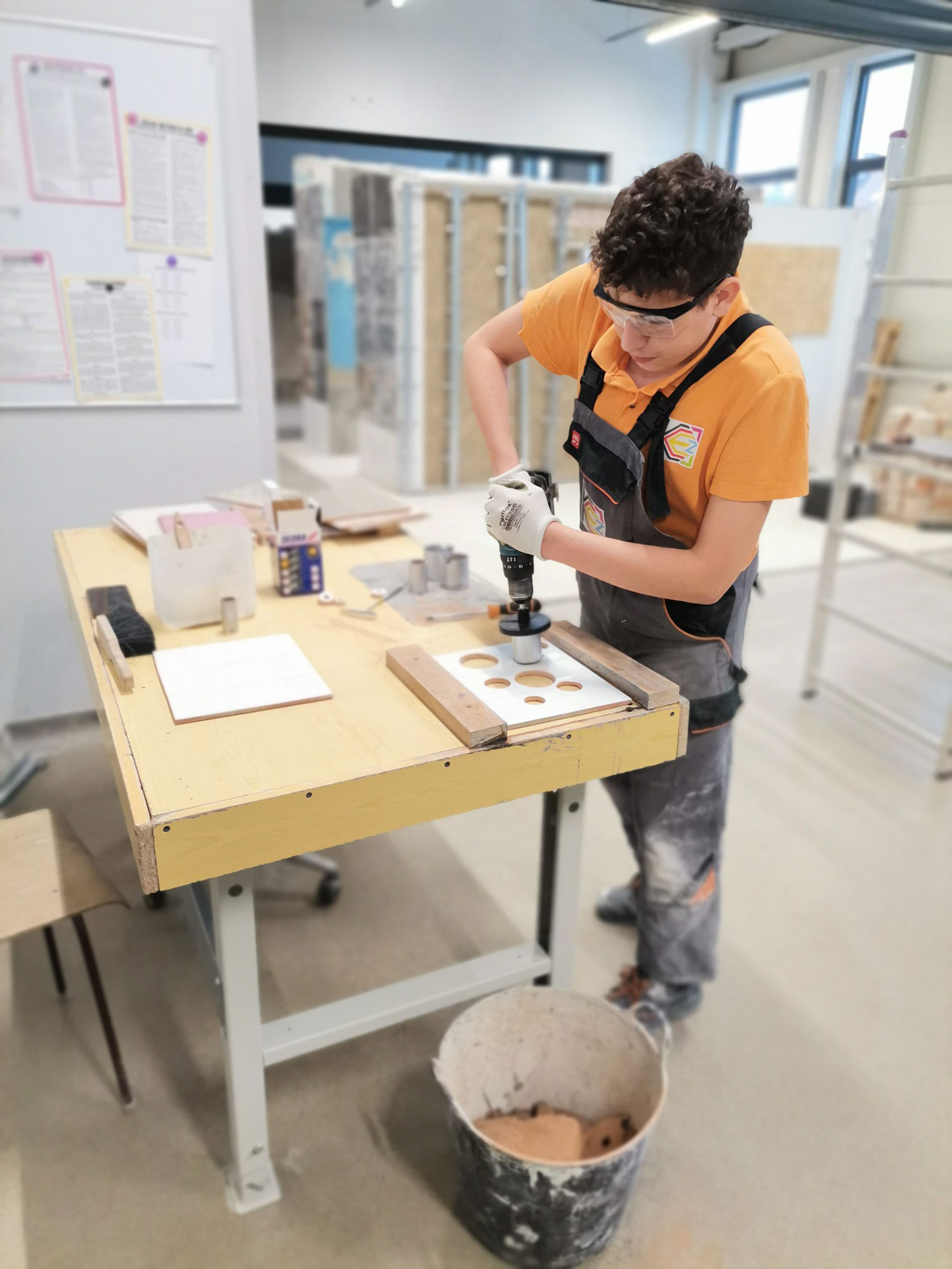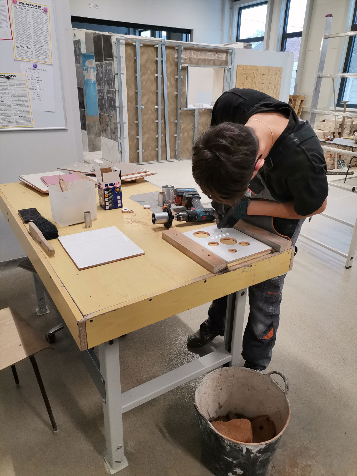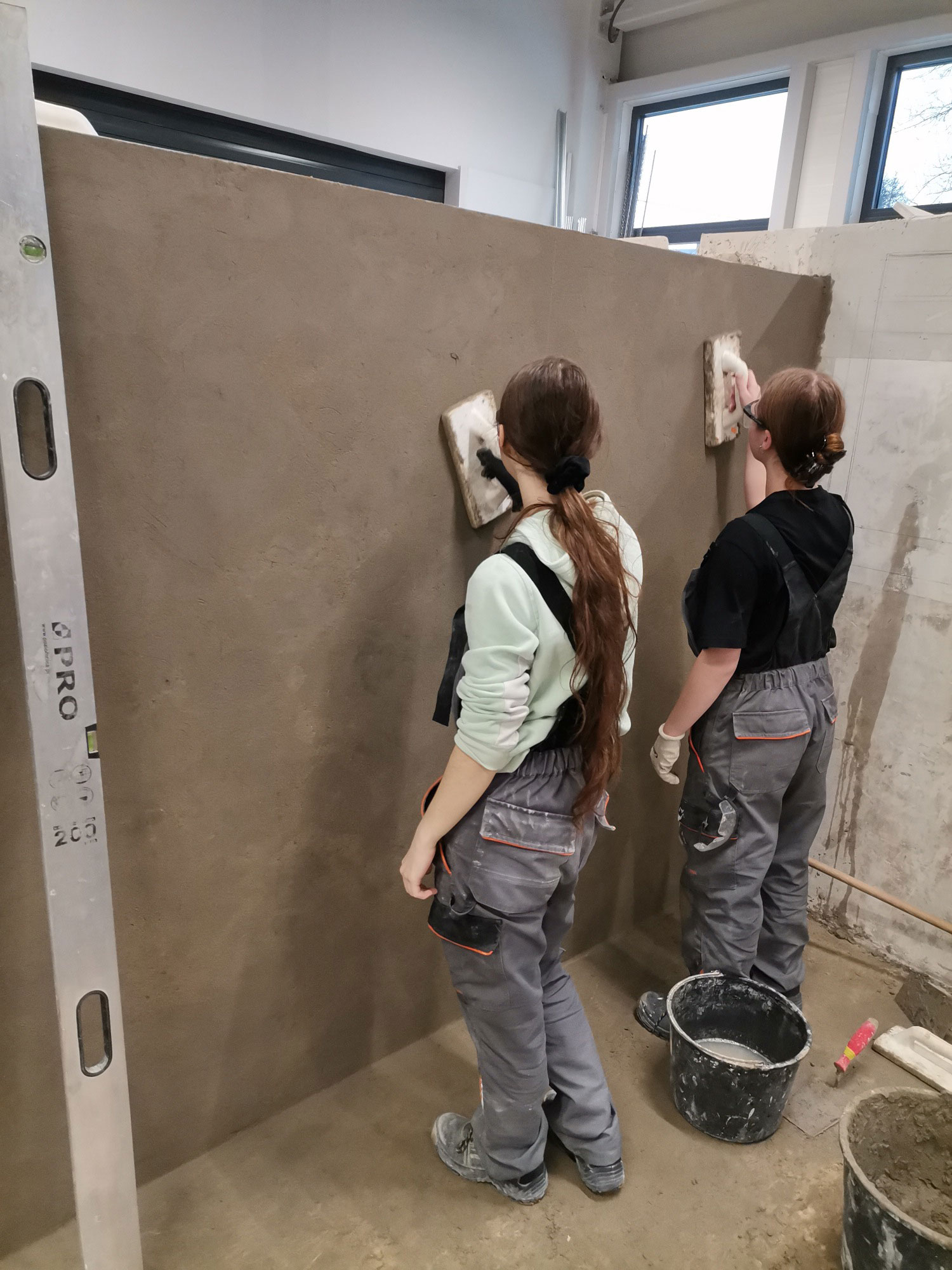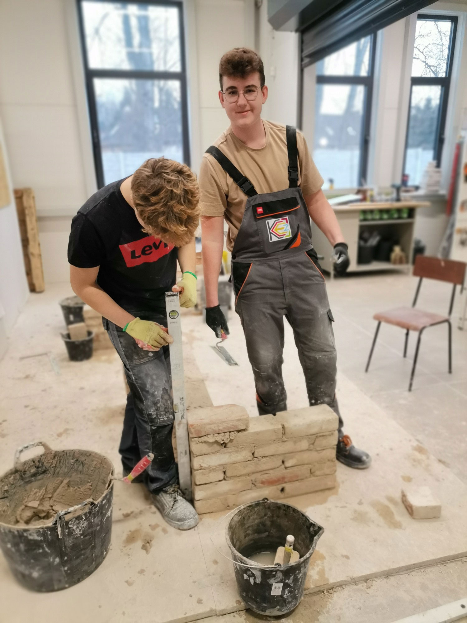 Na warsztatach budowlanych postęp prac jest widoczny. Nowym założeniem jest przygotowana forma pod betonową donicę a oprócz tego młodzież doskonali swoje umiejętności w pracach murarskich i tynkarskich czy w suchej zabudowie. Przy pracach okładzinowych - płytki ceramiczne wymagają jeszcze zafugowania i „dopieszczenia” a także umiejętnego posługiwania się otwornicą. Zarówno uczniowie klas branżowych jak i technikum wykazują duże zaangażowanie i widać już ich postępy jak twierdzą nauczyciele, pod kierunkiem których młodzież uczestniczy w zajęciach. Pierwsze półrocze 2024 / 2025 zostało zakończone sukcesem.