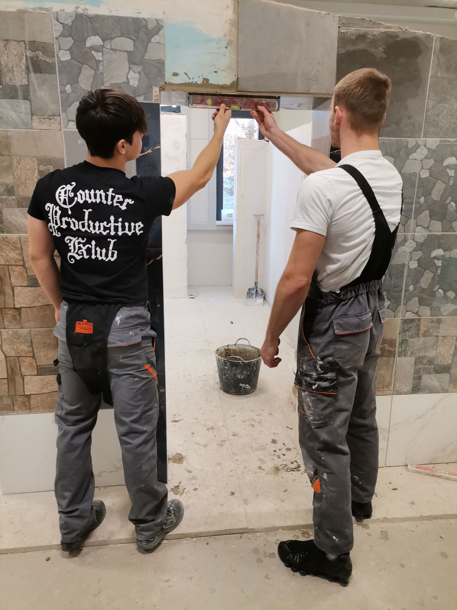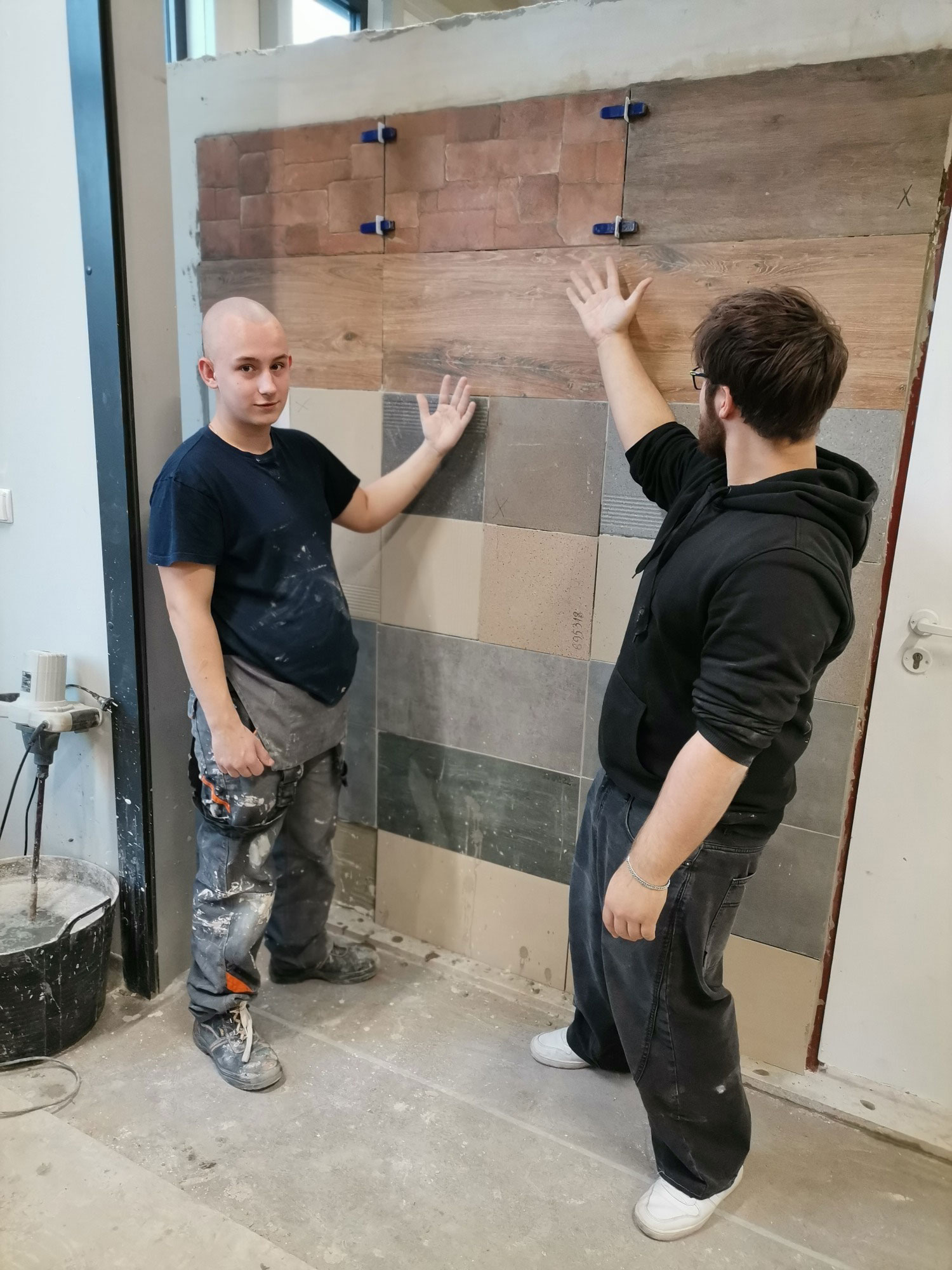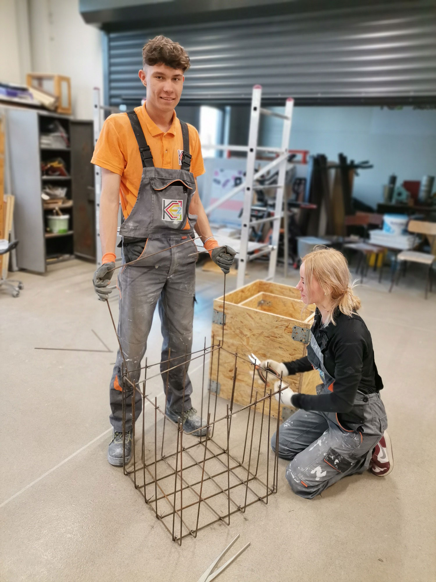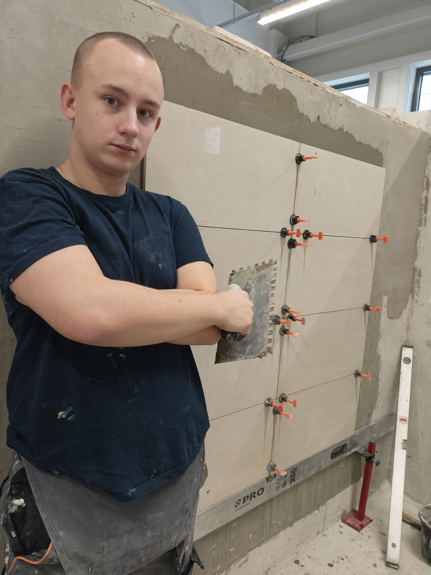 Kolejna relacja z naszej hali gdzie młodzież z klas budowlanych technikum i szkoły branżowej wytrwale doskonali swoje umiejętności w różnych odsłonach prac budowlanych. Powstaje zbrojenie do donicy i następny jej etap, kolejne rozwiązania murowanej ściany czy komina, „wygładzanie” ściany czy okładzina z płytek mineralnych. Przy pracy pamiętają o bieżącej kontroli pionów i poziomów, a efekty ich pracy są więcej niż zadowalające, a przede wszystkim widać zadowolenie z pracy.