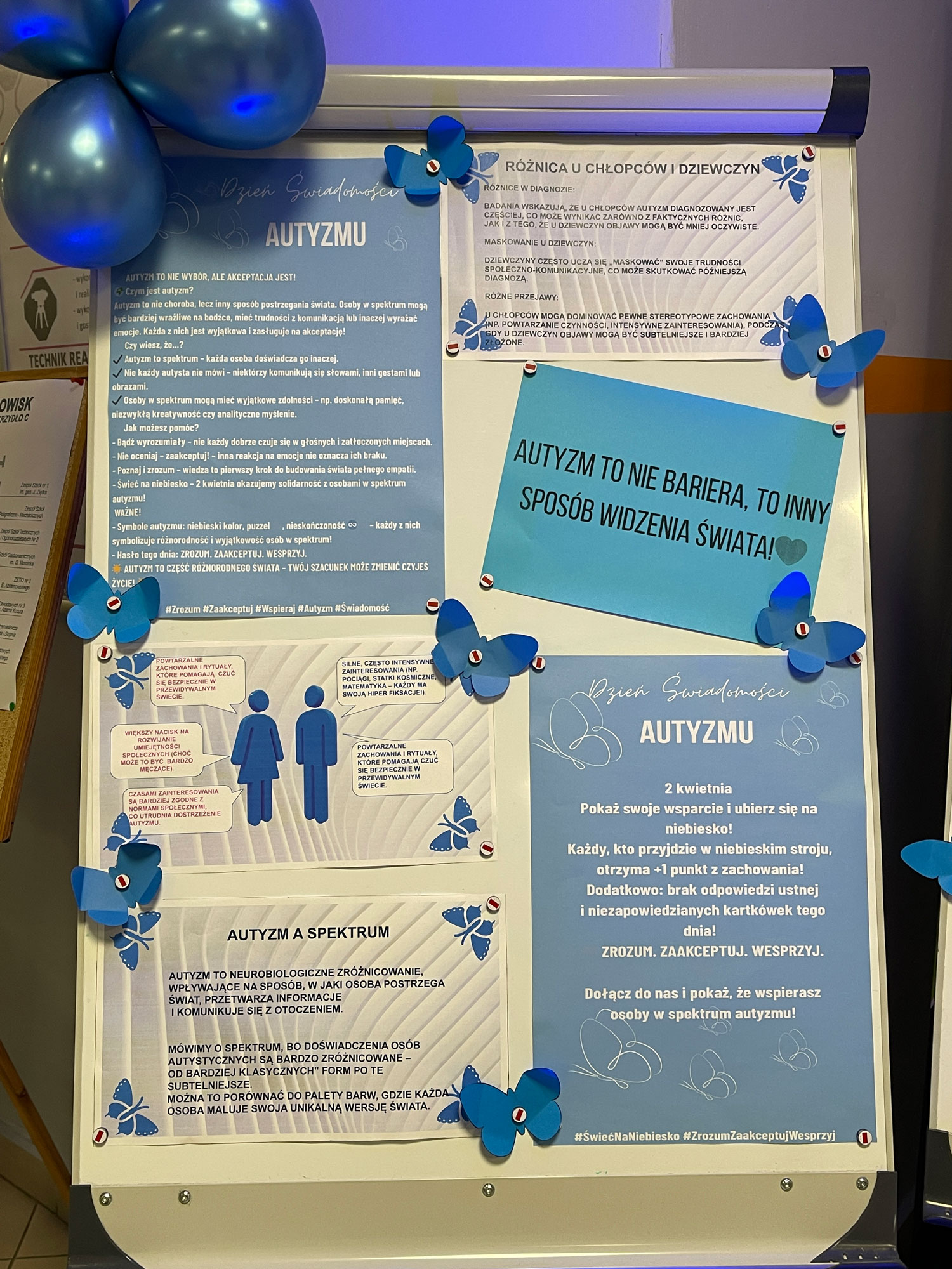 2 kwietnia nasza szkoła dołączyła do licznego grona osób, które propagują wiedzę dotyczącą osób ze spektrum autyzmu w celu przeciwdziałania stygmatyzacji autyzmu i wspierania praw i dobrego samopoczucia osób z autyzmem.