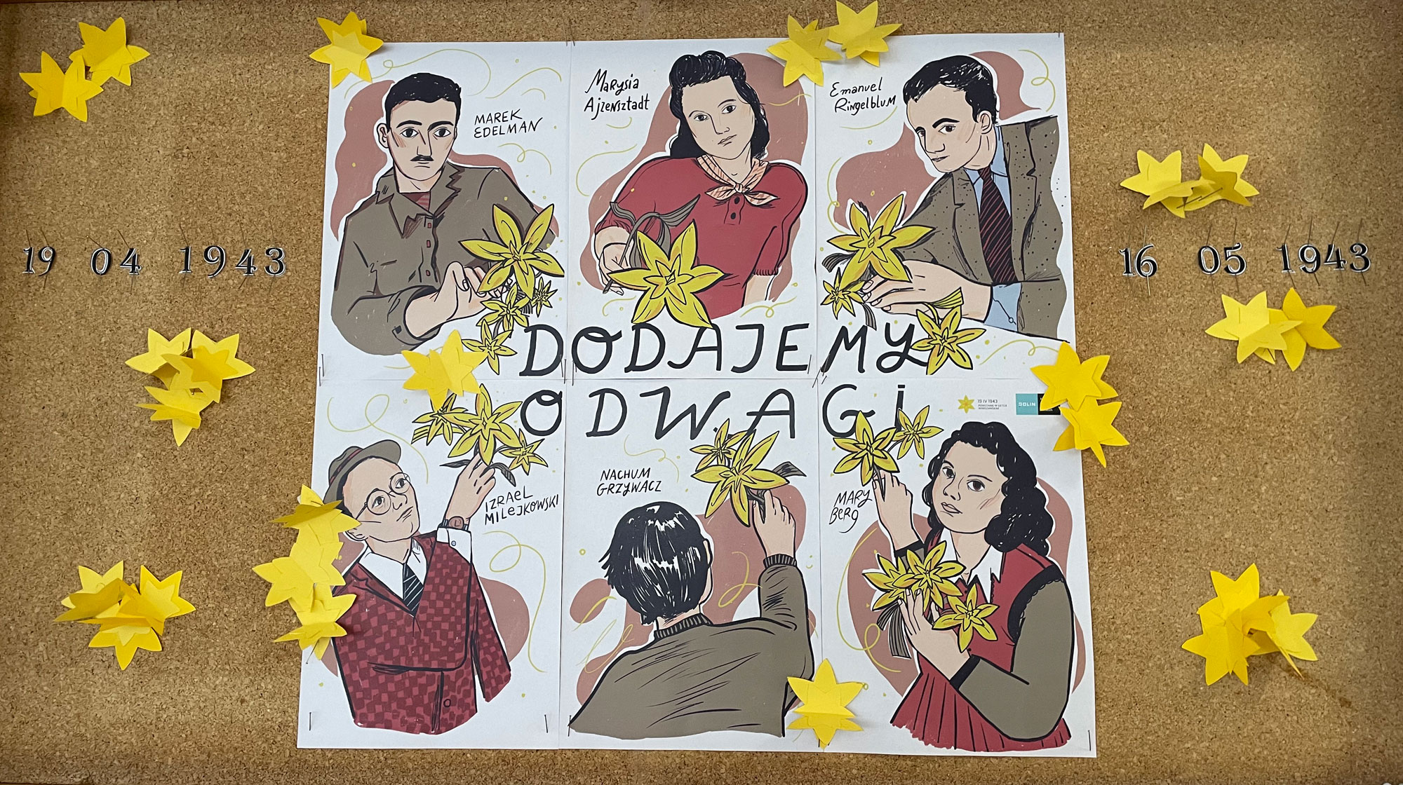 Nasza szkoła tradycyjnie przystąpiła do trzynastej już edycji akcji społeczno - edukacyjnej Żonkile, upamiętniającej rocznicę wybuchu powstania w getcie warszawskim. W tym roku program akcji poświęcony jest odwadze i jej różnym obliczom - tej codziennej o utrzymanie się przy życiu, jak i tej podejmowanej w walce, nawet wobec braku perspektywy na ocalenie. Podczas zajęć uczniowie mieli okazję poznać bohaterskie postawy uczestników powstania oraz porozmawiać na temat, jak oni rozumieją odwagę i czym ona dla nich jest. Tradycyjnie w ramach akcji #ŁączyNasPamięć młodzież robiła i rozdawała żółte żonkile. Całości towarzyszyła wystawa Dodajemy Odwagi przygotowana przez Muzeum Historii Żydów Polskich POLIN.