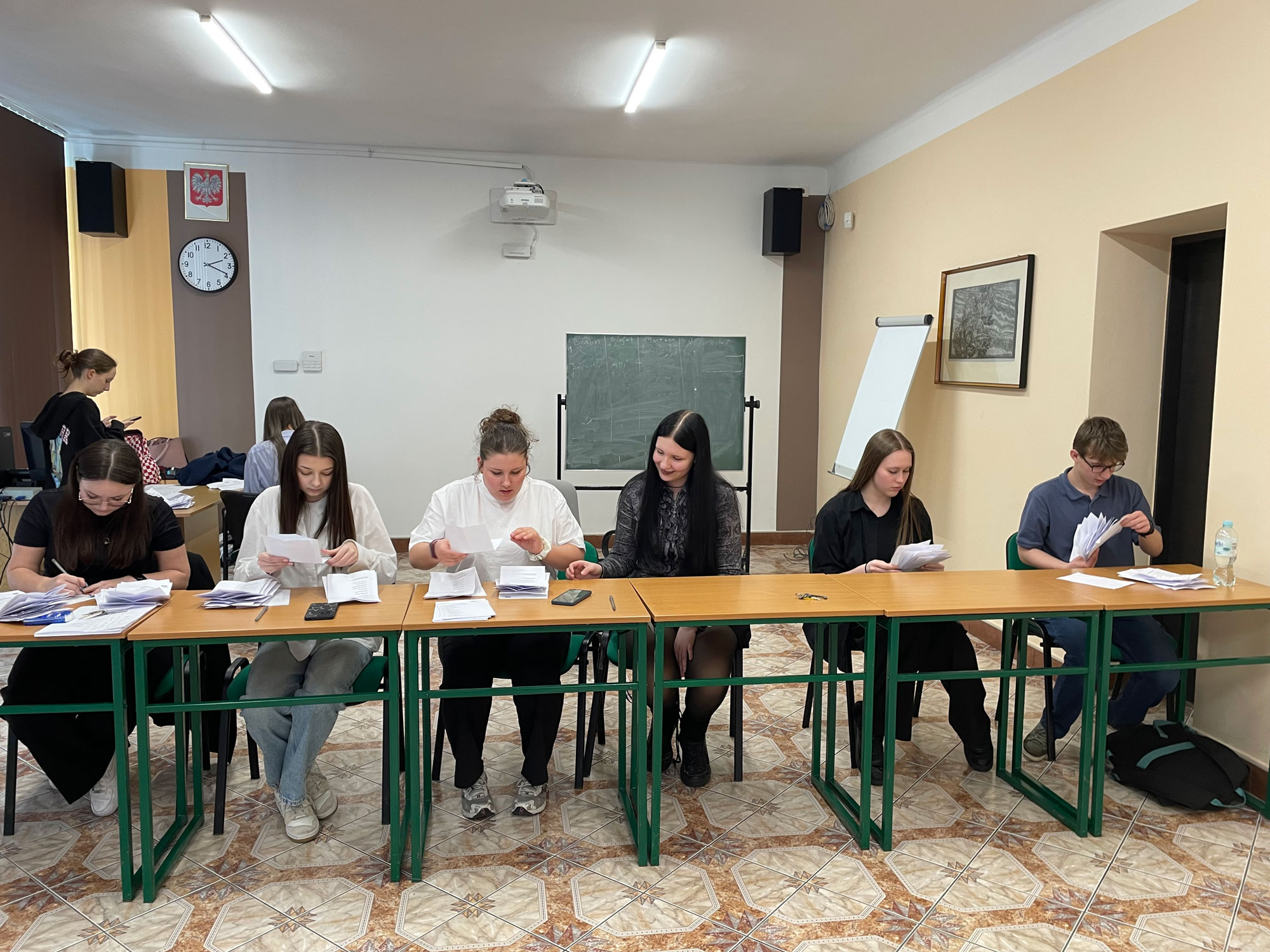 W naszej szkole ze względu na praktyki zawodowe odbyły się one już 28 kwietnia. Od rana nad prawidłowym przebiegiem wyborów czuwała komisja wyborcza złożona z przedstawicieli młodzieży z każdego rocznika. Wszystkim uczniom zaangażowanym w przeprowadzenie symulacji wyborów oraz tym, którzy wzięli w nich czynny udział dziękujemy za postawę obywatelską.
