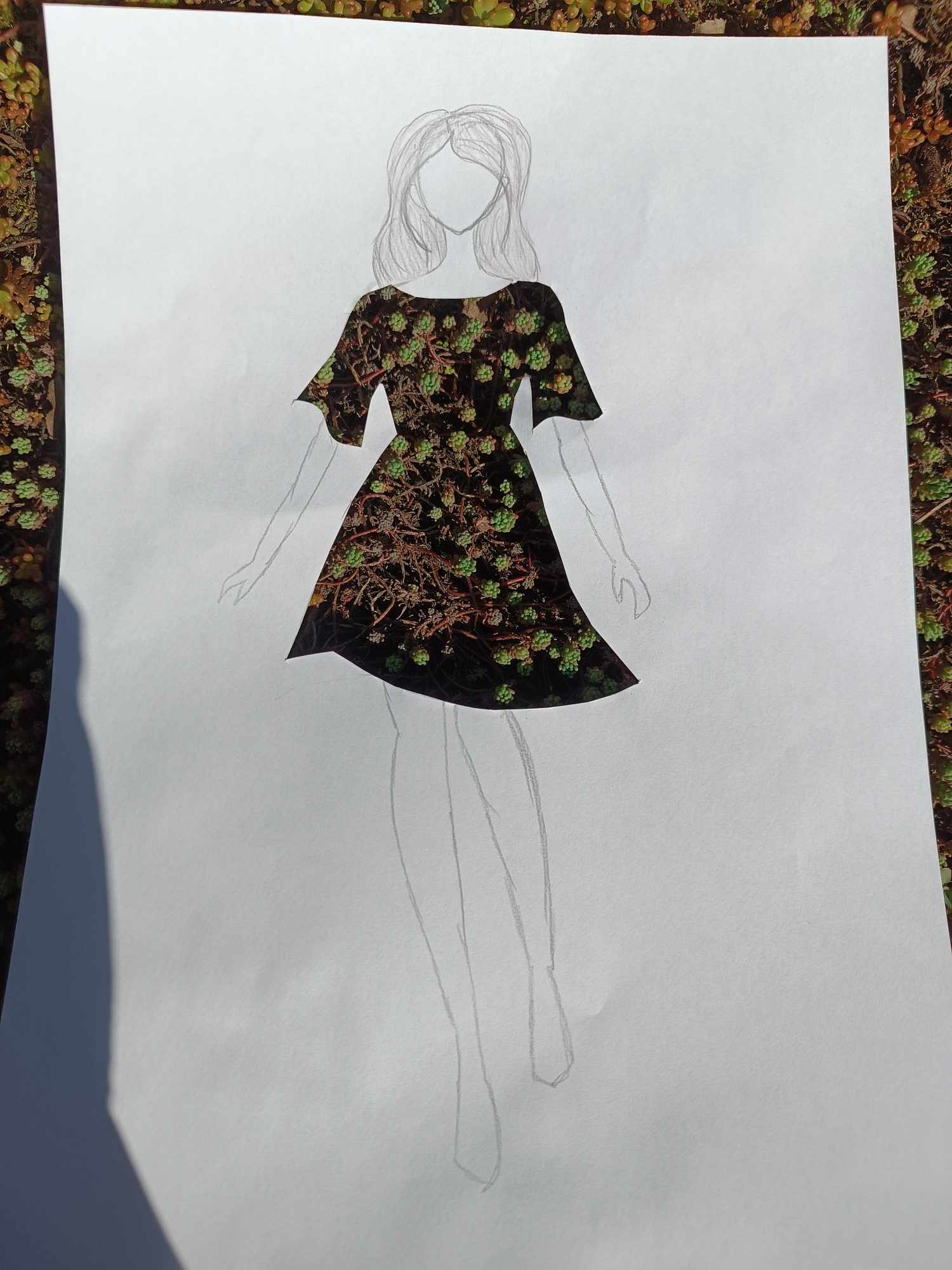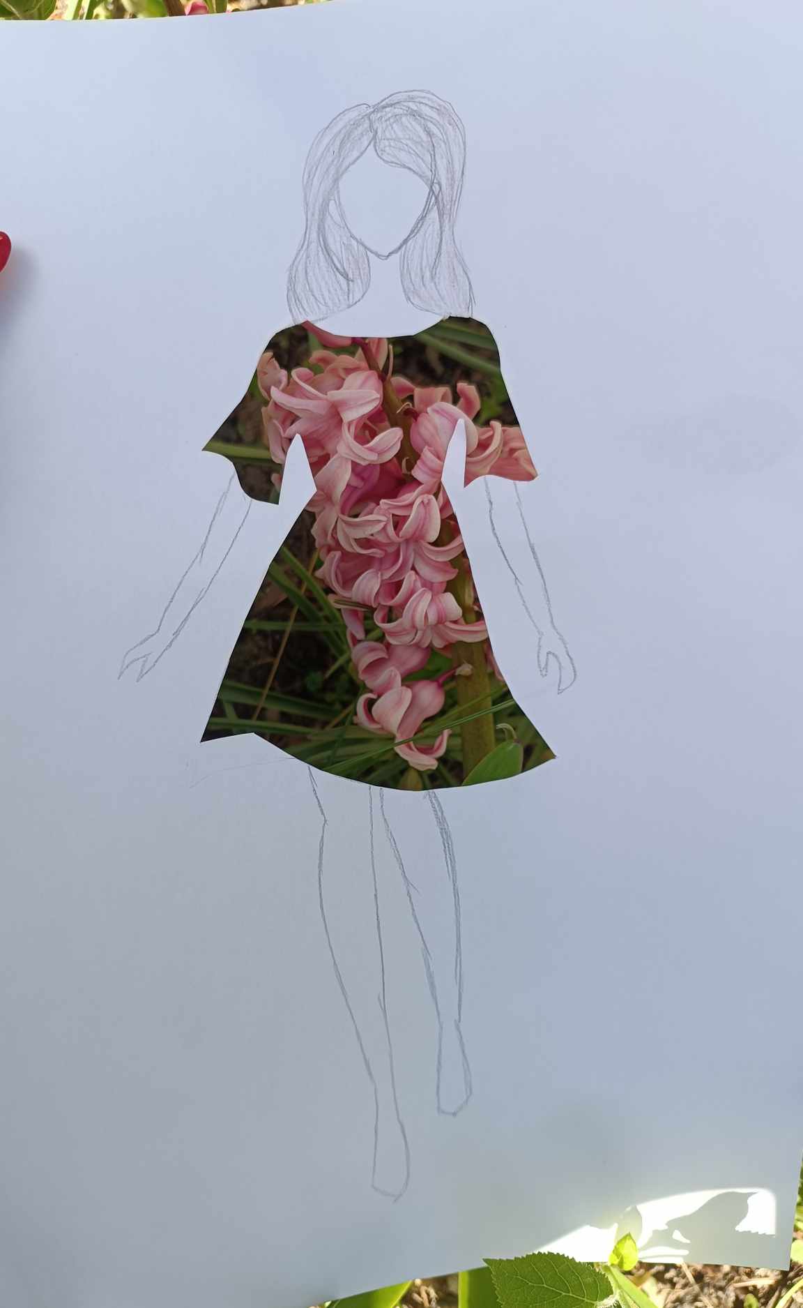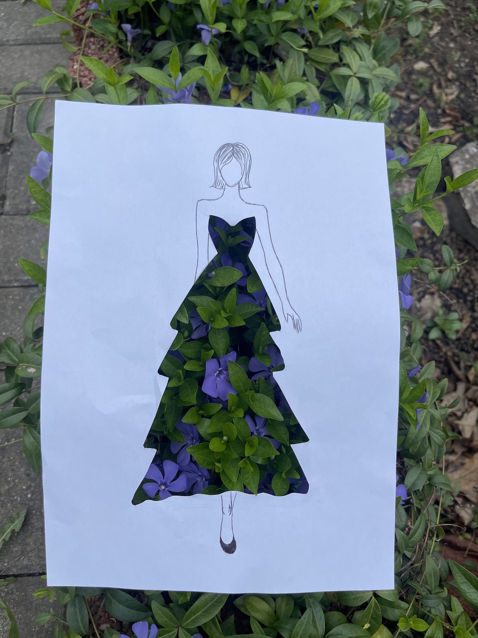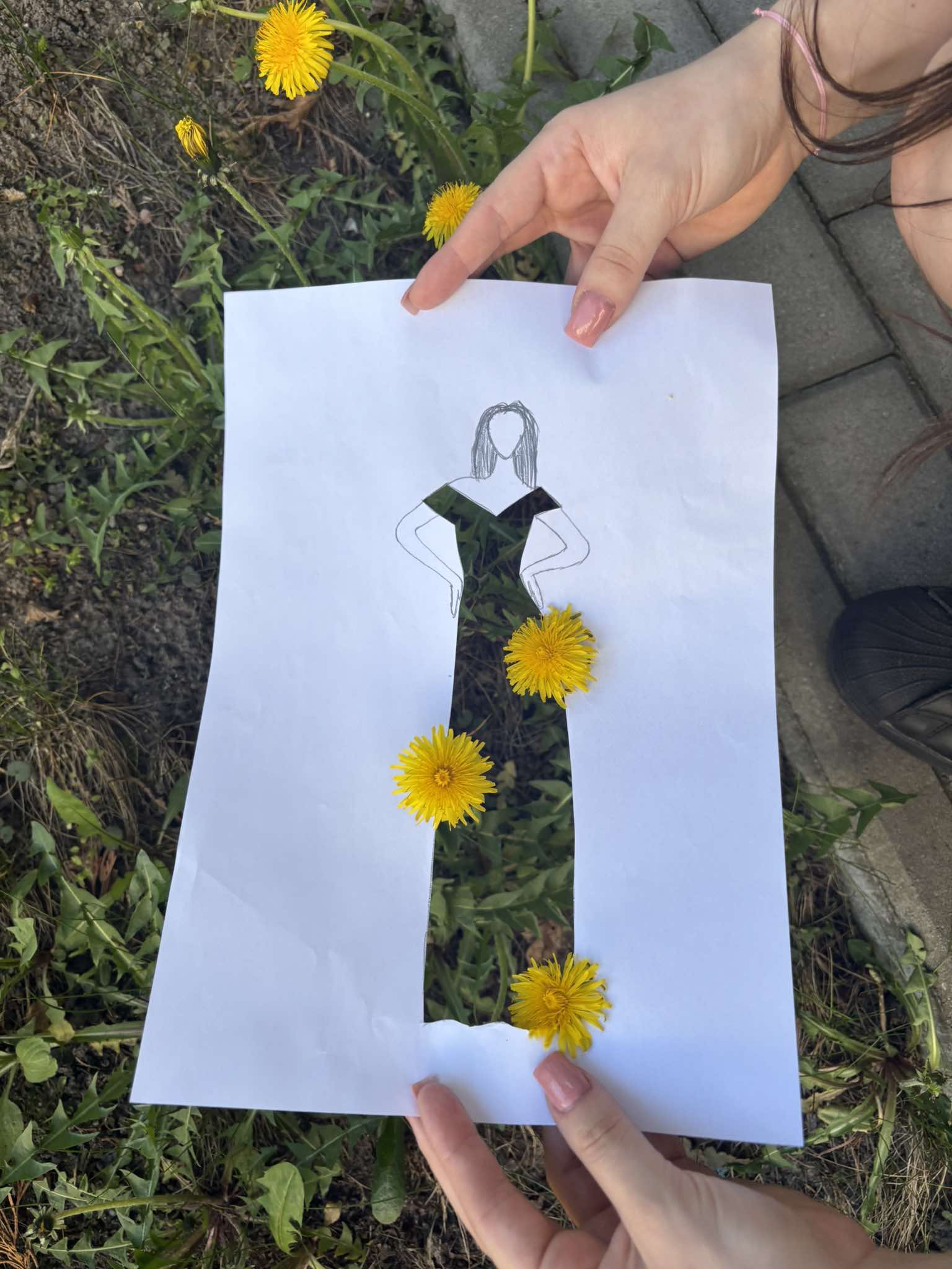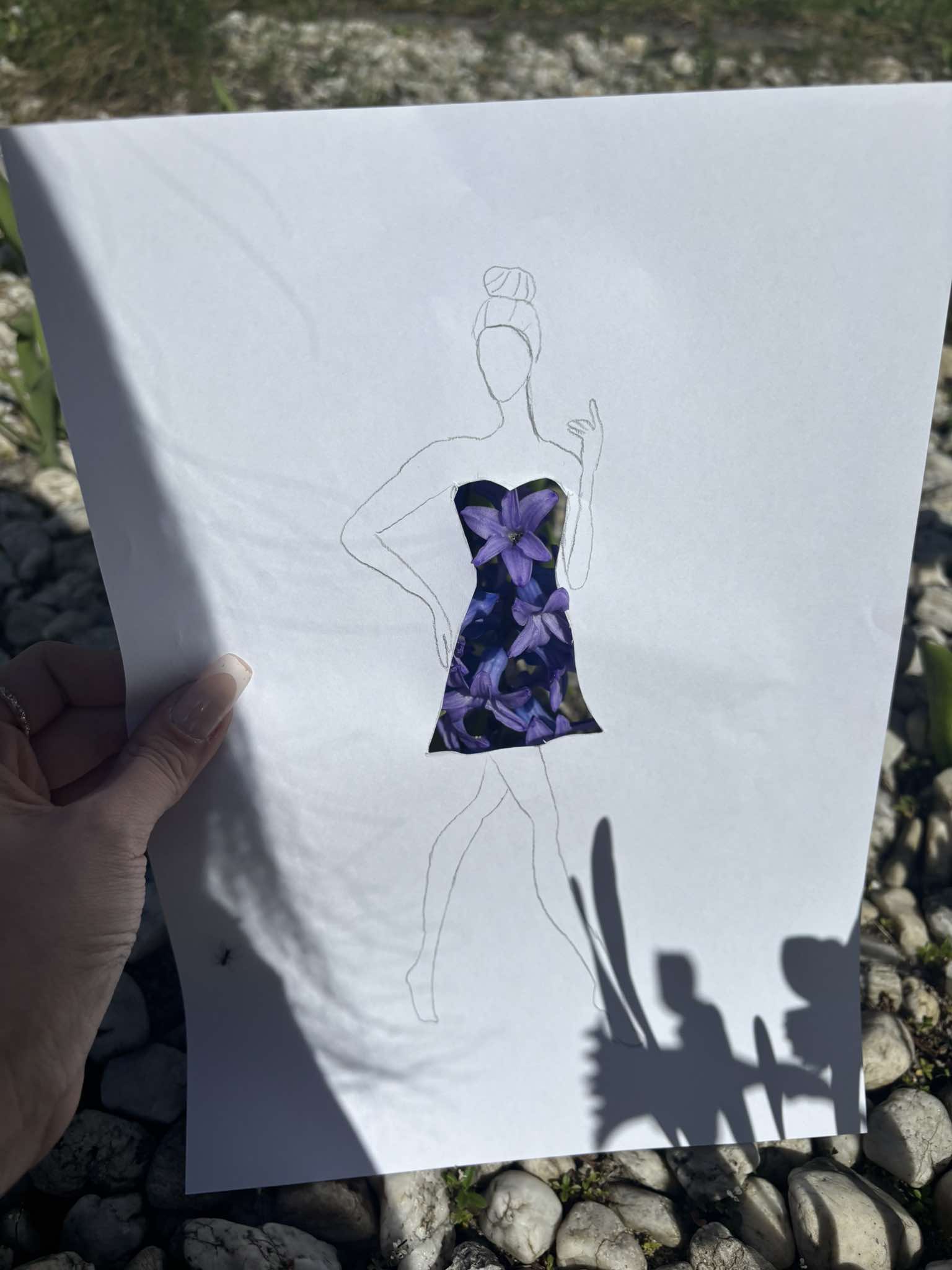 Uczniowie kierunku **technik przemysłu mody** pokazują, że moda nie zna granic! Na zdjęciu możecie zobaczyć efekt połączenia rysunku z naturą – projekt sukienki, w którym rolę materiału odgrywają... kwiaty, rośliny i inne 🌿👗