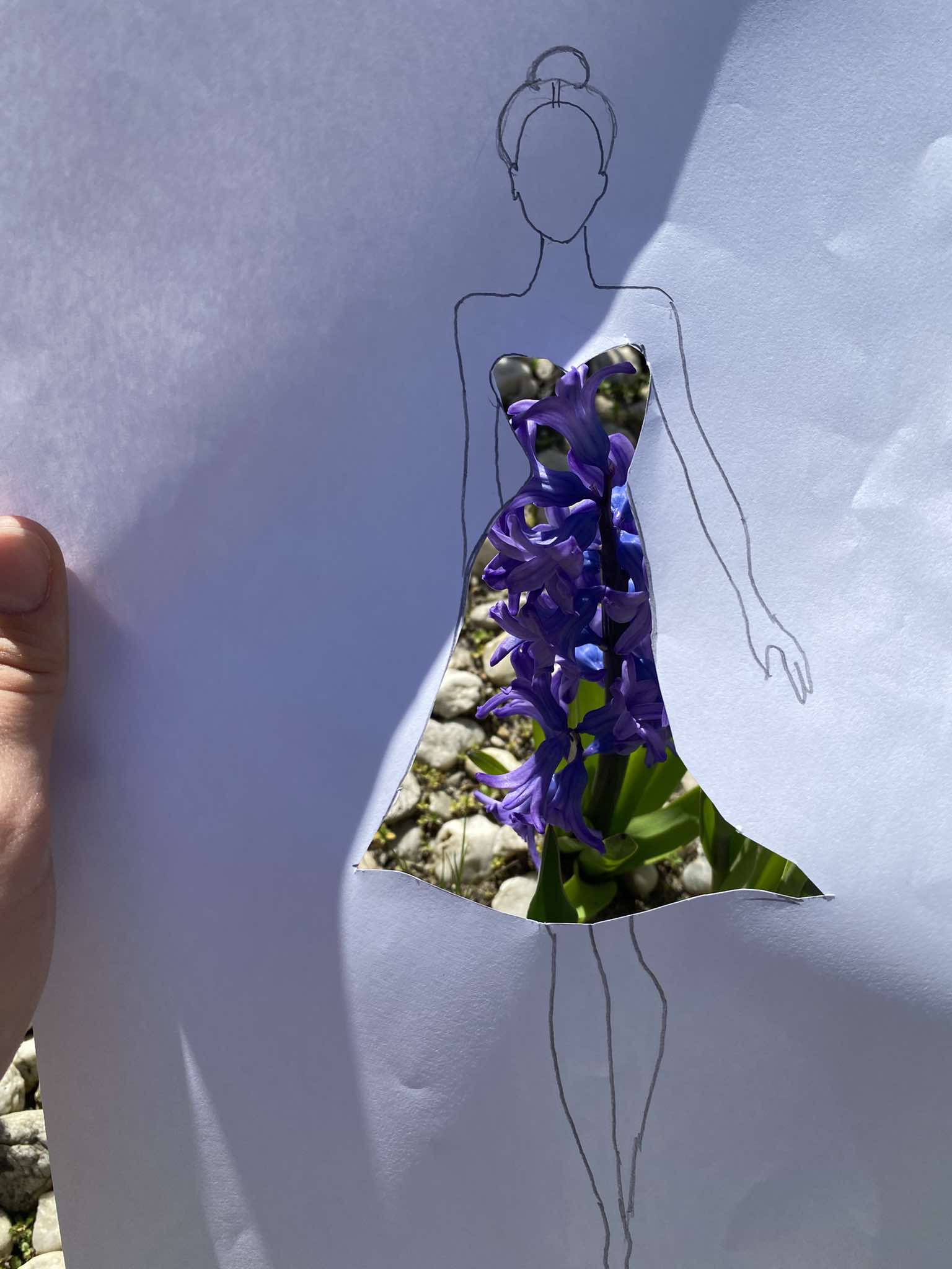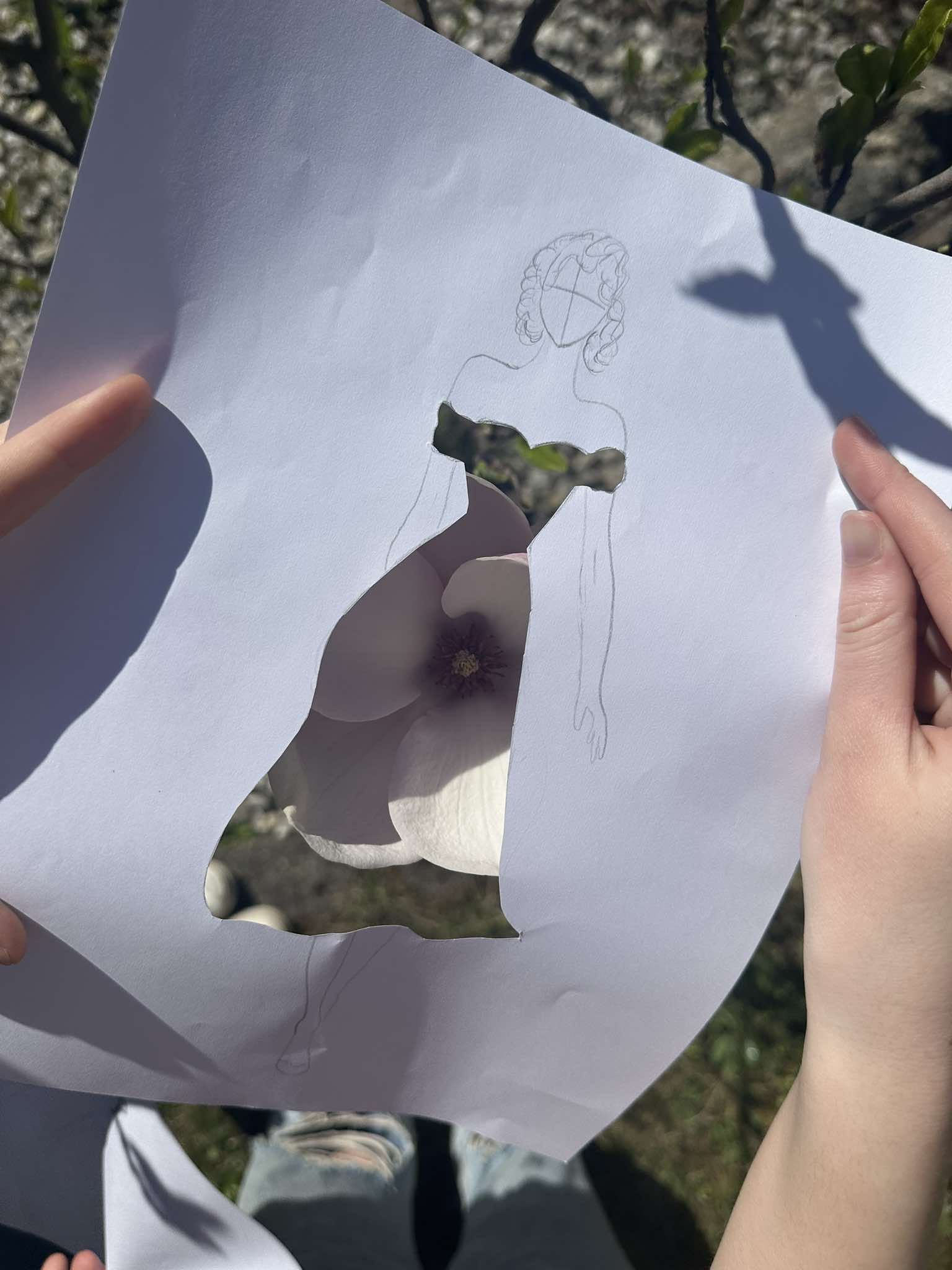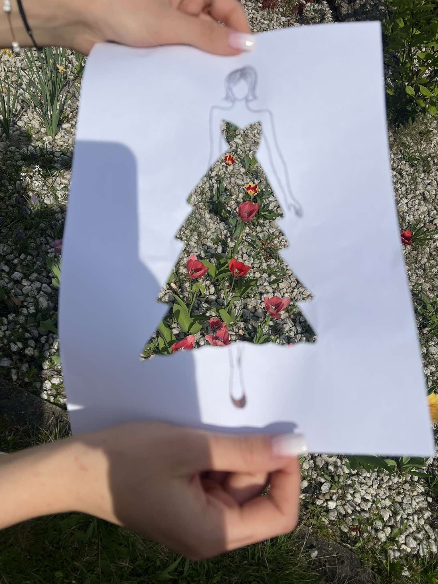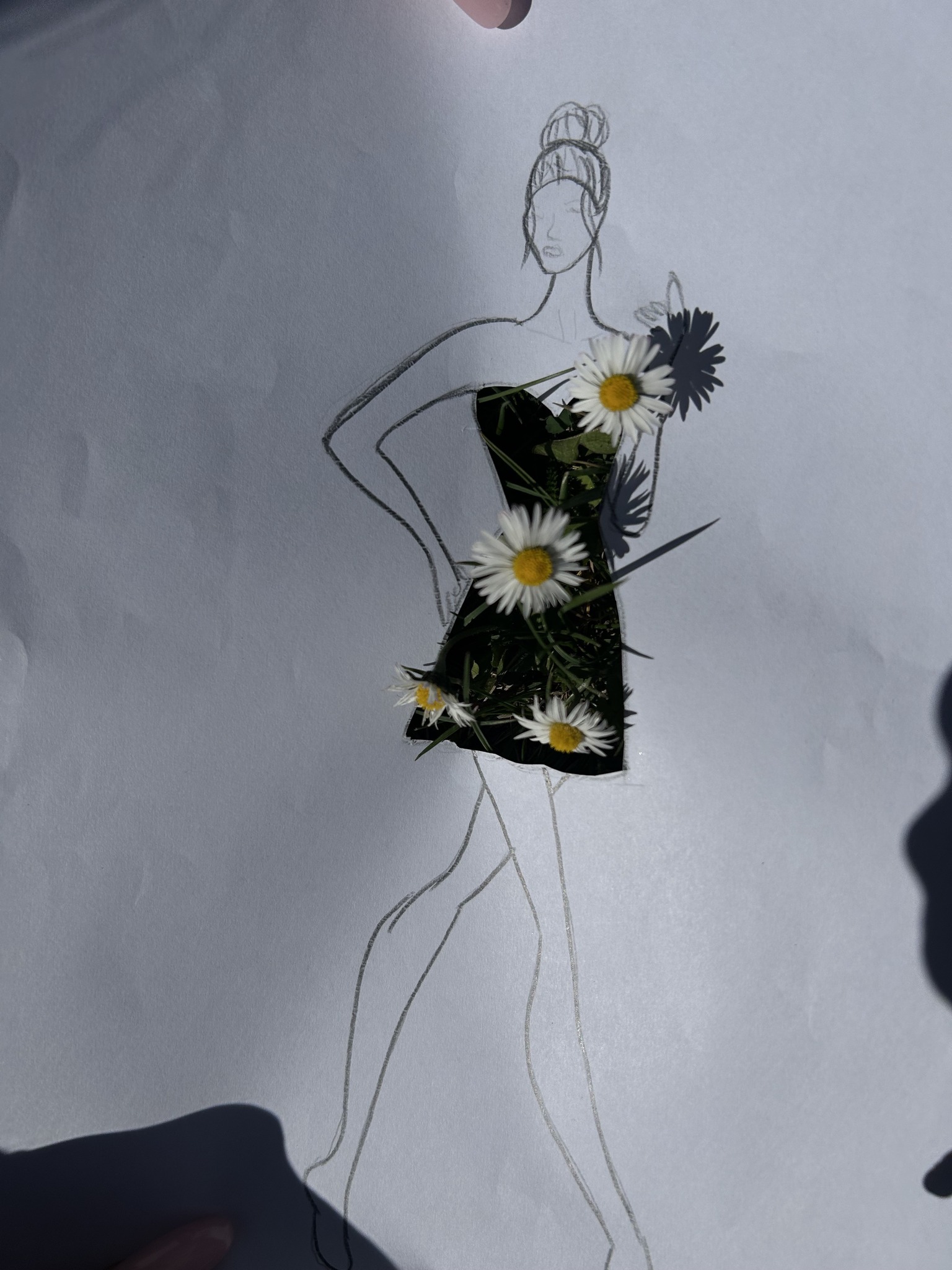 Uczniowie kierunku **technik przemysłu mody** pokazują, że moda nie zna granic! Na zdjęciu możecie zobaczyć efekt połączenia rysunku z naturą – projekt sukienki, w którym rolę materiału odgrywają... kwiaty, rośliny i inne 🌿👗