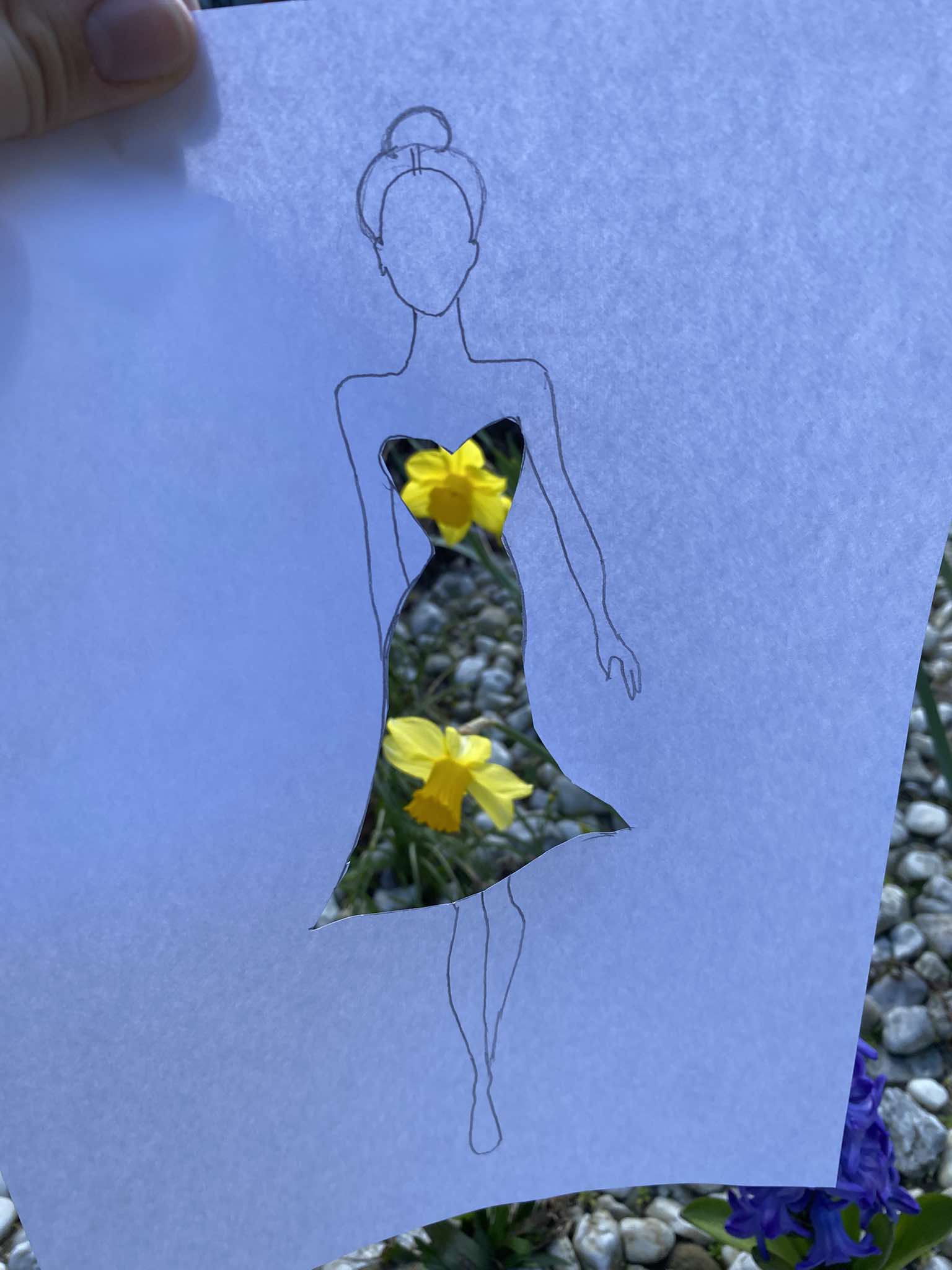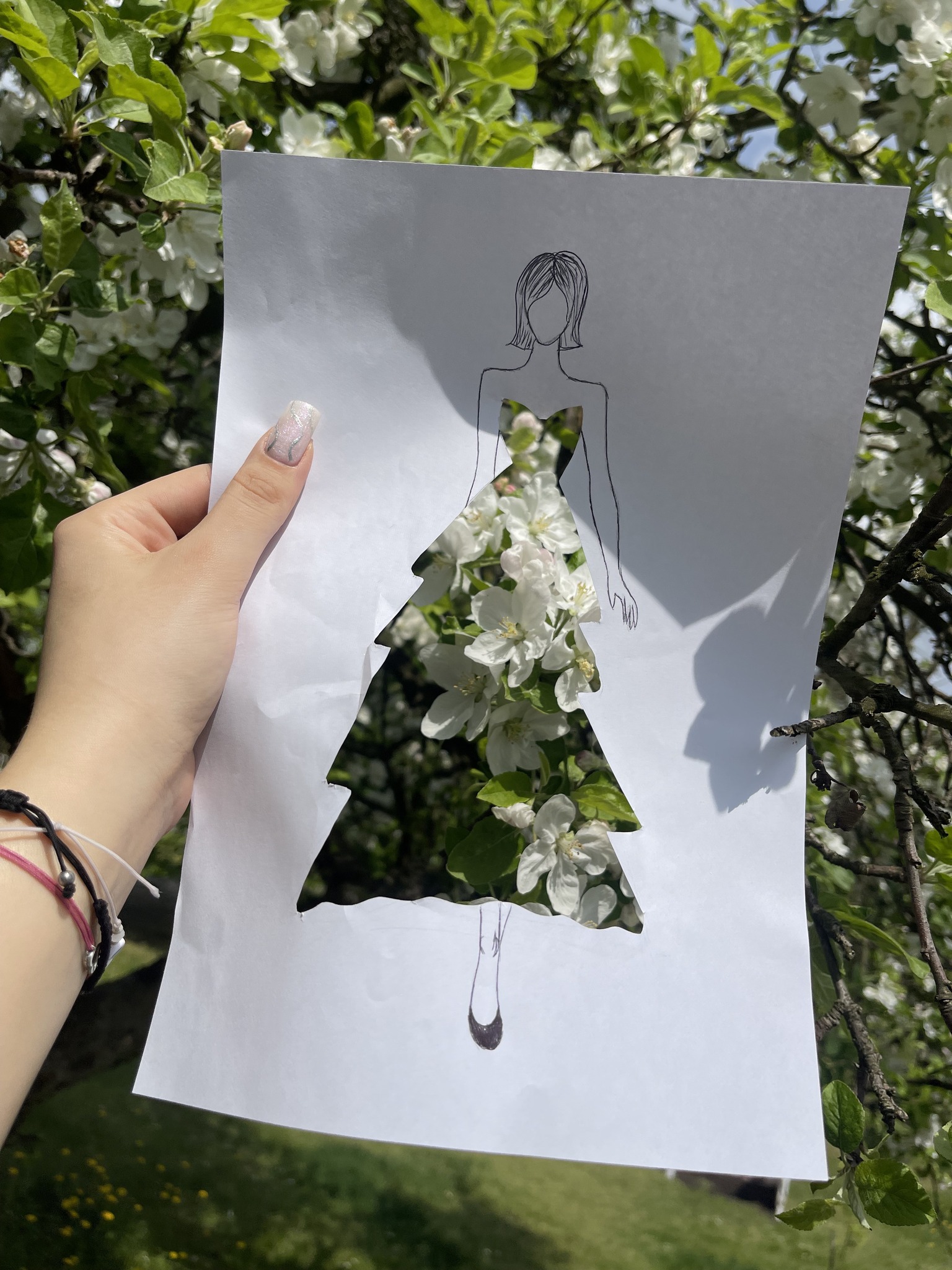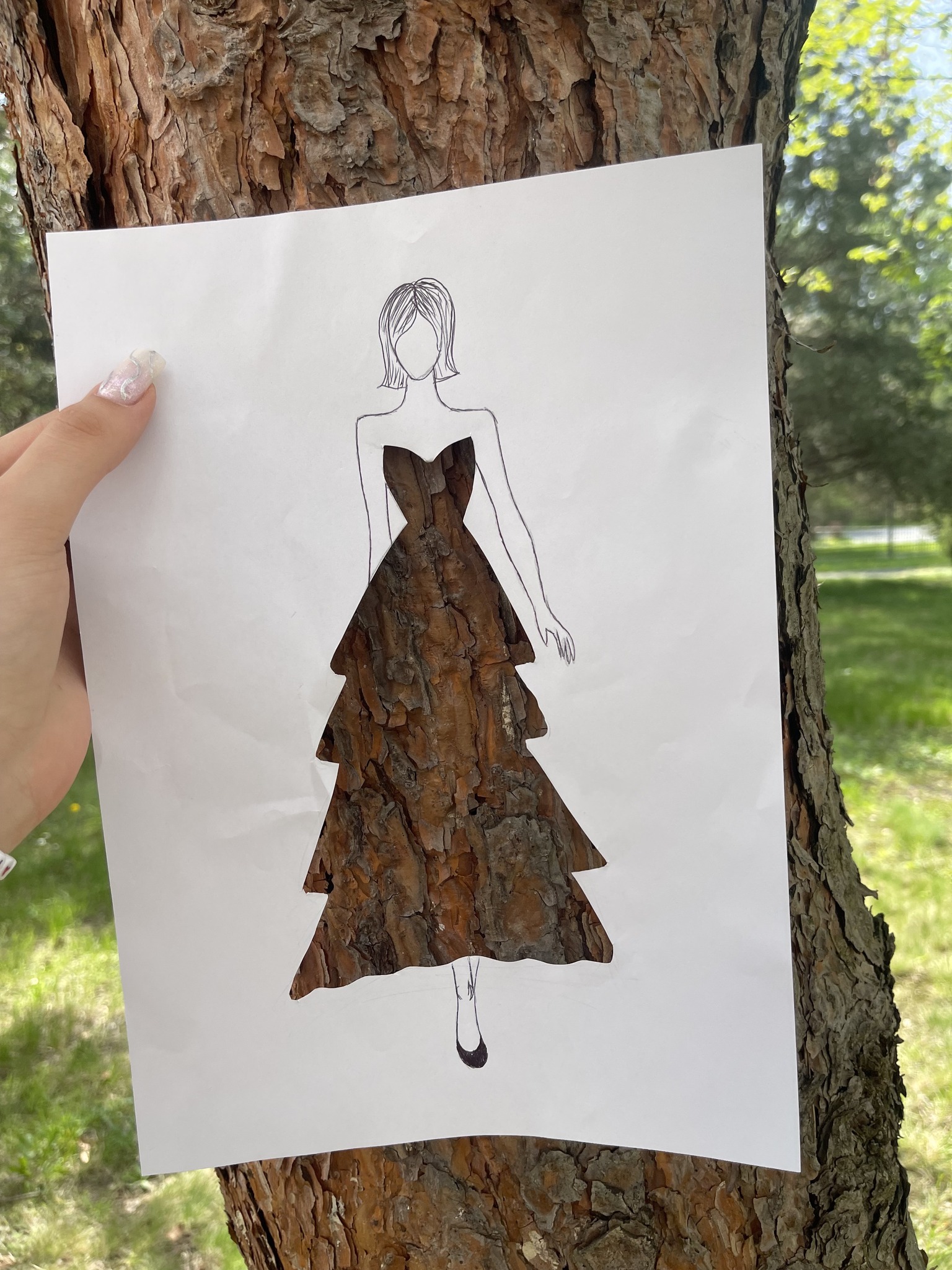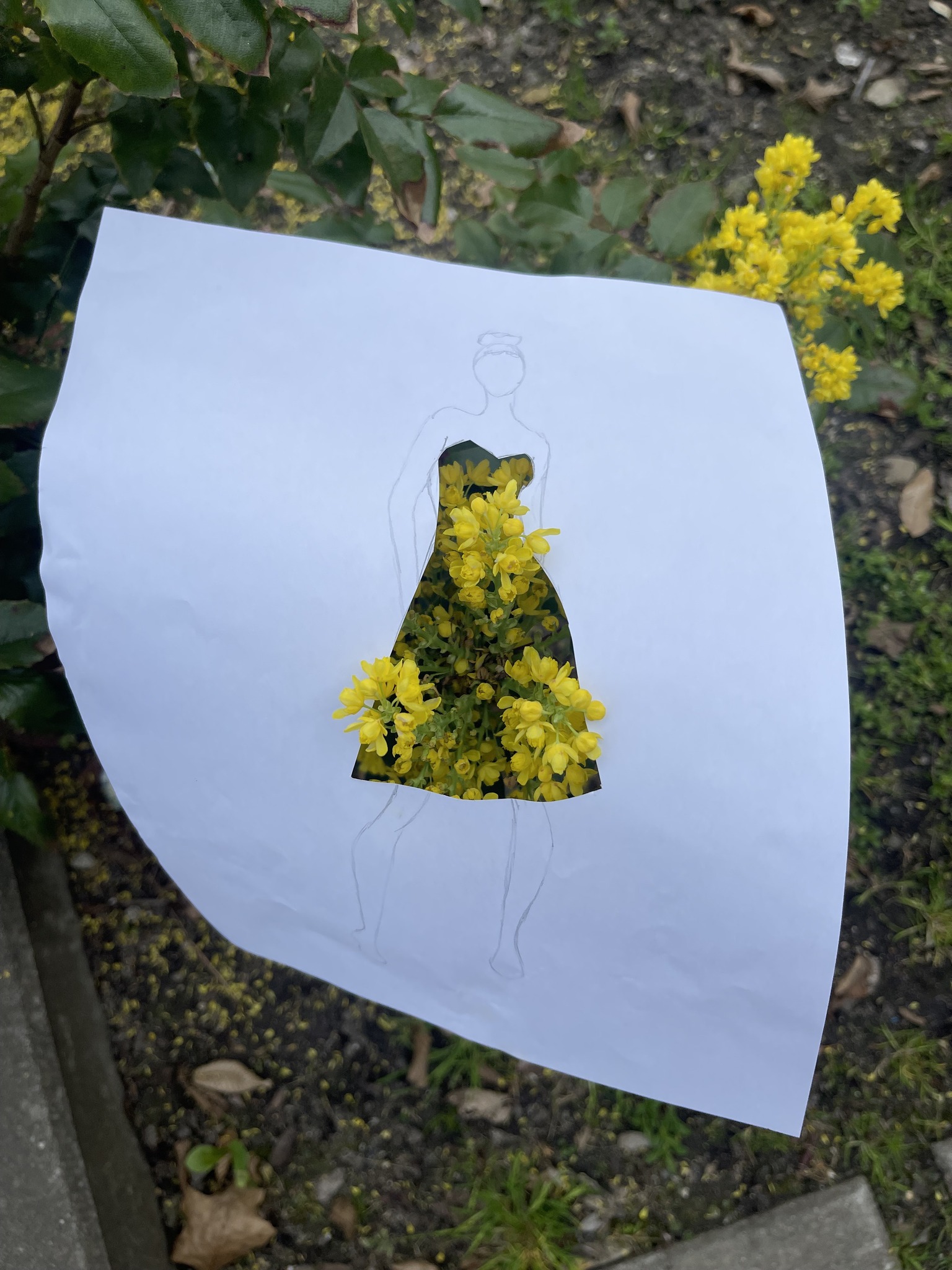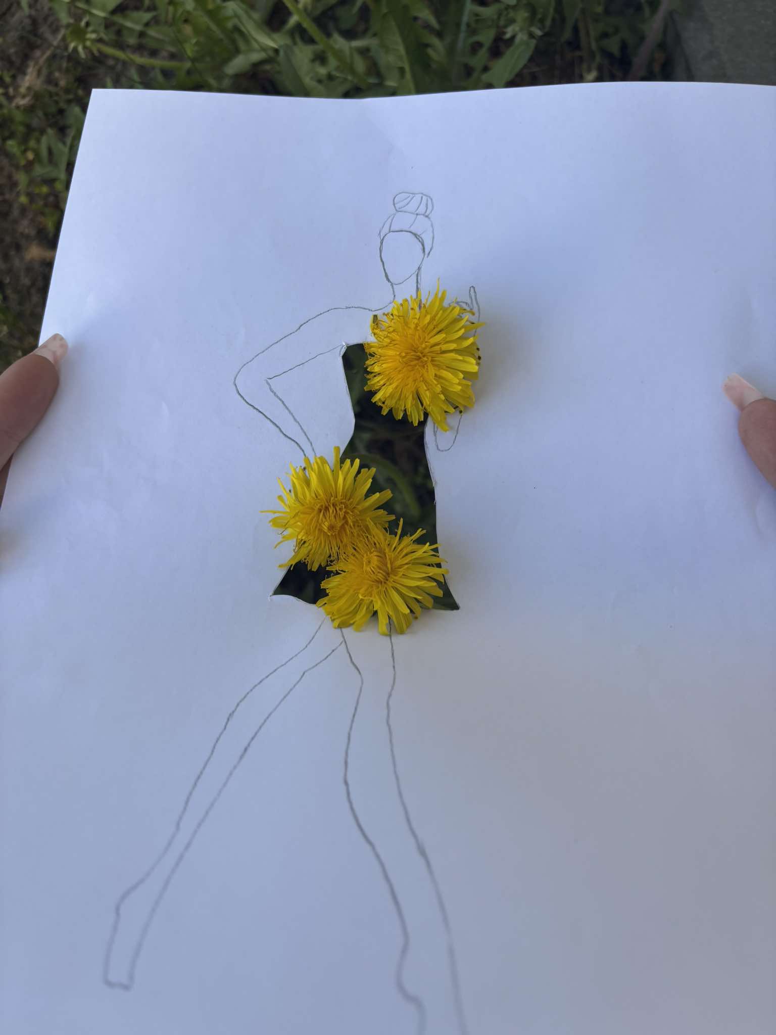 Uczniowie kierunku **technik przemysłu mody** pokazują, że moda nie zna granic! Na zdjęciu możecie zobaczyć efekt połączenia rysunku z naturą – projekt sukienki, w którym rolę materiału odgrywają... kwiaty, rośliny i inne 🌿👗