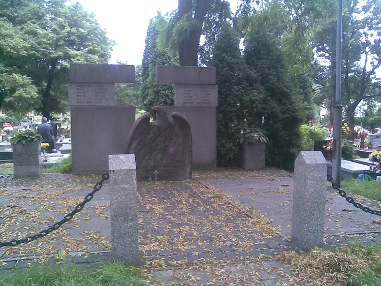 | Katowice | Katowice-Janów, ul.Cmentarna, cmentarz aleja centralna, strona prawa, rząd 11 | Grób zbiorowy wojenny poległych w czasie Powstań Śląskich – nazwiska -pom.nagr. fotografia z prywatnych zbiorów klasy 3aBSIS |