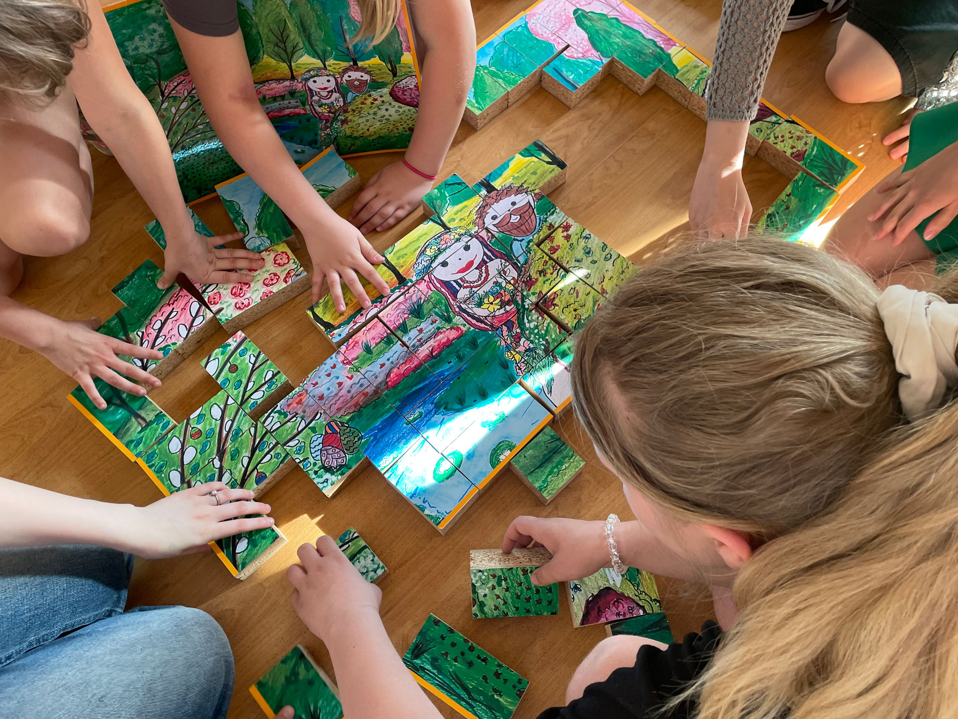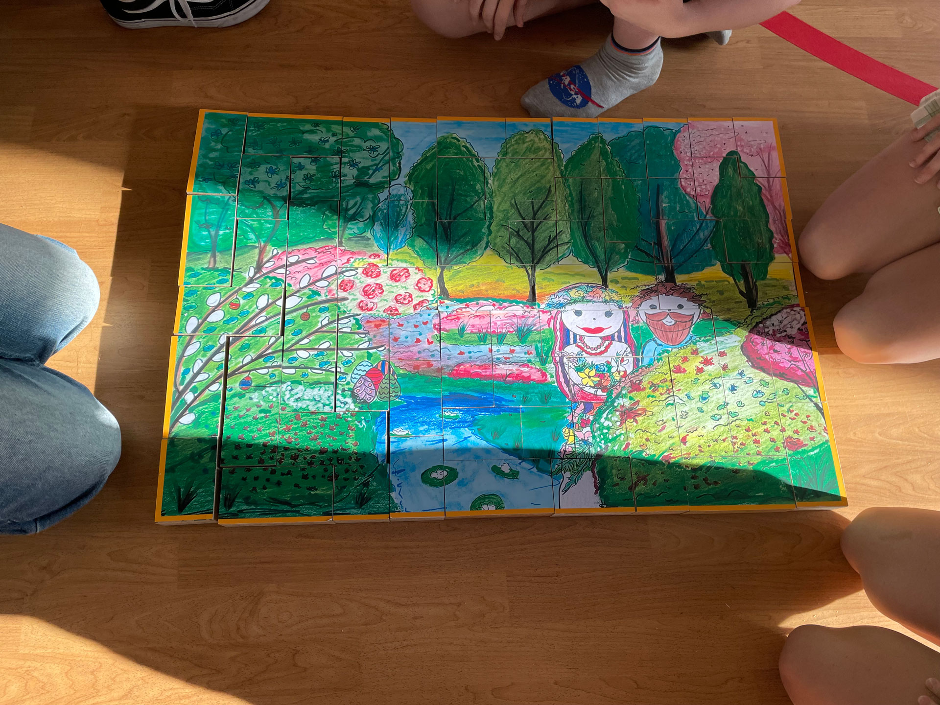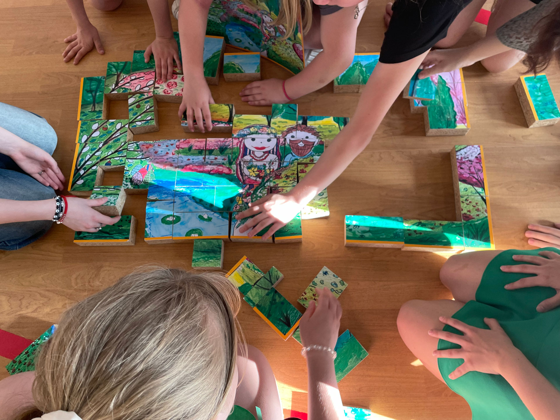 21 maja gościliśmy w naszej szkole podopiecznych Placówki Opiekuńczo-Wychowawczej w Katowicach - Dąbrówce Malej.Tym razem drużyna dziewcząt z klasy z 1Ep, 1Gp i 1Bp, realizująca pod kierunkiem p. Doroty Kubicy-Jasińskiej projekt etnograficzny, podzieliła się z dziećmi efektami swojej kilkutygodniowej pracy. Po przedstawieniu w formie prezentacji wiosennych tradycji i zwyczajów kultywowanych od pokoleń na Górnym Śląsku, a szczególnie w rejonie Katowic, przystąpiliśmy do wspólnej zabawy i gry terenowej. Dzieci rozwiązywały quiz, wykonywały wyklejanki, wykreślanki, jak również wykazywały się kreatywnością przy zabawie w kalambury. Nie zabrakło też aktywności ruchowych na sali gimnastycznej, które zakończyły się wspólnym układaniem "puzzli wiosennych", wykonanych przez p. Tomasza Lincę według autorskiego projektu Martyny z 1Bp. Na koniec z mapkami w ręku dzieci podążyły tropem Marzanny i Marzanioka. Po ich odnalezieniu czekała na nie jeszcze jedna wskazówka prowadząca do słodkiej niespodzianki. Wspólnej zabawie i grze związanej z etnografią naszego regionu towarzyszyła wiosenna aura i wiosenne przyśpiewki.