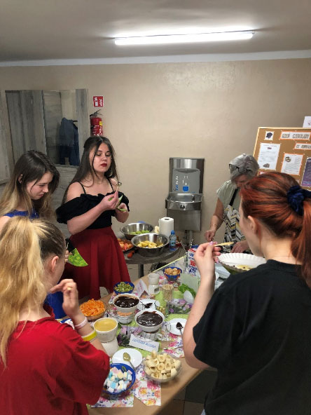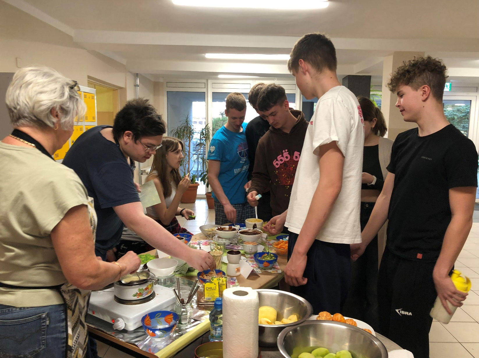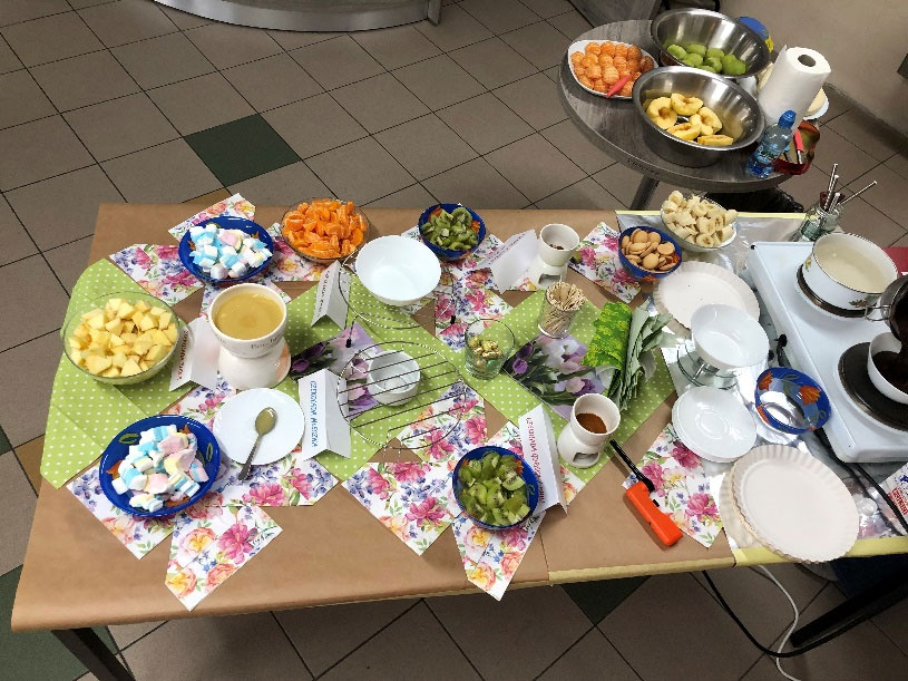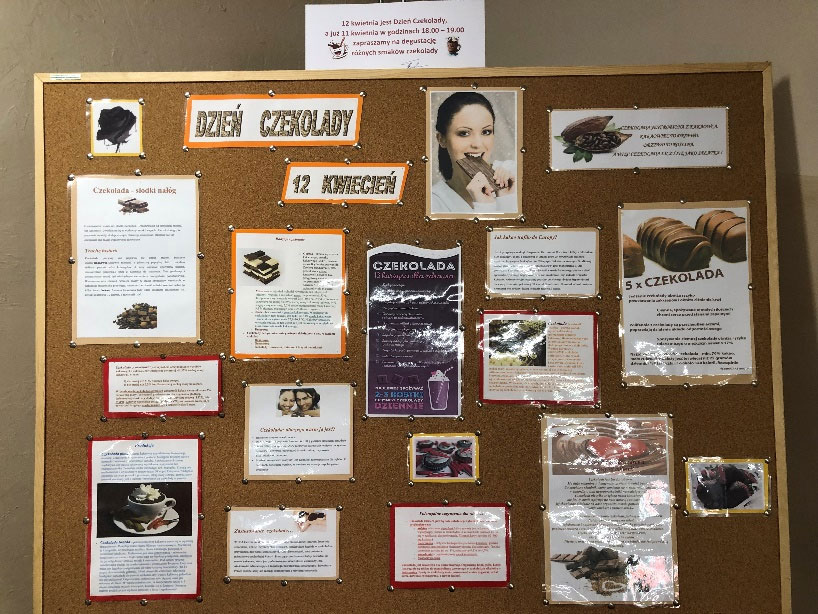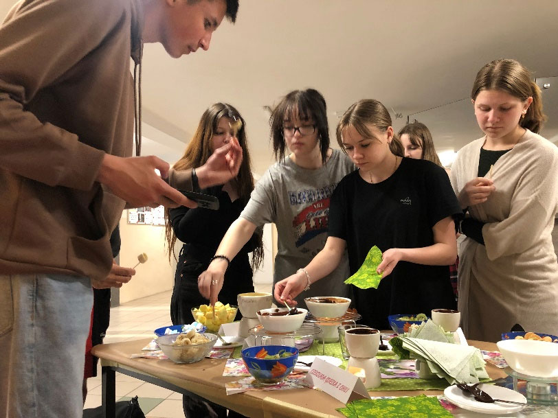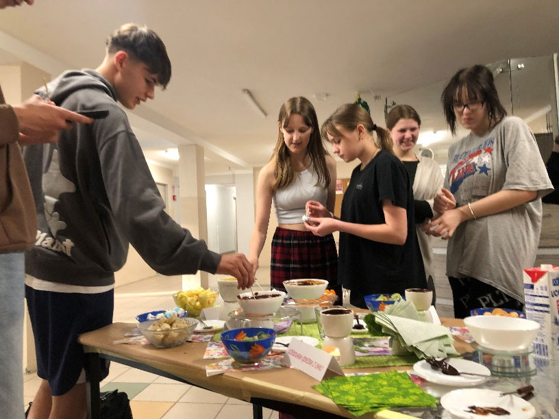 W dniu poprzedzającym „Dzień Czekolady” odbyły się warsztaty promujące właściwości czekolady. Młodzież tłumnie uczestniczyła w przygotowaniu i degustacji, poznając smaki połączeń owoców z różnymi gatunkami czekolady. Zachwyceni wychowankowie internatu zaproponowali powtórzenie takich zajęć.