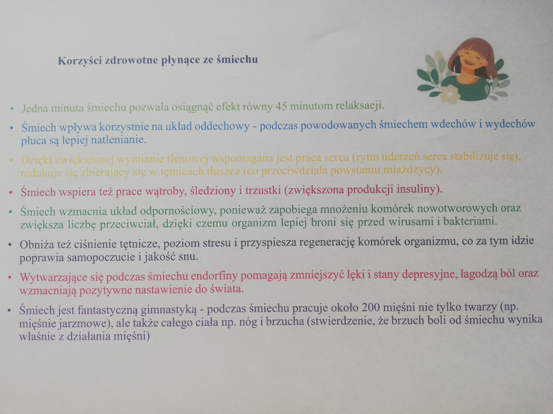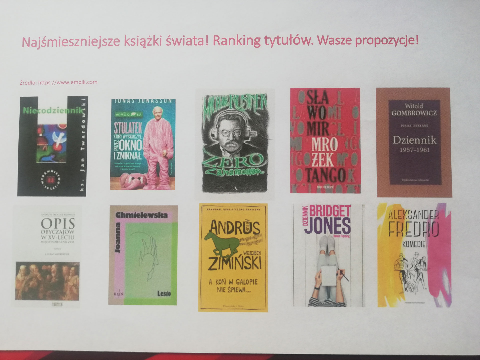 15 maja, na warsztatach “Śmiech to zdrowie” mogliśmy poznać zalety śmiechoterapii. Poznaliśmy też tytuły książek, które mogą nas rozbawić.