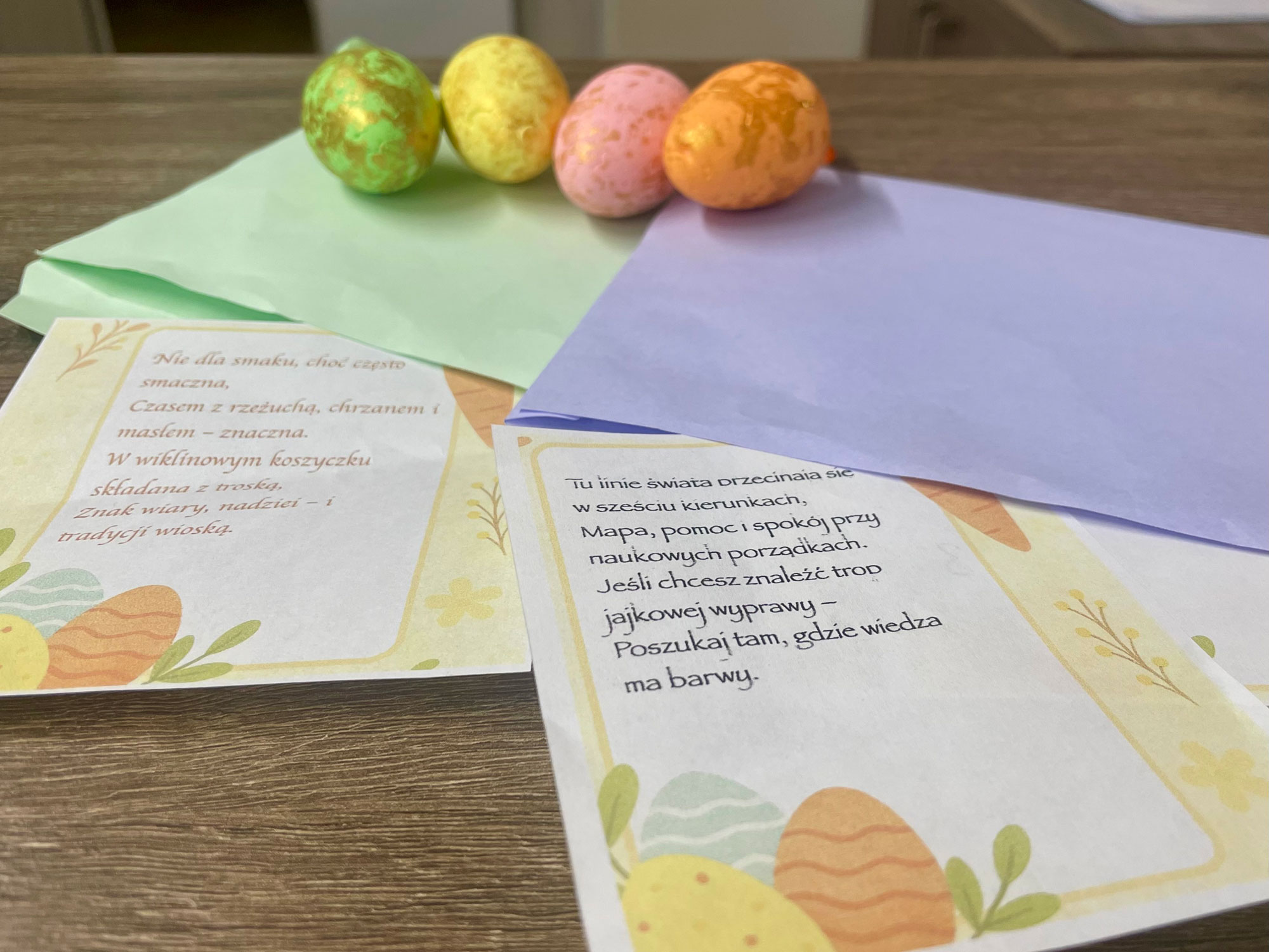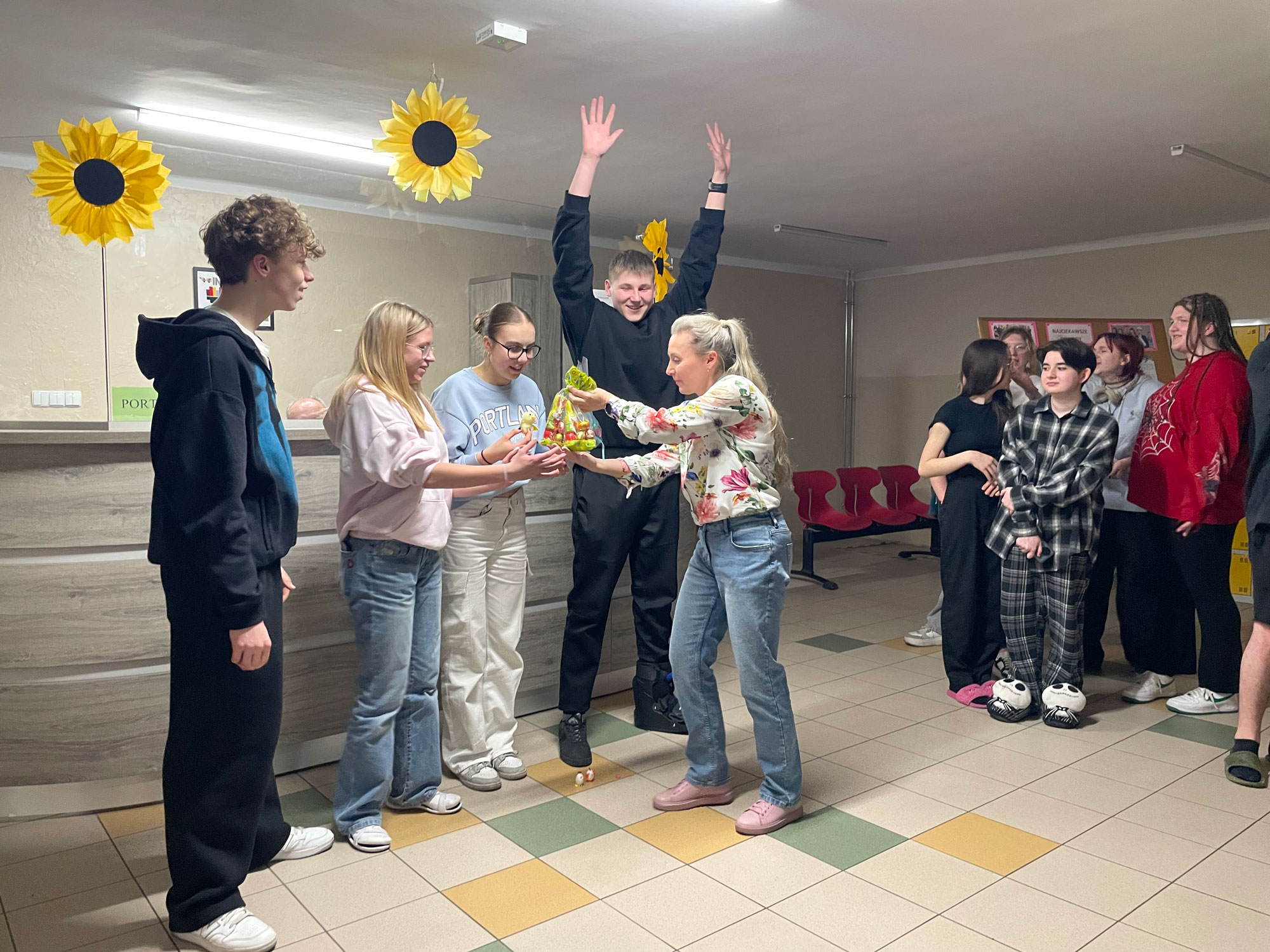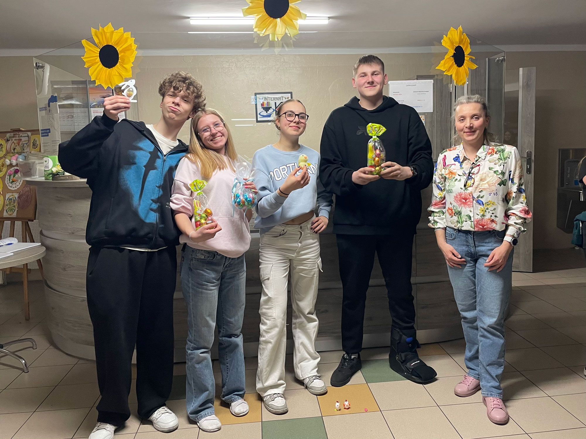 Z okazji Świąt Wielkanocnych wychowankowie internatu wzięli udział w radosnych podchodach, szukając ukrytych jajek i rozwiązując zagadki związane z tradycjami wielkanocnymi. Dodatkowo, podczas tworzenia ozdób – kurczaczków i zajączków, wychowankowie poznawali różne obyczaje związane z tymi świętami, a każda zagadka przybliżała je do kolejnej niespodzianki.