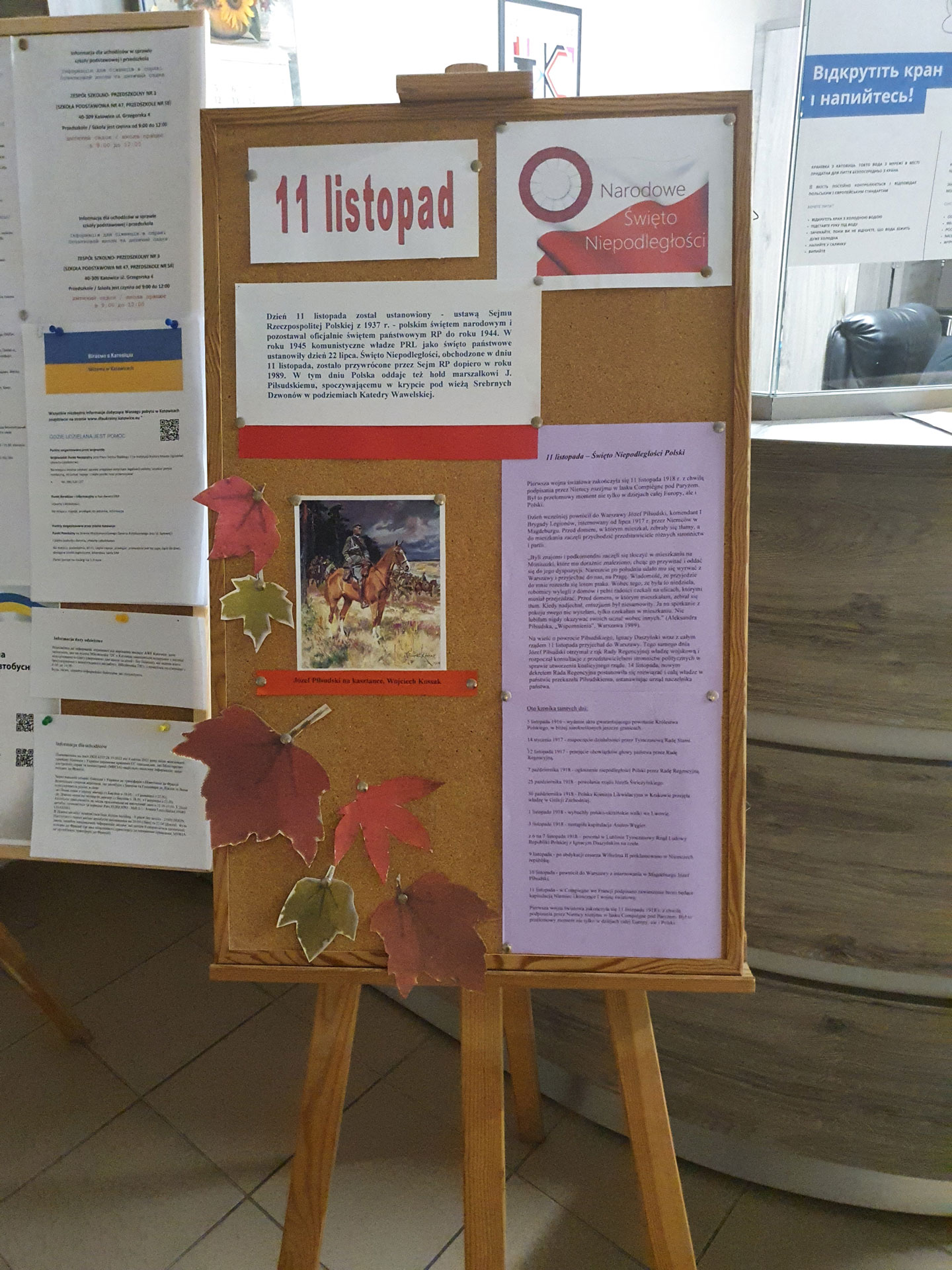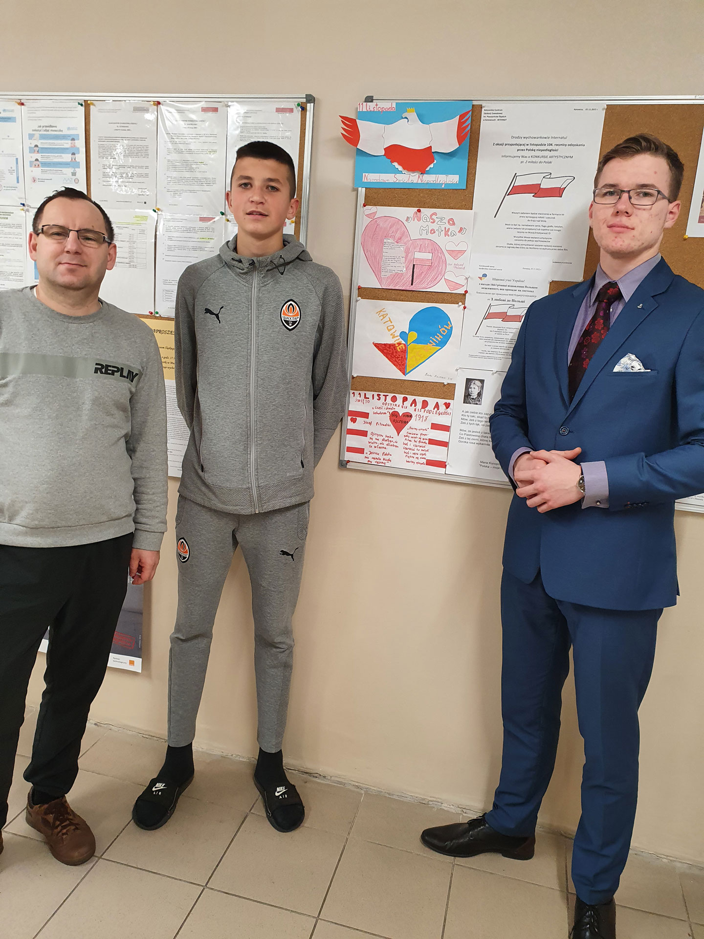 Każdego roku w naszym internacie świętujemy rocznicę odzyskania przez Polskę niepodległości. Podobnie jak poprzednimi laty przed budynkiem powiewały piękne biało – czerwone flagi. Udekorowany został w barwy narodowe także hol. Nie mogło tutaj zabraknąć ciekawych wierszy oraz reprodukcji obrazów nawiązujących do tych niezwykle ważnych wydarzeń z historii Polski. Udostępniono młodzieży gazetkę poruszającą temat trudnych początków odradzania się naszej Ojczyzny. Godnym upamiętnieniem 104. rocznicy Niepodległości Polski miał być także konkurs artystyczny pt. Z miłości do Polski. Młodzież naszego internatu miała za zadanie wykonać pracę w formacie A4 dot. naszego Święta. Zwycięzcami konkursu okazali się: Rustam Baiev z Ukrainy oraz Mikołaj Mróz.