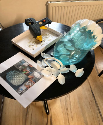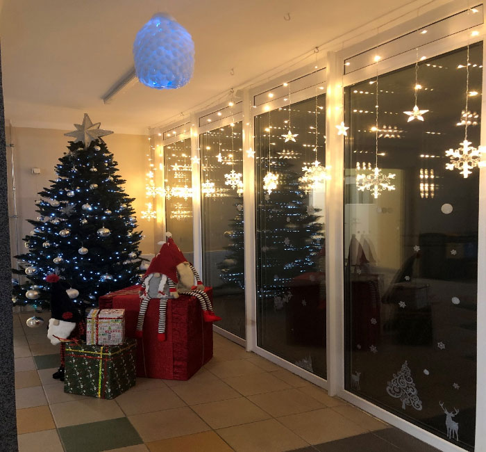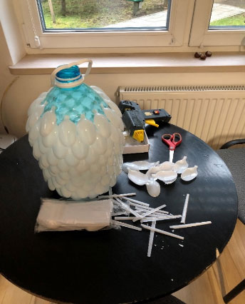 Kolejna rzecz powstała w internacie z bezużytecznych rzeczy. Lampa wykonana została z plastikowych łyżeczek, butelki pet 5l, kleju na gorąco i świecących lampek - jest uzupełnieniem świątecznej dekoracji.