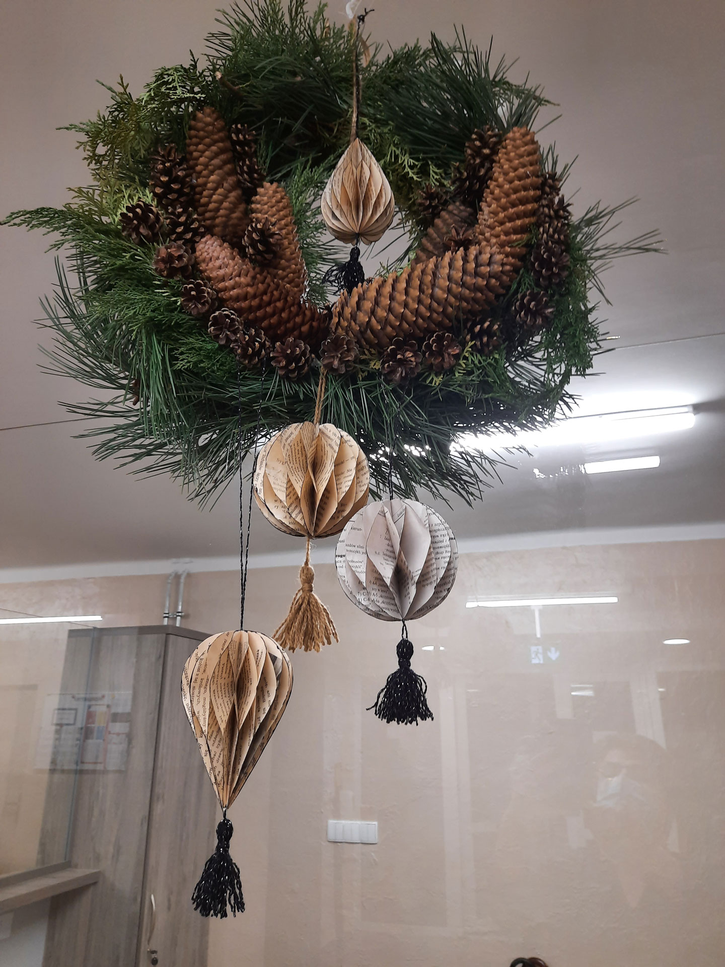 Ozdoby ręcznie robione są świetnym pomysłem na oryginalne, a przy tym tanie dekoracje. Na świątecznych warsztatach w internacie można własnoręcznie wykonać bombki, wieńce i dekoracje, którymi możemy przystroić pokój, mieszkanie czy dom. Do stworzenia tych pięknych, niebanalnych ozdób wystarczy trochę gałązek, naturalnych ozdób np.szyszek, papier, stare książki oraz trochę kreatywności.