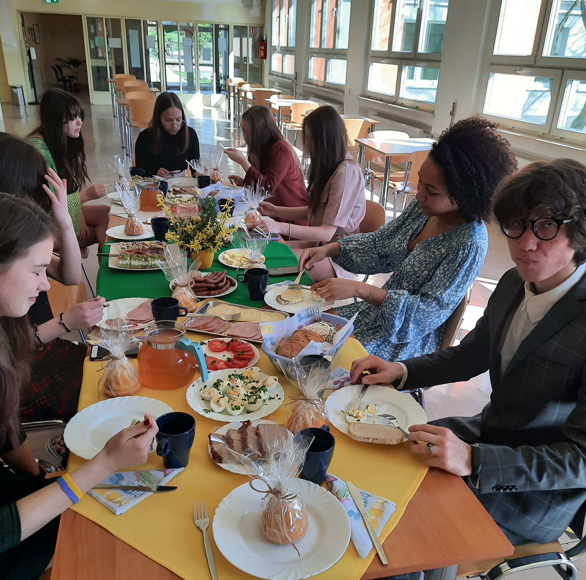W świątecznej atmosferze Niedzieli Wielkanocnej, młodzież spotkała się na uroczystym śniadaniu. Wraz z p. Iloną ten szczególny czas spędzili wspólnie w wyjątkowym nastroju, delektując się smakołykami (również słodkimi wypiekami).