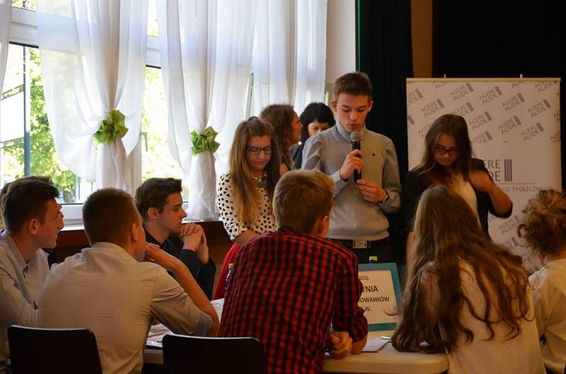 Kolejnym zadaniem konkursowym były odpowiedzi na pytania decydentów i ekspertów. Pytania okazały się naprawdę trudne. Ale nasza grupa doskonale sobie z nimi poradziła. Przed obradami, członkowie jury mogli jeszcze porozmawiać z młodzieżą, by ostatecznie rozwiać swoje wątpliwości. Należy podkreślić, że zadanie jurorów było niełatwe. Wszystkie projekty zasługiwały na uwagę. Wszystkie grupy mocno zaangażowały się w jak najlepsze przedstawienie swojej inicjatywy społecznej.
