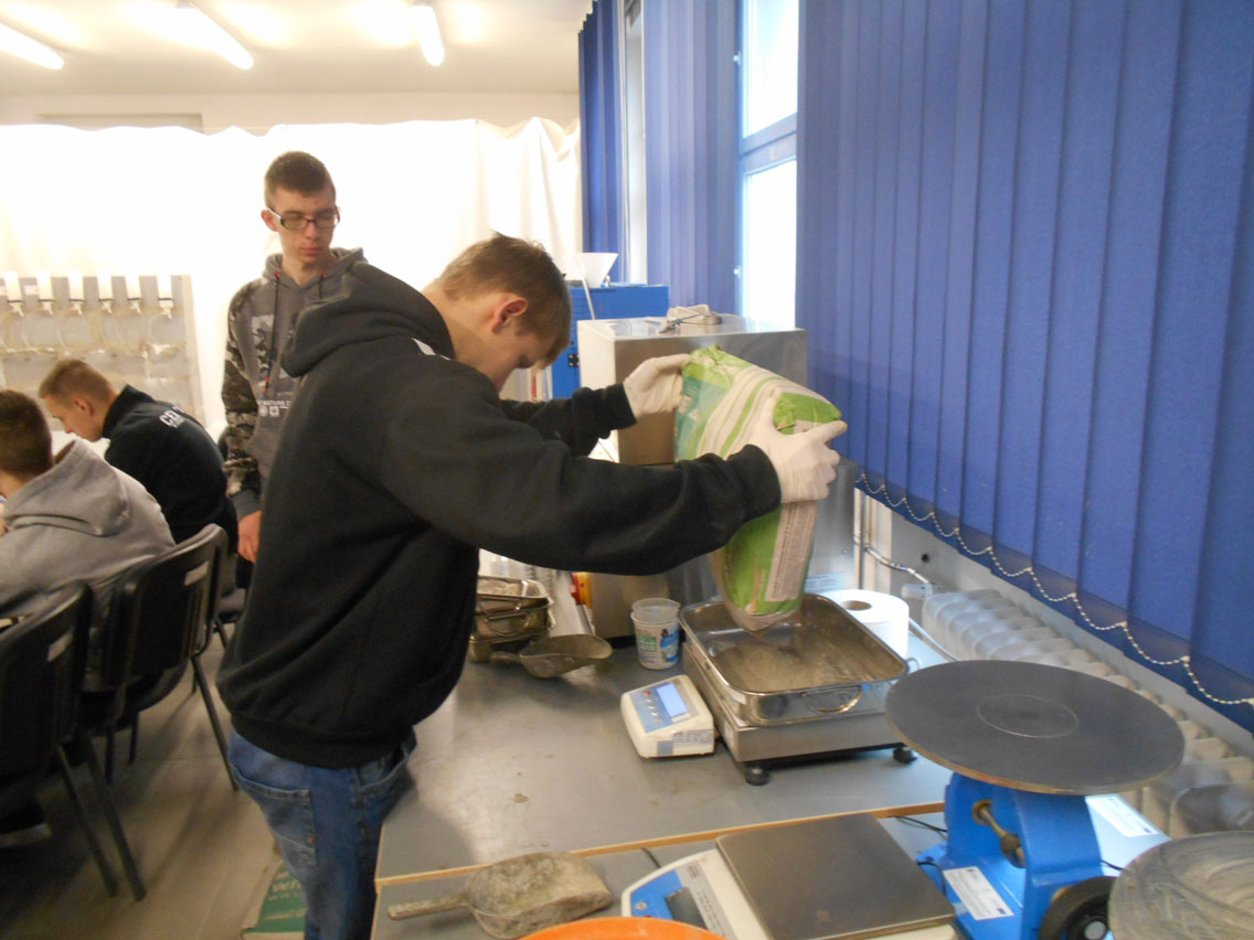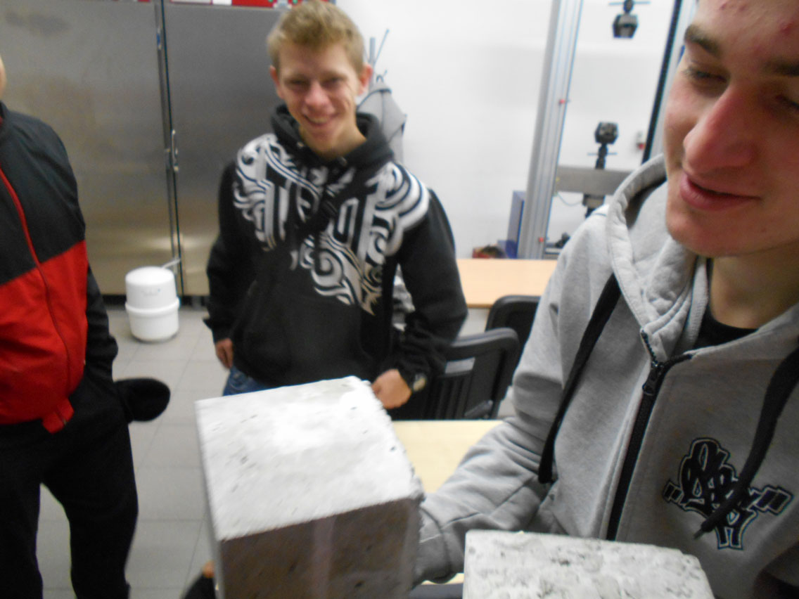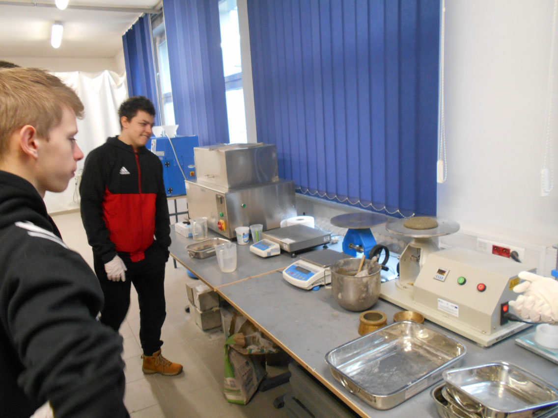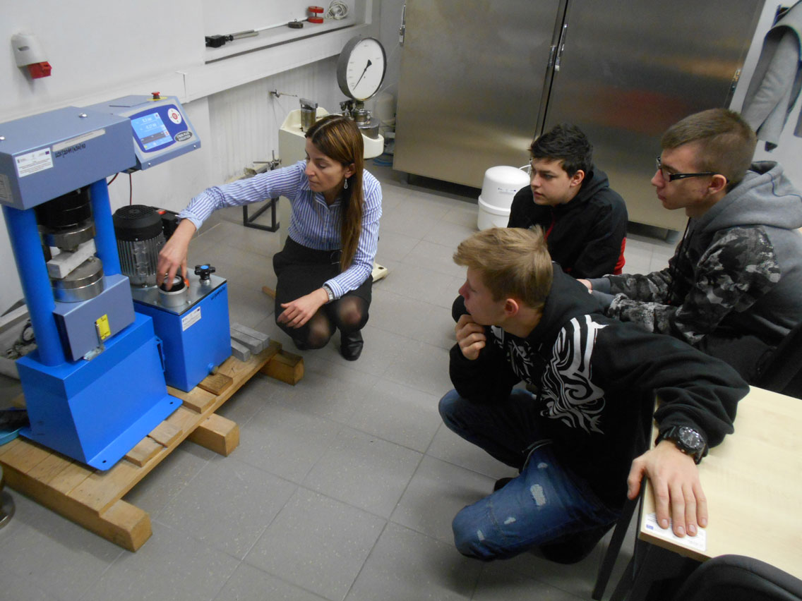Również uczniowie klasy 3 a BZIS 12.12.2018 r. brali udział w kolejnych zajęciach w laboratorium budowlanym zorganizowanych na WST. Obserwowali badania wytrzymałościowe materiałów budowlanych – rozciąganie pręta, ściskanie próbki wykonanej z betonu i zaczynu cementowego oraz zginanie drewnianej beleczki – sosnowej i dębowej. W drugiej części zajęć uczniowie zajęli się oznaczaniem składu ziarnowego kruszywa i kształtu ziaren a także przygotowaniem zaczynu do wykonania próbnej mieszanki betonowej i obliczeniem ilości składników na 1 m 3 betonu oraz wykonaniem mieszanki betonowej. Konkretne działania spotkały się z dużym zainteresowaniem młodzieży, padały pytania dotyczące wytrzymałości materiałów, procesów technologicznych. Było także miejsce na zapoznanie się z ofertą uczelni oraz zaproszenie na Dni Otwarte WST w marcu i czerwcu 2019 r.