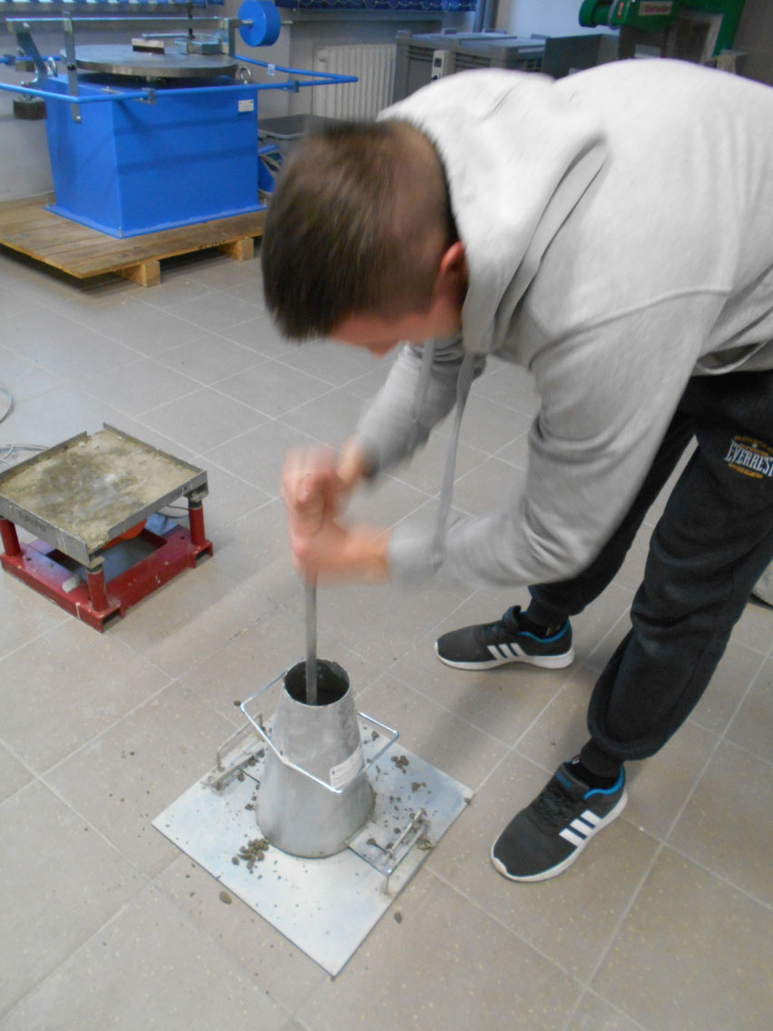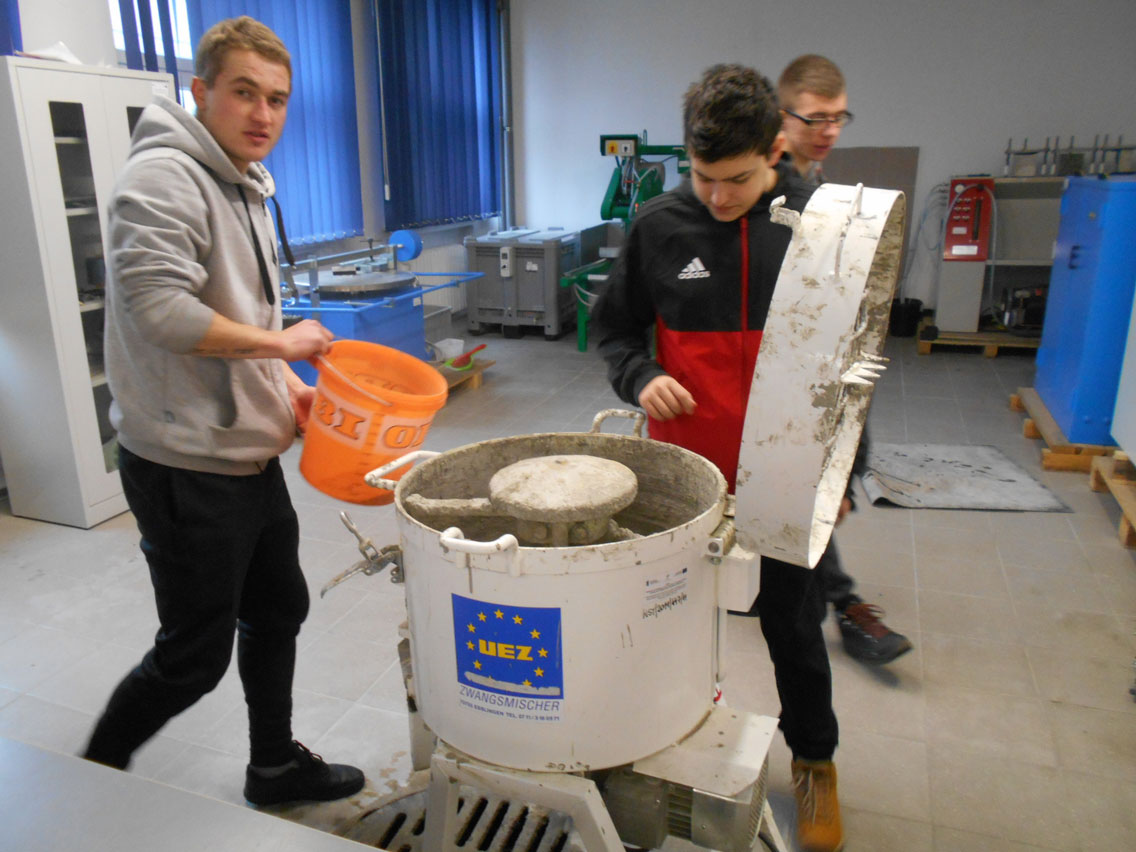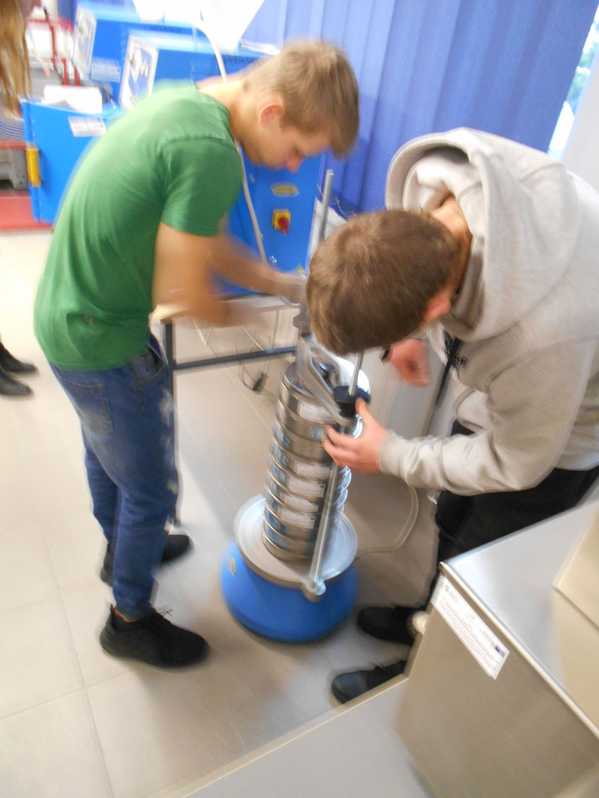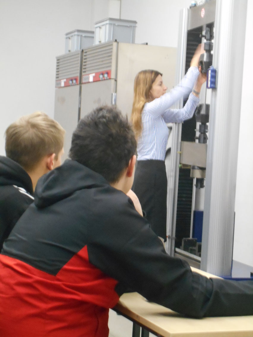 Również uczniowie klasy 3 a BZIS 12.12.2018 r. brali udział w kolejnych zajęciach w laboratorium budowlanym zorganizowanych na WST. Obserwowali badania wytrzymałościowe materiałów budowlanych – rozciąganie pręta, ściskanie próbki wykonanej z betonu i zaczynu cementowego oraz zginanie drewnianej beleczki – sosnowej i dębowej. W drugiej części zajęć uczniowie zajęli się oznaczaniem składu ziarnowego kruszywa i kształtu ziaren a także przygotowaniem zaczynu do wykonania próbnej mieszanki betonowej i obliczeniem ilości składników na 1 m 3 betonu oraz wykonaniem mieszanki betonowej. Konkretne działania spotkały się z dużym zainteresowaniem młodzieży, padały pytania dotyczące wytrzymałości materiałów, procesów technologicznych. Było także miejsce na zapoznanie się z ofertą uczelni oraz zaproszenie na Dni Otwarte WST w marcu i czerwcu 2019 r.