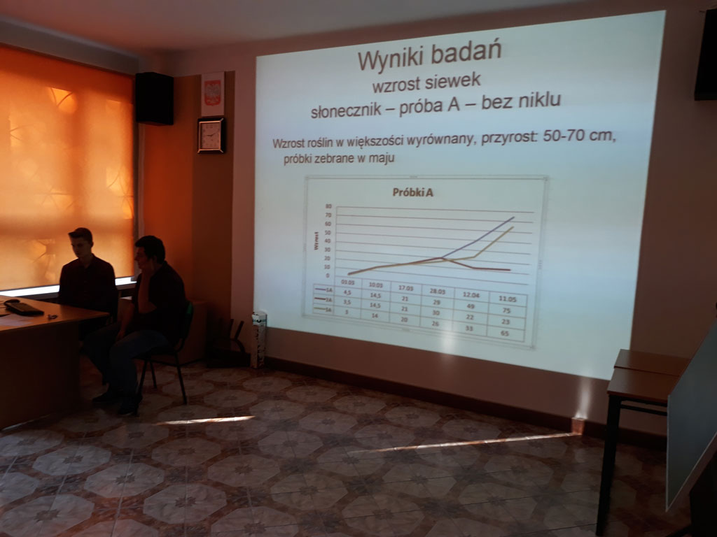 Zakończyliśmy I Międzyszkolny Interdyscyplinarny Projekt Naukowy „Młody Badacz”. Przez całe drugie półrocze obserwowaliśmy wzrost siewek słonecznika i kukurydzy rosnących w glebie o różnym stężeniu niklu.
