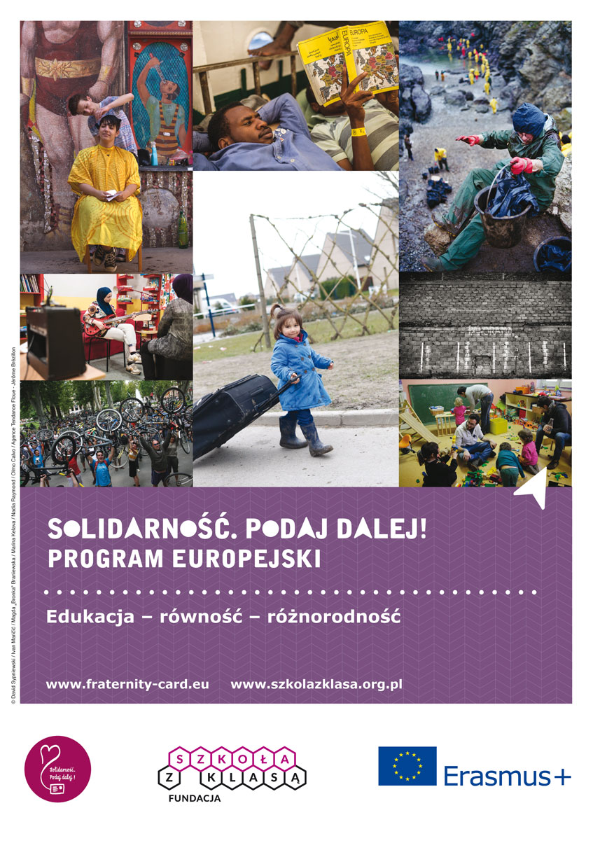 Od lutego br. w naszej szkole zaczął być realizowany międzynarodowy program Solidarność. Podaj dalej! Koordynatorem projektu w Polsce jest Fundacja Szkoła z Klasą. Równolegle akcja toczy się we Francji, Hiszpanii i Chorwacji. Punktem kulminacyjnym jest wysyłka kartek, która odbędzie się w okolicy 21 marca - Międzynarodowego Dnia Walki z Dyskryminacją i Rasizmem.