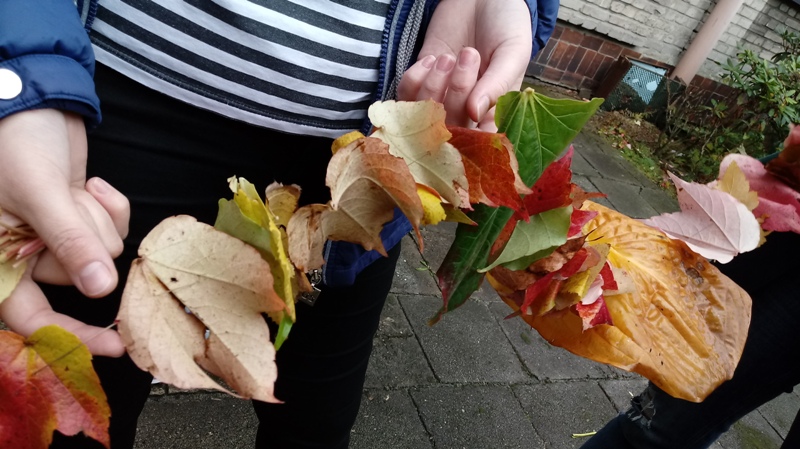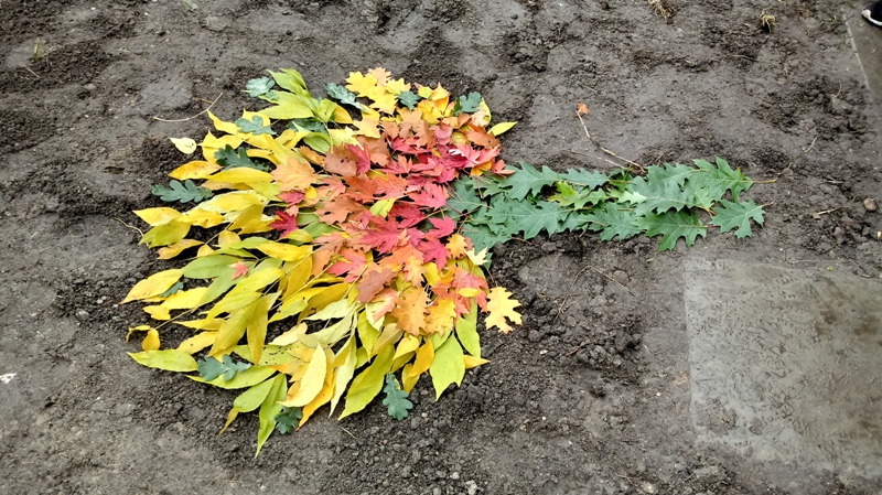 Każda klasa wykonała swoje dzieło, używając liści, patyków lub innych materiałów.