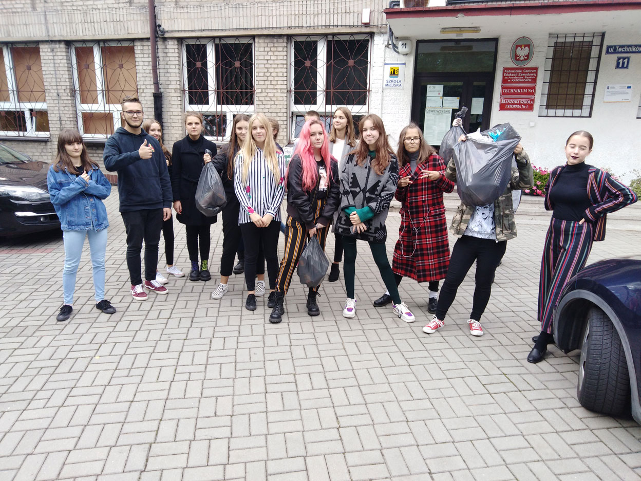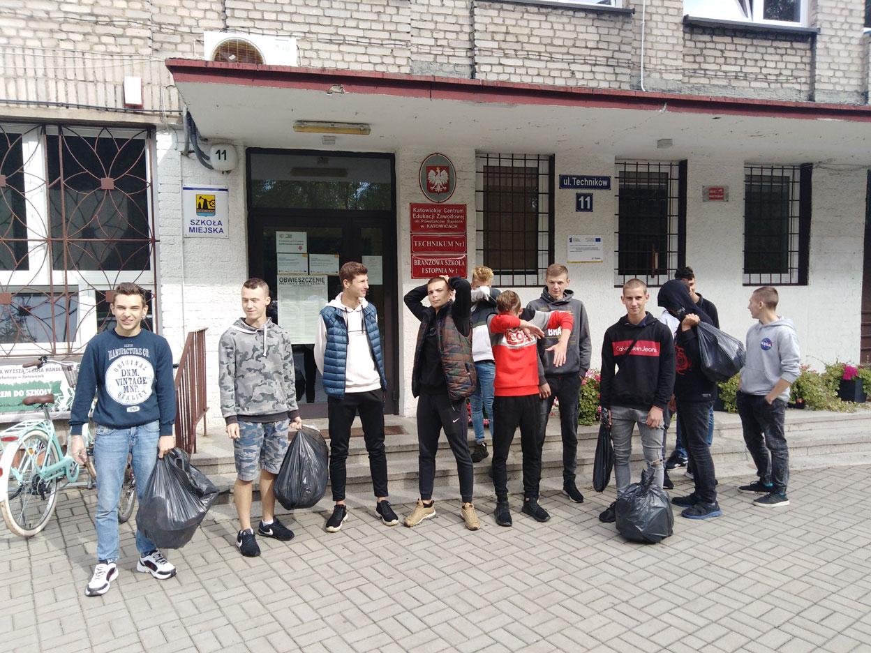 W dniach 17, 18 września uczniowie klas pierwszych ochoczo brali udział w sprzątaniu terenów w pobliskim sąsiedztwie szkoły.