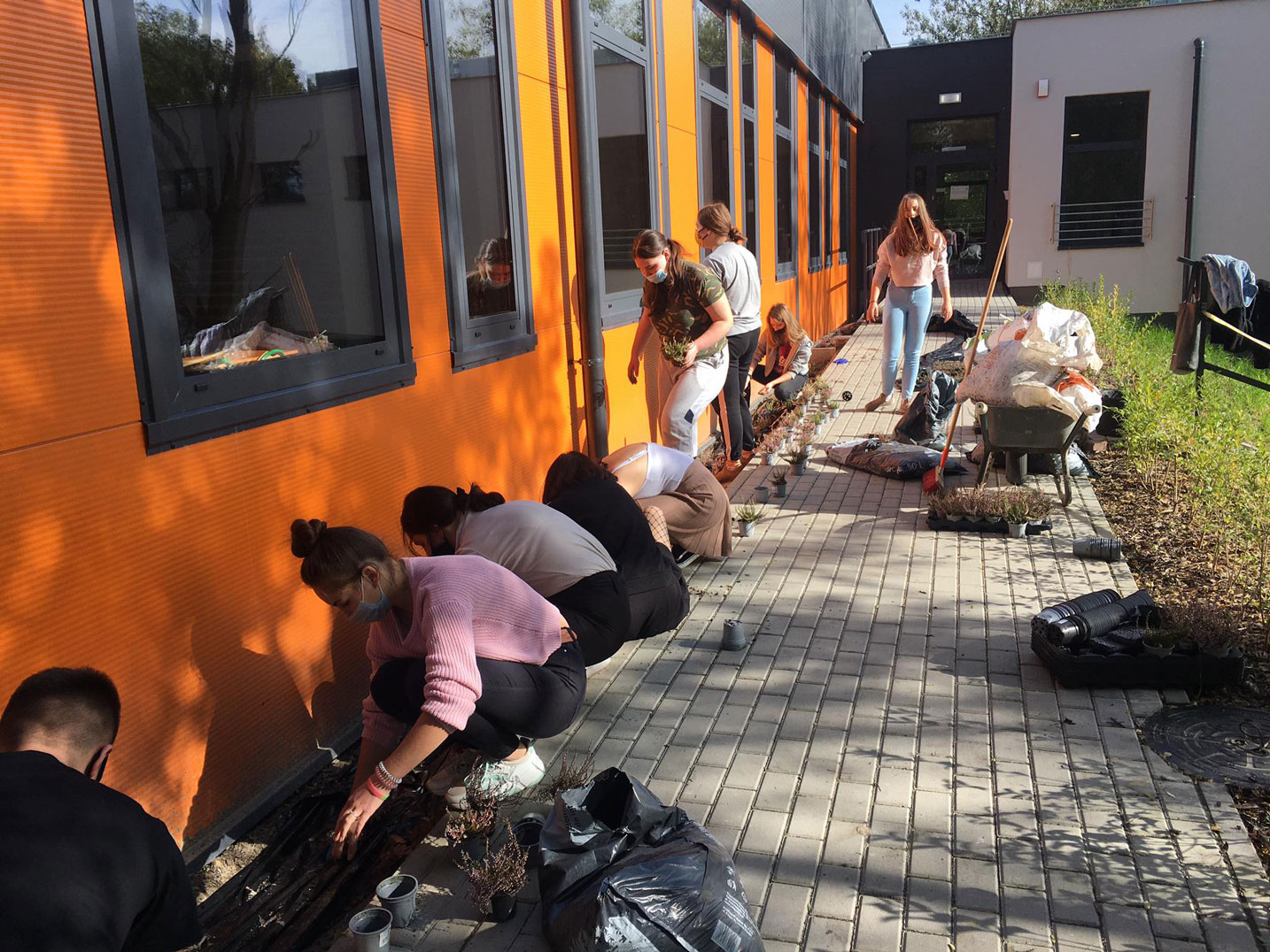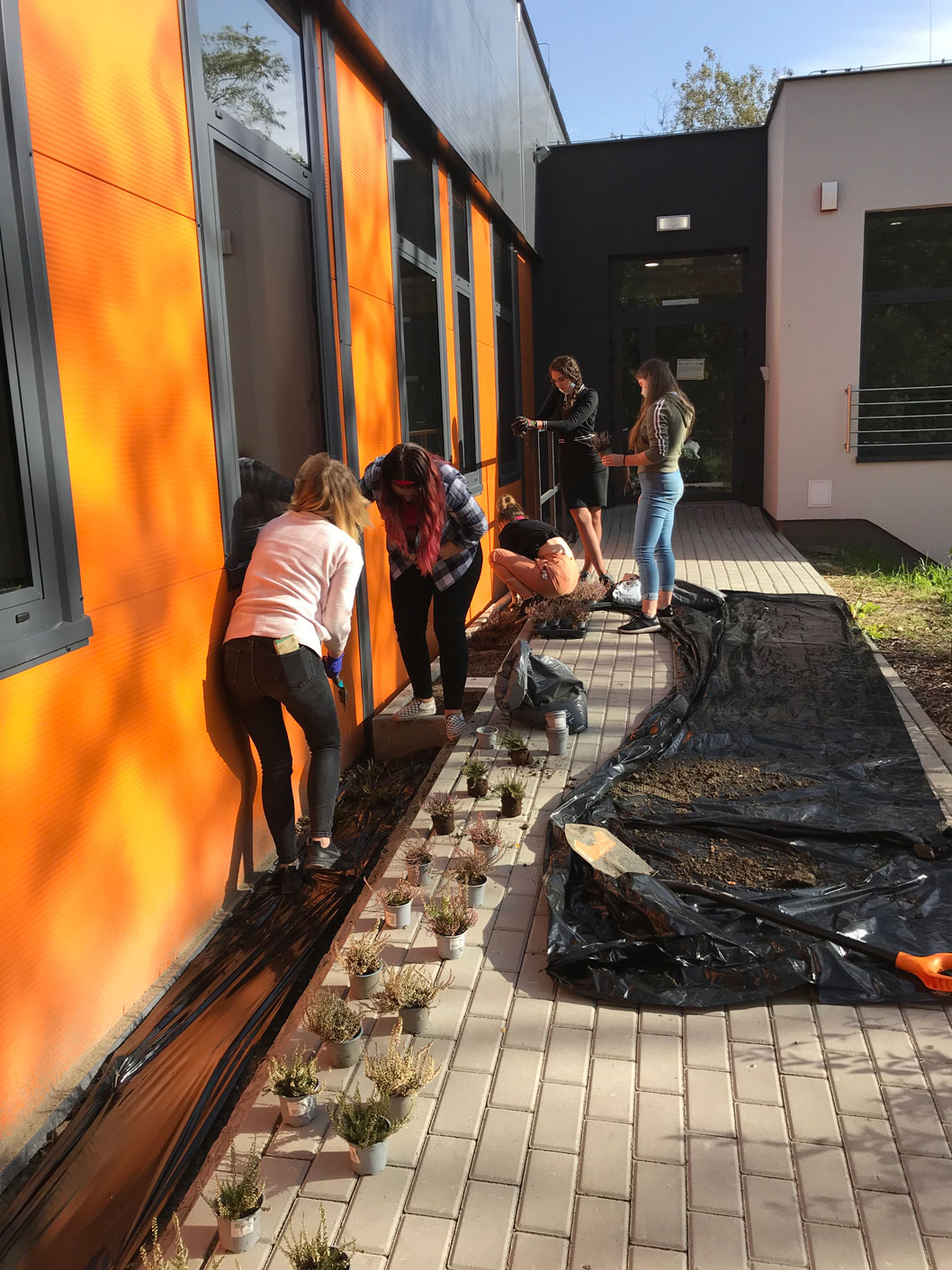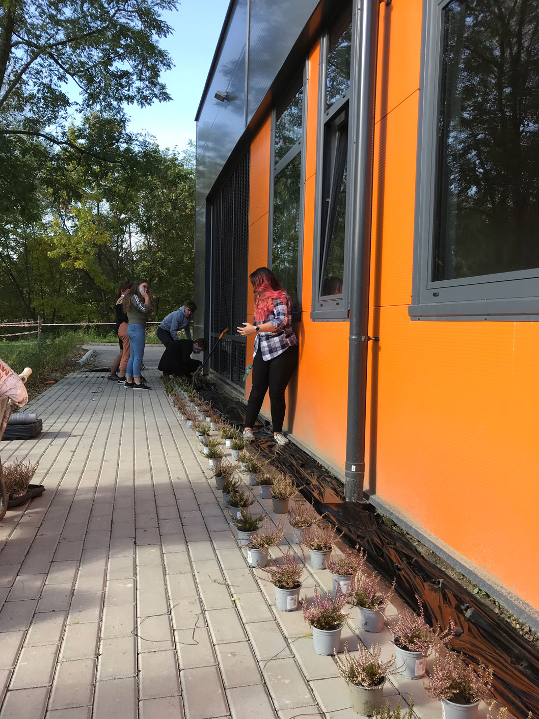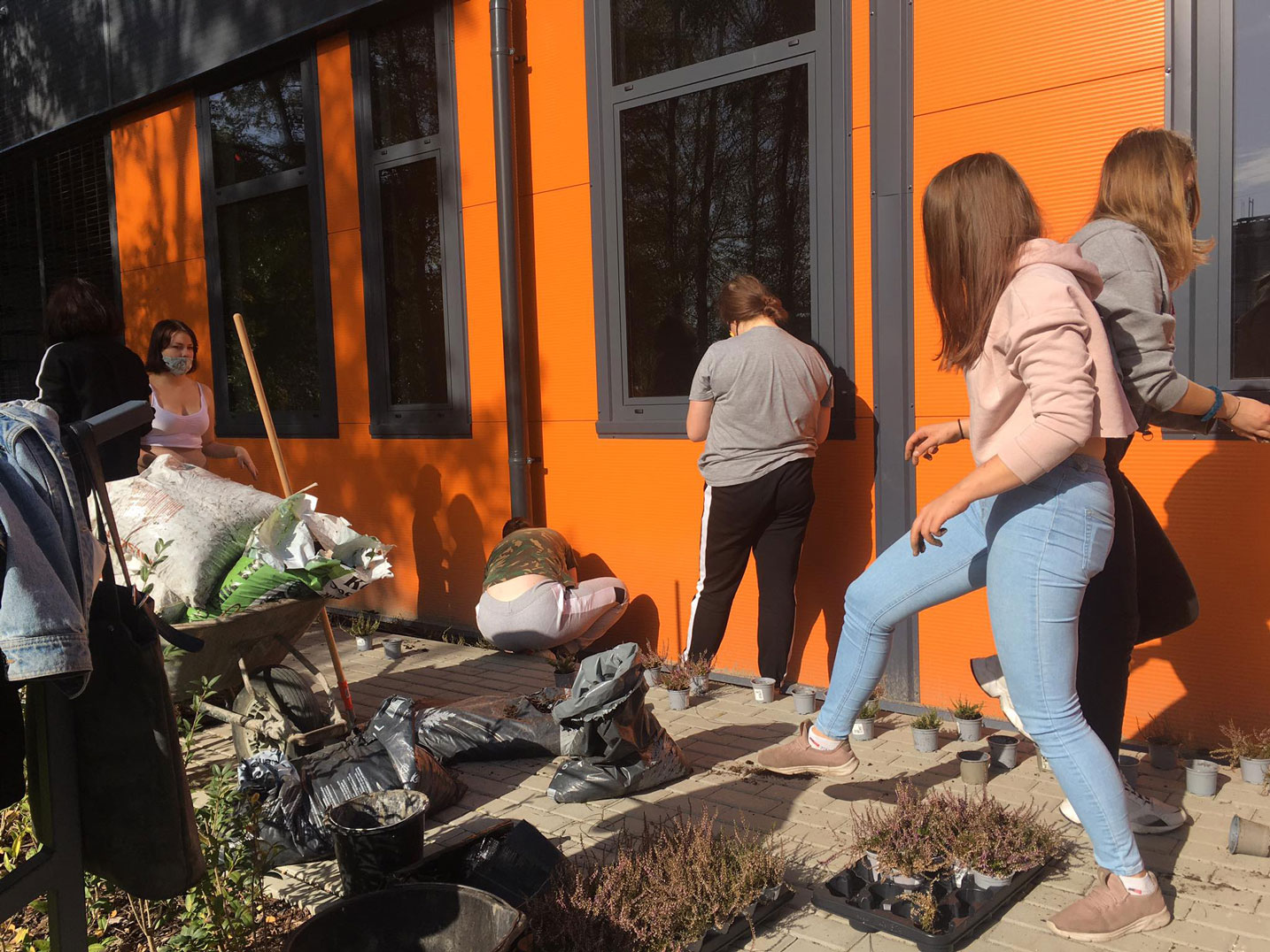 Przy nowym budynku HALI WARSZTATOWEJ zasadzili wrzosy pozyskane z akcji "KWIATY ZA ELEKTROGRATY" ??Trzymamy kciuki, żeby mimo naszej nieobecności wszystkie roślinki się przyjęły i czekały na nas po powrocie do szkoły :)