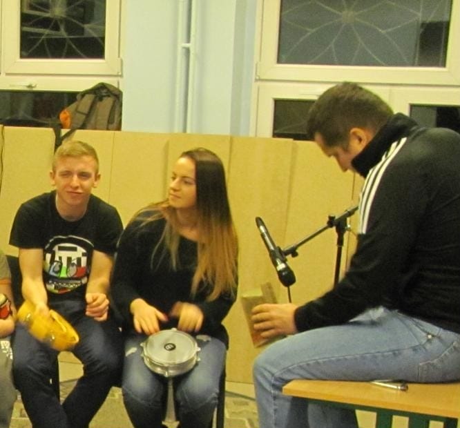 Wreszcie udało nam się wygrać 12:10. Spotkaniu towarzyszyły niesamowite emocje – a nawet polała się krew (dziękujemy Maćku za poświęcenie). Równocześnie odbywały się rozgrywki w: ping ponga, piłkarzyki oraz w bilard. Pan Mariusz Herwich przeprowadził bardzo ciekawe warsztaty muzyczne.
