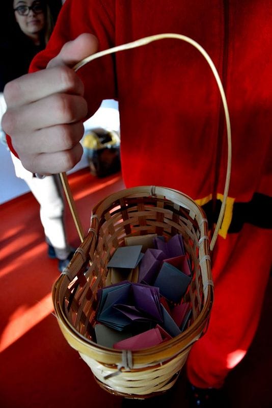 Żeby jednak nie było tak całkiem ‘na odwrót’ to Mikołaj ze Śnieżynkami chodząc po szkole i zbierając prezenty dla schroniska rozdawał uczniom takie nietypowe prezenciki w postaci kuponu na ‘np’ lub 5% więcej z kartkówki. Taka zamiana – coś dla psa lub kota za  możliwość wylosowania szczęśliwego kuponika z koszyczka.