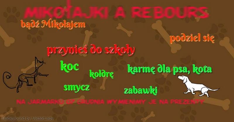 W tym roku zaproponowaliśmy wprowadzenie nowej tradycji z okazji Mikołaja. ‘Mikołajki a rebours’ – czyli Mikołajki na odwrót. To znaczy, uczniowie przyzwyczajeni do dostawania prezentów tym razem musieli sami je dać. Dać zwierzętom ze schroniska, tym najsłabszym stworzeniom, o których często zapominamy.