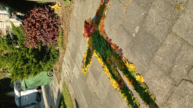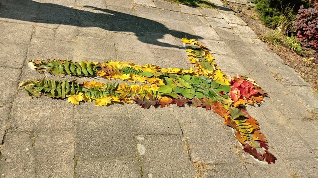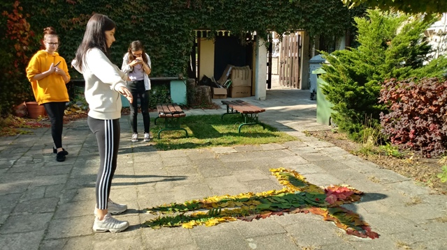 Klasa 1 wykonała kompozycję z jesiennych liści wypełniających obrys człowieka. W ten sposób uczennice przedstawiły symbolicznie znaczenie drzew w życiu ludzi.
