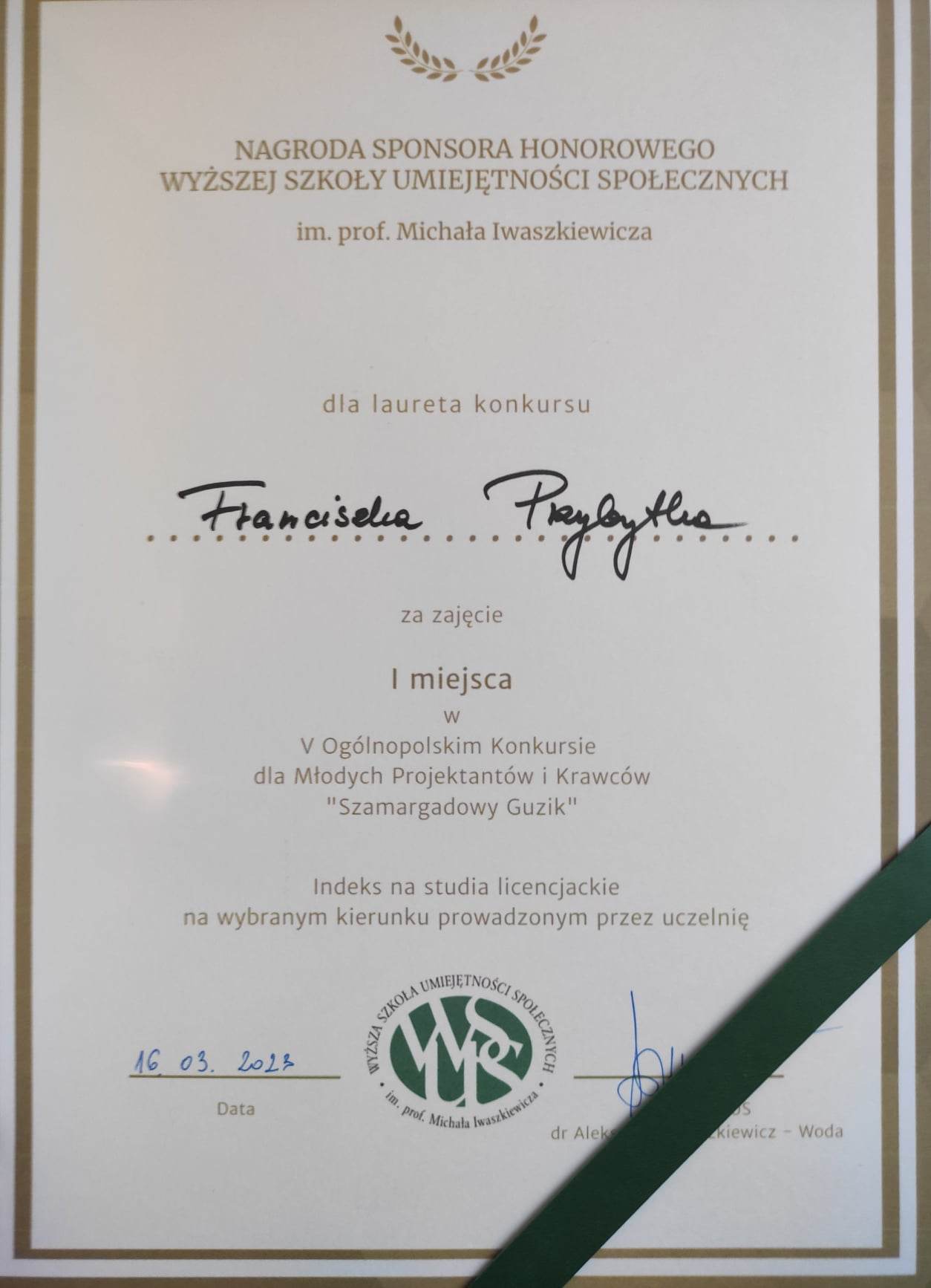 Nasz uczeń Technikum Przemysłu Mody Franciszek Przybytek zdobył I miejsce