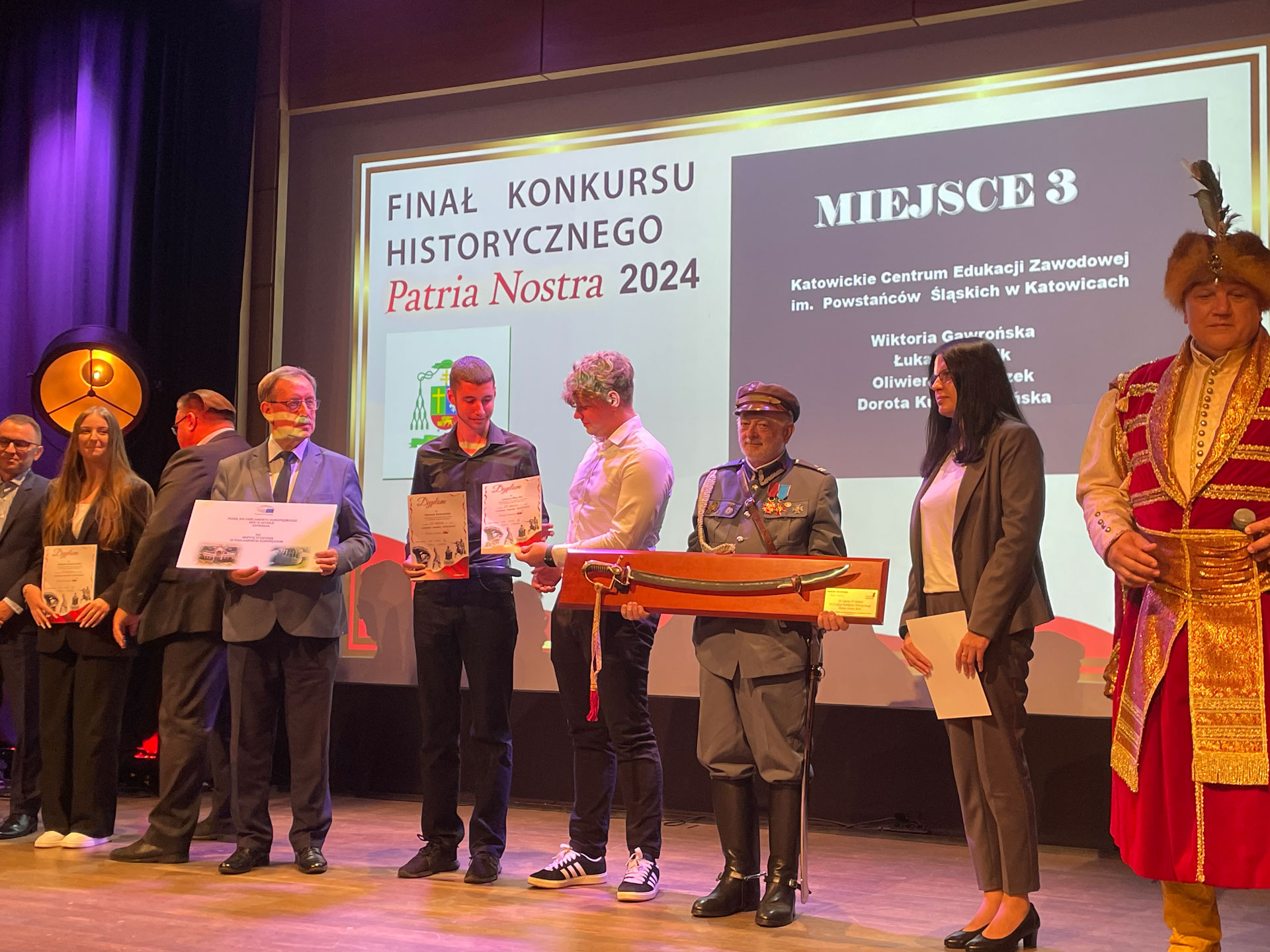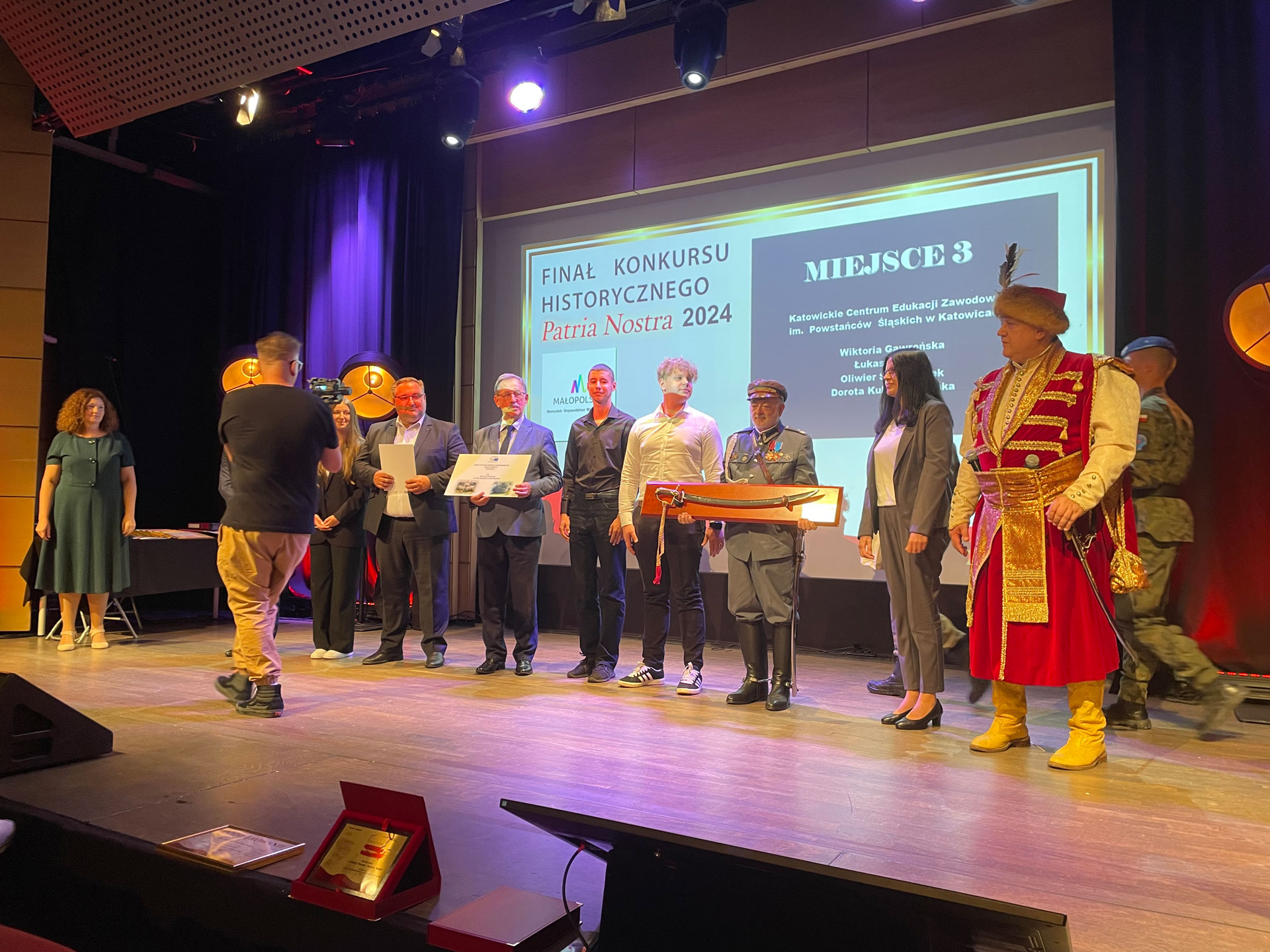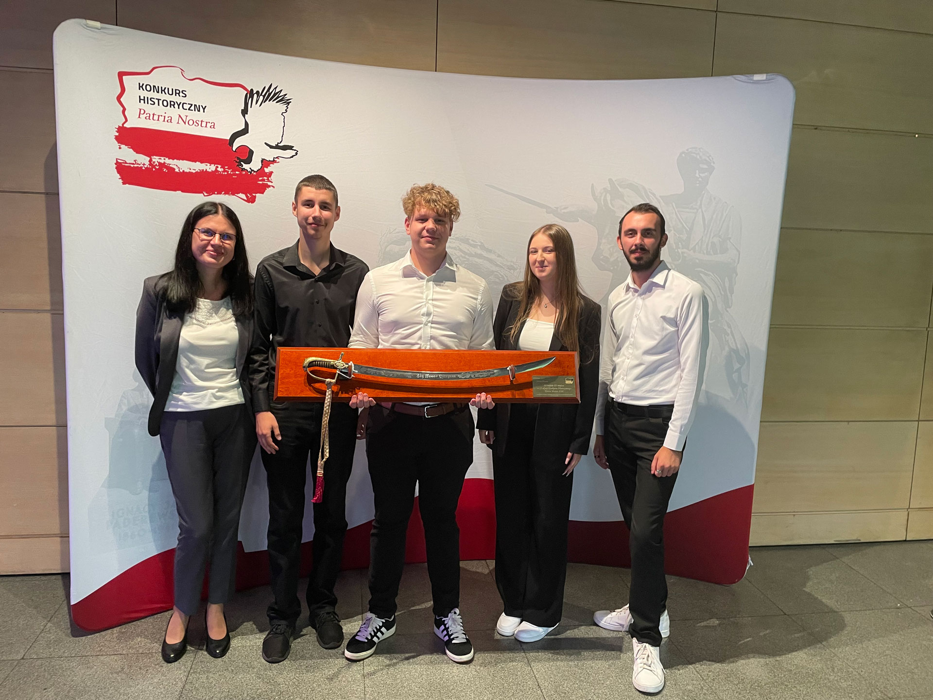 Z wielką radością informujemy, że Wiktoria Gawrońska, Łukasz Myrcik oraz Oliwier Strzewiczek z kl. 5Ap po opieką Doroty Kubicy-Jasińskiej zdobyli tytuł laureata IX edycji filmowego konkursu historycznego Patria Nostra. 11 września w Krakowie, w Muzeum Sztuki i Techniki Japońskiej Manggha odbyła się uroczysta Gala Finałowa Konkursu Regionu Południe, podczas której nasza 4 osobowa Drużyna stanęła na podium, zajmując 3 miejsce.
