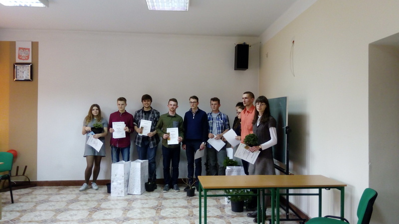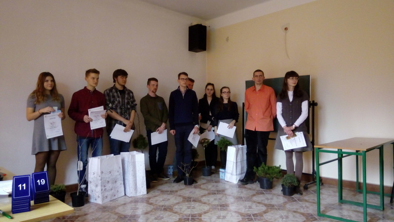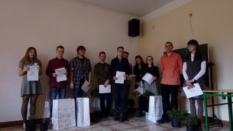 Do drugiej części zakwalifikowało się 10 uczestników, w tym 3 osoby z naszej szkoły. Druga część polegała na rozpoznawaniu gatunków na podstawie żywych pędów. Pierwsze miejsce w konkursie otrzymał nasz uczeń – Dawid Sęk, II miejsce – Marcin Faruga z Powiatowego Zespołu Szkół w Pszczynie, III miejsce – Bartosz Grzywa z Zespołu Szkół Ogrodniczych w Bielsku-Białej. W przerwie konkursu nasi uczniowie z klasy II i III poprowadzili dla naszych gości wykład z zakresu fitoremediacji, opowiedzieli też o naszym szkolnym projekcie naukowym Młody Badacz. Wszystkim uczestnikom gratulujemy i dziękujemy za udział. Mamy nadzieję na powtórkę w przyszłym roku.