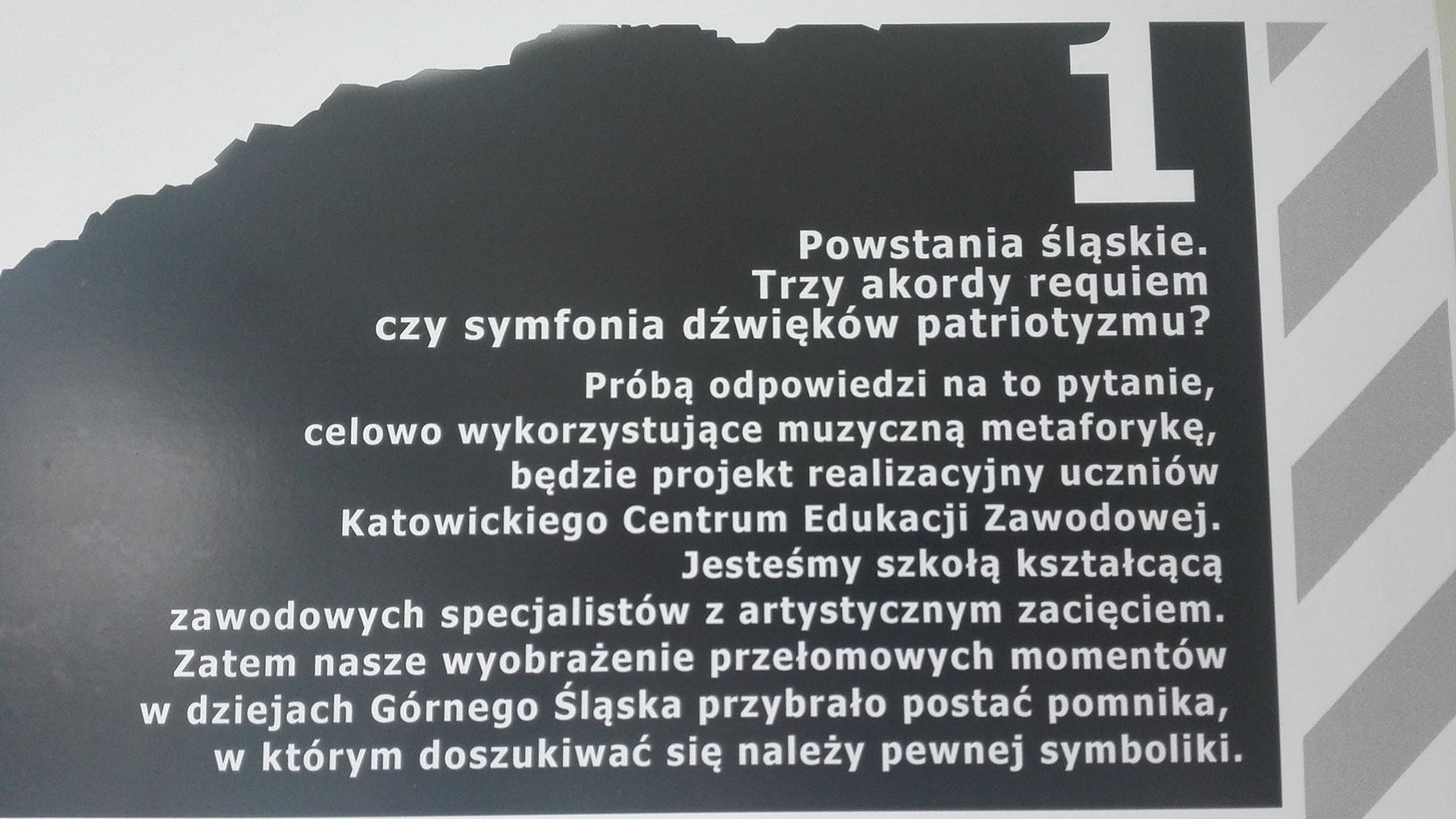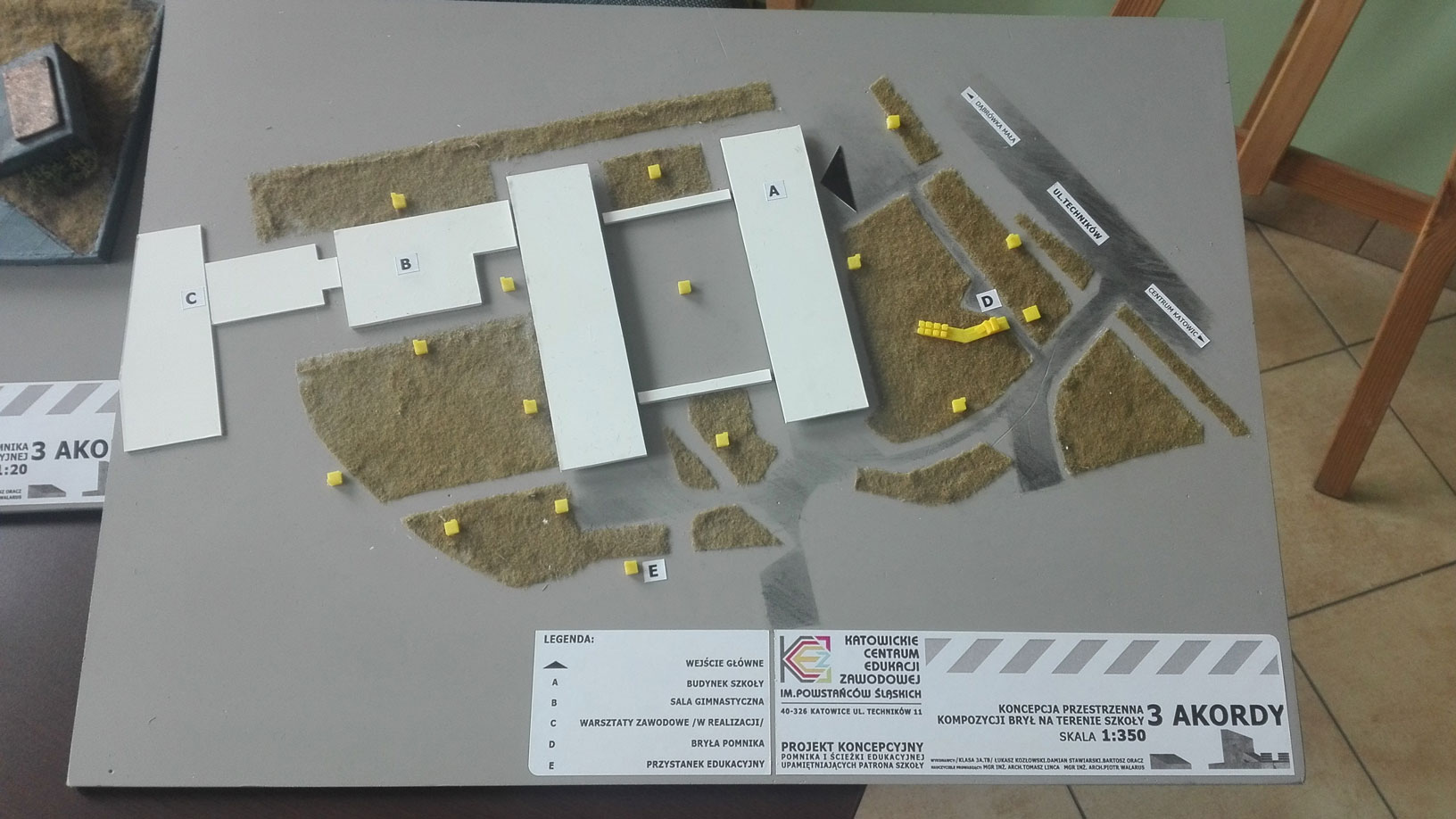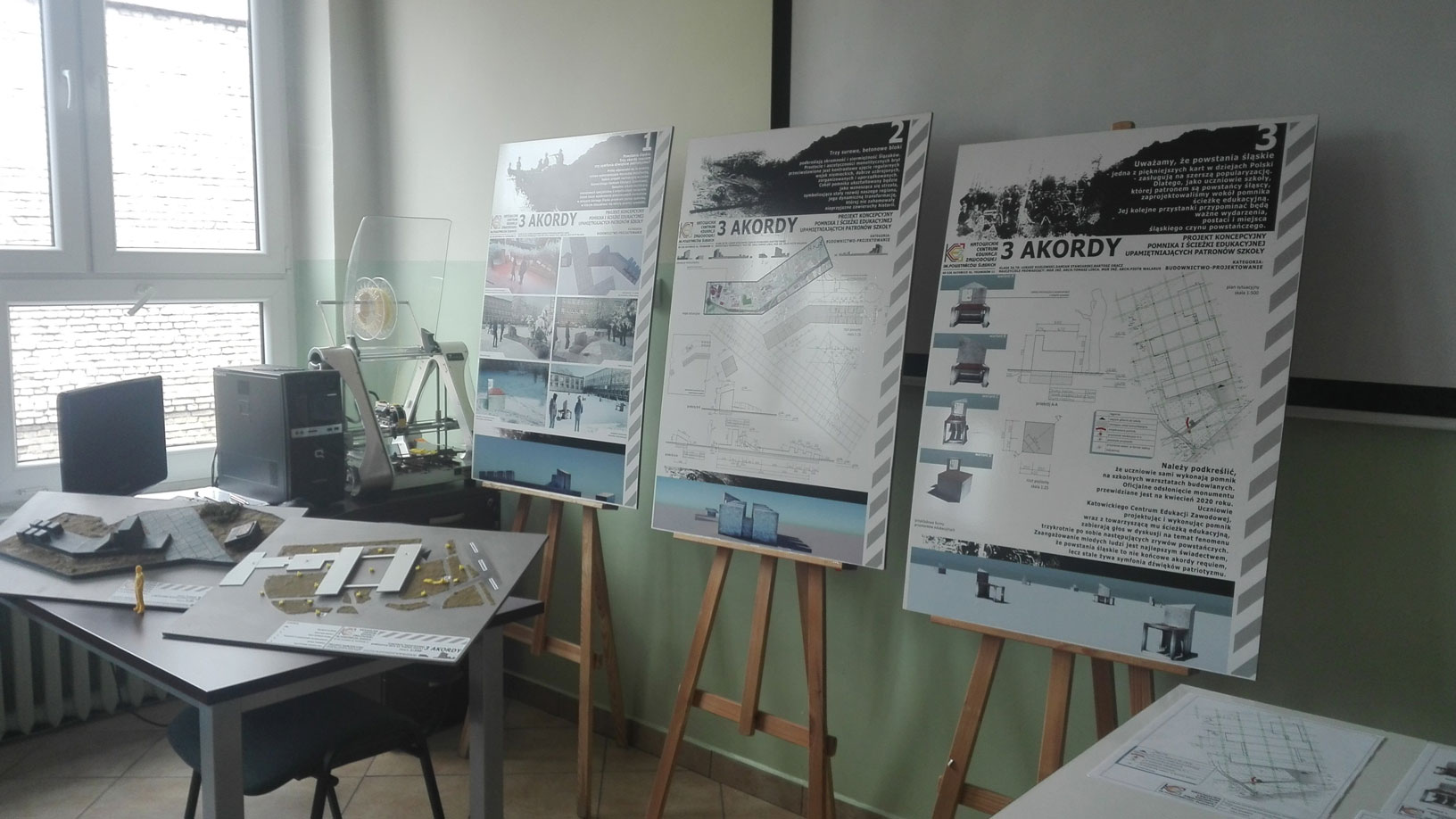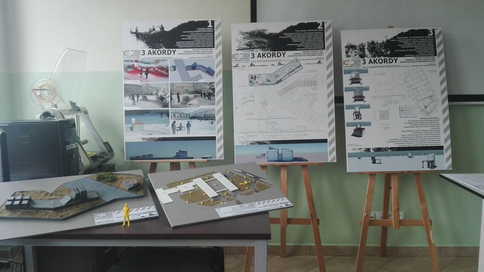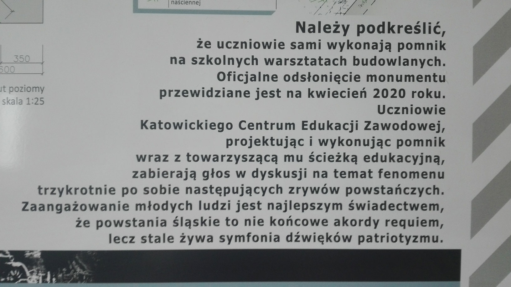 Uczniowie kl. 3 A TB : Łukasz K., Damian S. oraz Bartosz O. pod kierunkiem nauczycieli: pana Tomasza L. oraz Piotra W. wykonali projekt koncepcyjny Pomnika Powstań Śląskich oraz ścieżki edukacyjnej.