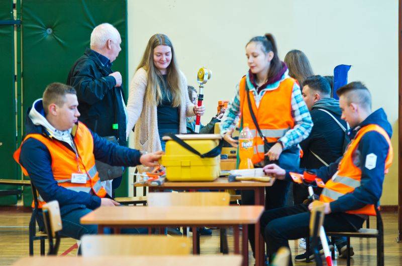Uczniowie (Klaudia K., Paulina M. i Patryk A.) wyjechali już 3 kwietnia, by rankiem z energią i zapałem wziąć udział w zmaganiach z zadaniami tekstowymi z geodezji, geod. inż i katastru. Przerwa na obiad i rozwiązywanie testów. Drugiego dnia uczestnicy wykonywali zadania terenowe przy wykorzystaniu tachimetrów elektronicznych. Wieczorem odbyło się ogłoszenie wyników i zaproszenie najlepszych 20 geodetów do etapu centralnego.