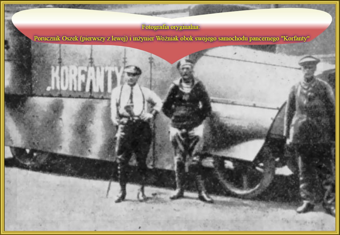 Pierwszy z tych samochodów został zbudowany przez inż. Woźniaka, przy pomocy por. mar. Oszka zaledwie w ciągu trzech dni. Podstawą samochodu stała się prawdopodobnie rama samochodu ciężarowego Magirus. Została ona opancerzona walcowaną blachą stalową wyprodukowaną w hucie Baildon. Pojazd otrzymał imię Korfanty.