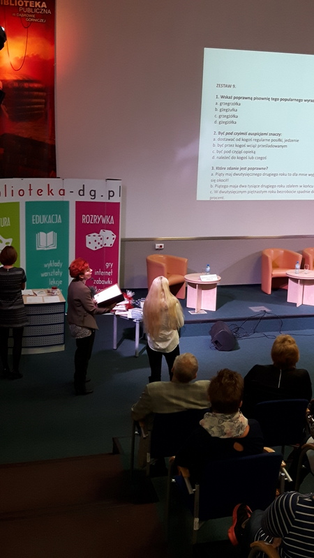Co prawda, dziewczęta nie znalazły się w gronie zwycięzców, a właściwie zwyciężczyń, bo to panie właśnie, najlepiej poradziły sobie z trudną ortografią, ale zabawa i tak była przednia, zwłaszcza że w oczekiwaniu na wyniki, uczestnicy mieli okazję posłuchać młodego, zdolnego muzyka. Był nim Kamil Kubas, który nie tylko czarował głosem, ale dodawał energii rockowymi dźwiękami. Było naprawdę emocjonująco.
