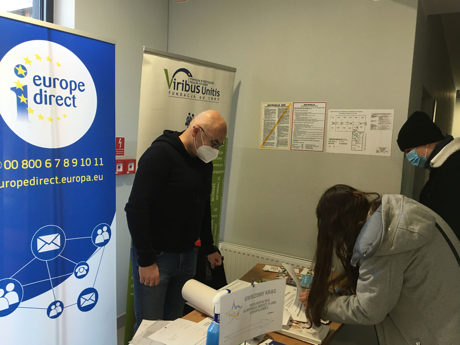 2 marca 2021r. Katowickie Centrum Edukacji Zawodowej im. Powstańców Śląskich w Katowicach pełnilo funkcję centrum egzaminacyjnego. To w naszej szkole odbył się II etap XVI Ogólnopolskiej Olimpiady Wiedzy o Unii Europejskiej „Gwiezdny Krąg", zorganizowany przez Przedstawicielstwo Komisji Europejskiej w Polsce, Parlament Europejski oraz sieć Europe Direct.
