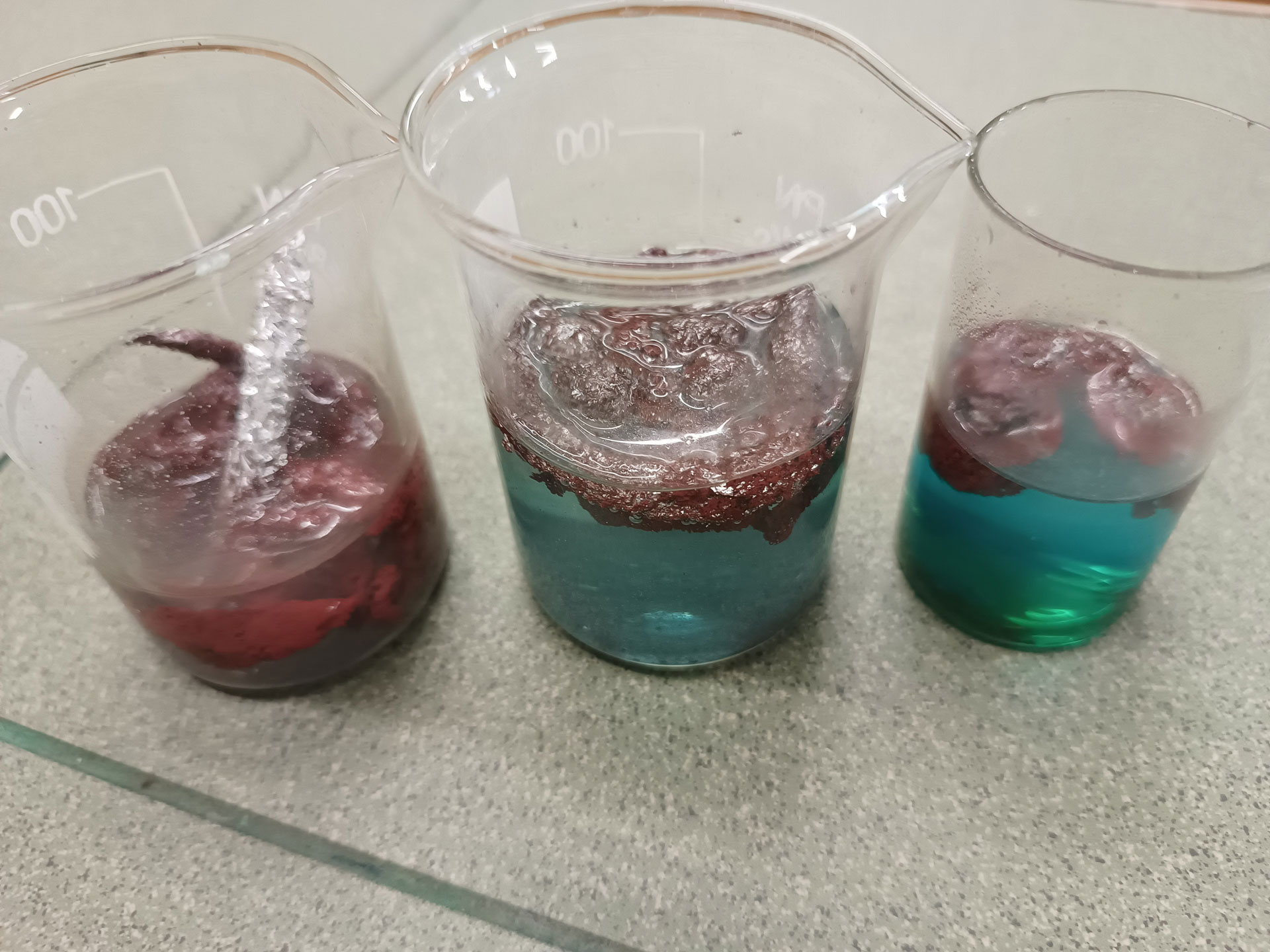 W dniach 14.03-24.04 odbyły się konkursy chemiczne polegające na wykonaniu doświadczenia chemicznego oraz na otrzymaniu kryształów soli. Uczniowie chętnie brali udział w konkursach, wykonali między innymi doświadczenia polegające na rozpuszczaniu styropianu, stworzyli lawa-lampę, otrzymali palącą się wodę, sprawdzili działanie znikającego atramentu, otrzymali swoje mydełka, rozpuszczali folię aluminiową odbarwiając niebieskie roztwory siarczanu (VI) miedzi (II), uczniowie sprawdzali nawet odciski palców na kartce. Uczniowie chętnie brali udział w konkursie polegającym na otrzymaniu kryształów, najlepszy otrzymała Julia z klasy 3Cp.