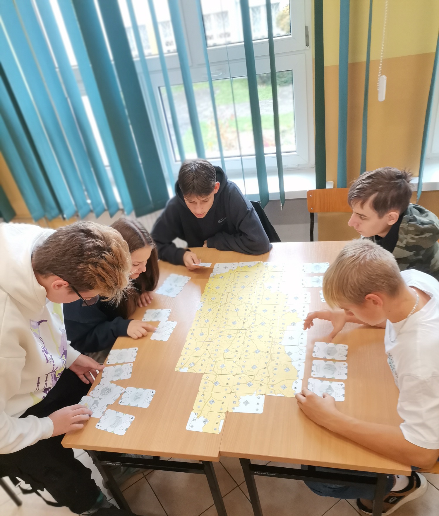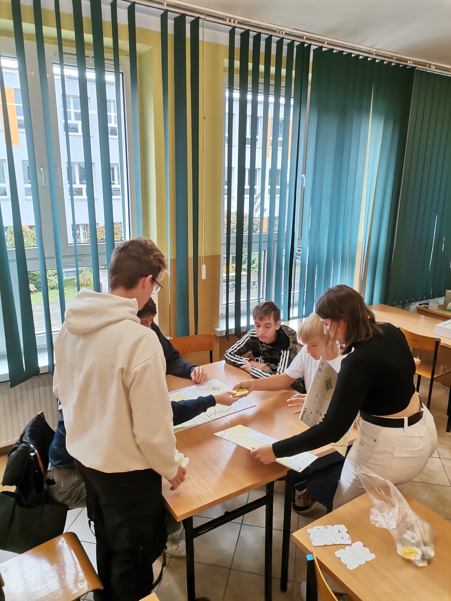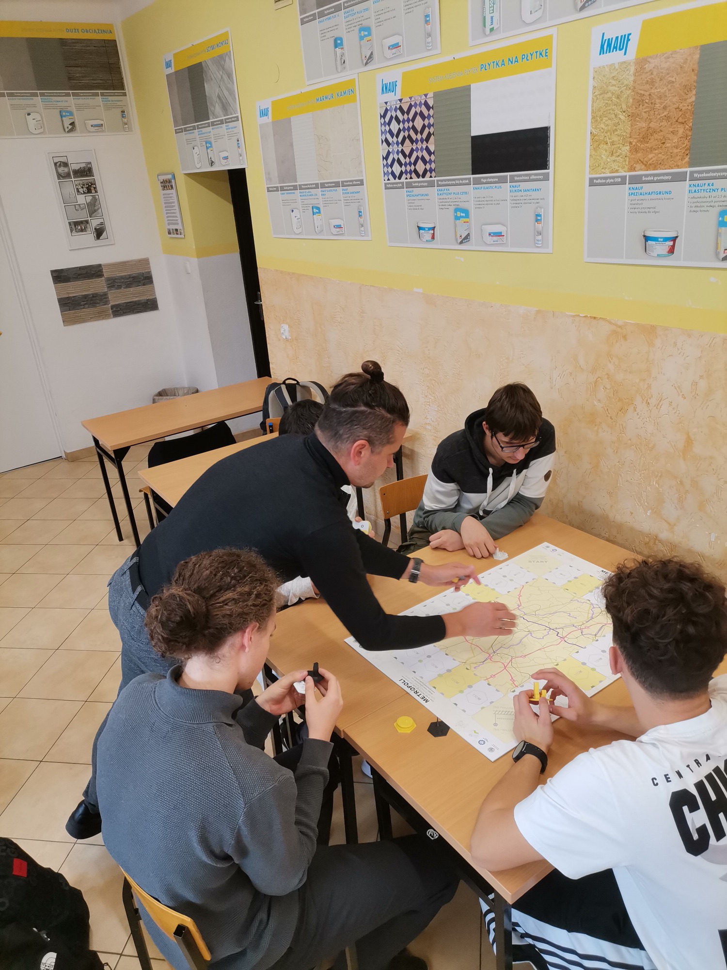 17 października 2025 r. przedstawiciele klas budowlanych: 1 Cp, 2 Bp, 3 Ap, 4 Ep uczestniczyli w warsztatach: „Gra w Metropolię”. Jest to planszowa gra strategiczna, w której gracze inwestują w nieruchomości, zarządzają funduszami i korzystają ze specjalnych połączeń komunikacyjnych. W czasie gry jest też część z quizem co wiąże się ze znajomością metropolii. Grę wymyślili i przygotowali studenci Koła Naukowego na Politechnice Śląskiej Wydziału Architektury pod kierunkiem Dziekana Wydziału Architektury- dr hab. inż. arch. prof. Tomasza Bradeckiego, którego gościliśmy w naszej szkole wraz ze studentką z Koła Naukowego. Uczestnicy gry w 2 zespołach mieli możliwość poznania metropolii w tym przypadku poprzez udział terenów zielonych w poszczególnych miastach wchodzących w skład metropolii. Inna opcja gry to komunikacja w metropolii. Było to połączenie zdobywania wiedzy i zabawy. Warsztaty możemy zaliczyć do udanych, a otrzymany komplet gry zostanie udostępniony również innym uczniom m.in. na zajęciach biznesu i zarządzania.