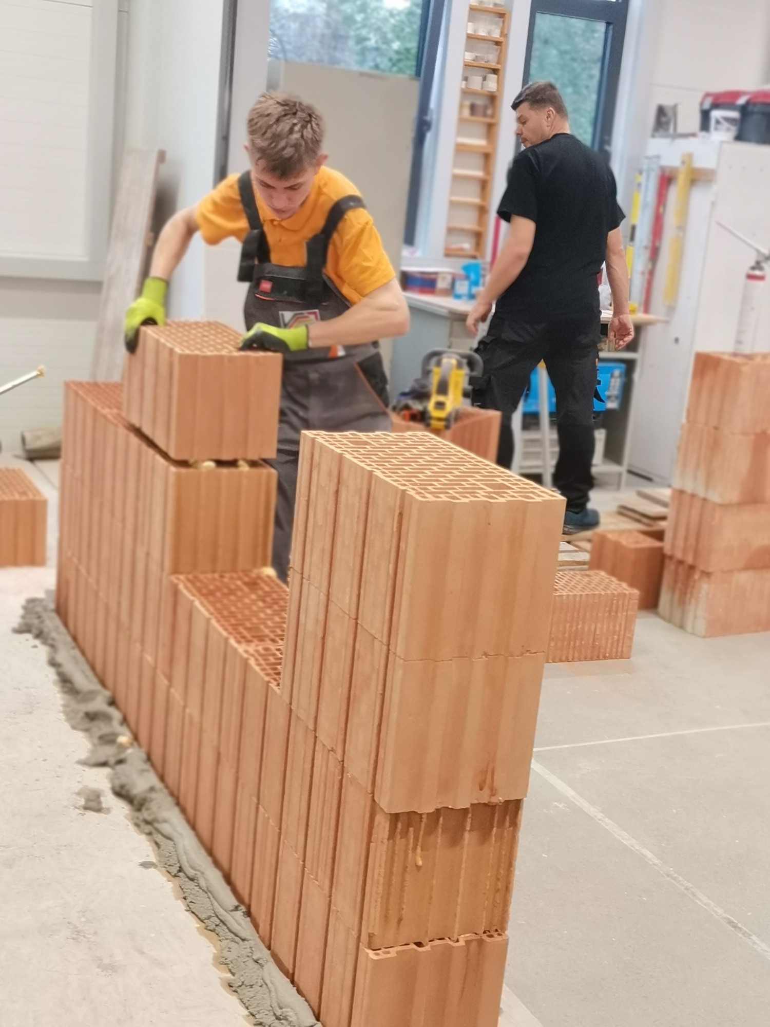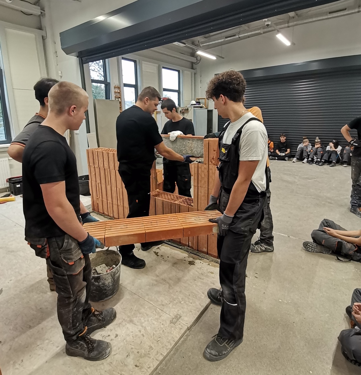 9 października 2025 r. na hali warsztatowej gościliśmy przedstawiciela firmy Wienerberger. Szkolenie to stało się już tradycją w naszej szkole. Udział w nim brali uczniowie - przedstawiciele klas: 1 ap, 2 Ap, 2 Bp, 3 Ap, 3 Ep, 4 Ep. Celem szkolenia było wzniesienie fragmentu muru z pustaków ceramicznych w systemie Dryfix. Część uczniów miała możliwość samodzielnego wykonania części zadania. Oprócz praktyki była również część wykładowa dotycząca działalności firmy, produktów, BHP w firmie i na budowie. Możemy powiedzieć, że po raz kolejny spotkanie przyniosło zwiększenie poziomu umiejętności i wiadomości przyszłych fachowców w dziedzinie budownictwa.