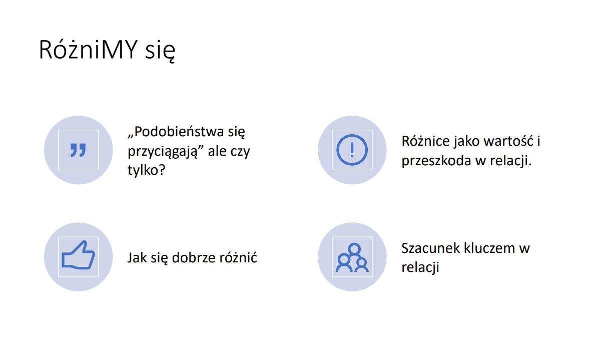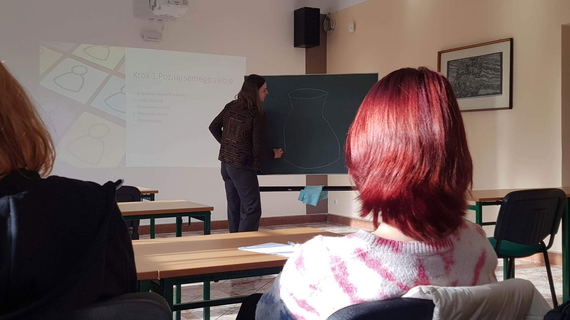 W dniach 26.10.2022 r. i 09.11.2022 r. odbyła się prelekcja "O budowaniu relacji" w klasach I przeprowadzona przez psychologa z Poradni Psychologiczno-Pedagogicznej nr 3 Katowicach. W ramach prelekcji opowiedziano o znaczeniu różnic i podobieństw w relacji, o asertywnej postawie wobec własnych granic w kontakcie z innymi, o sprzyjających metodach komunikacji w relacjach, a także o konfliktach. Prelekcja miała charakter mieszany, z elementami ćwiczeń warsztatowych.