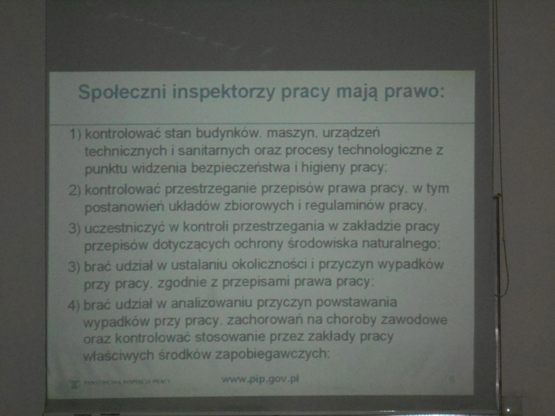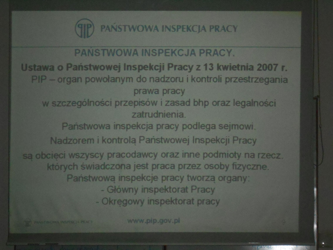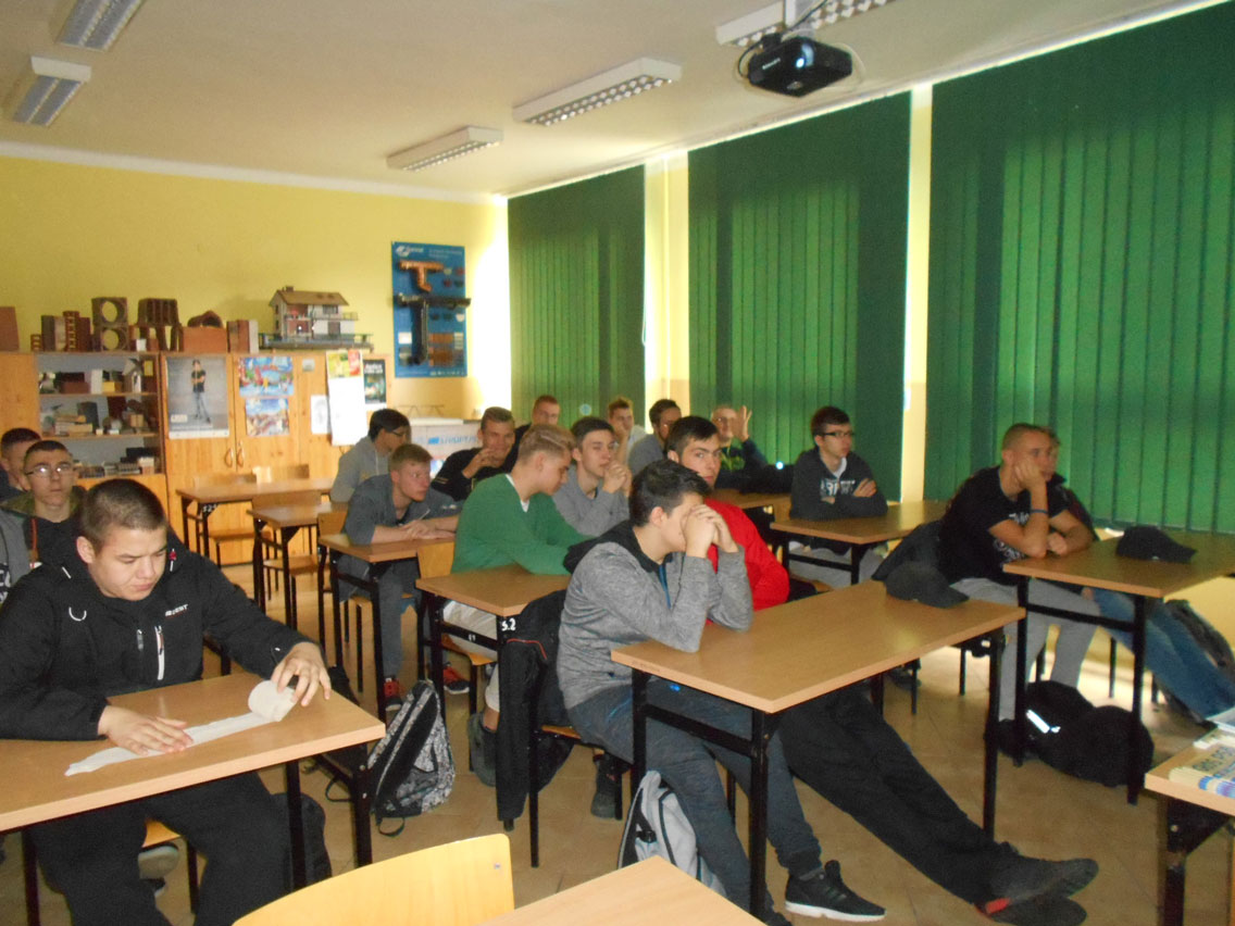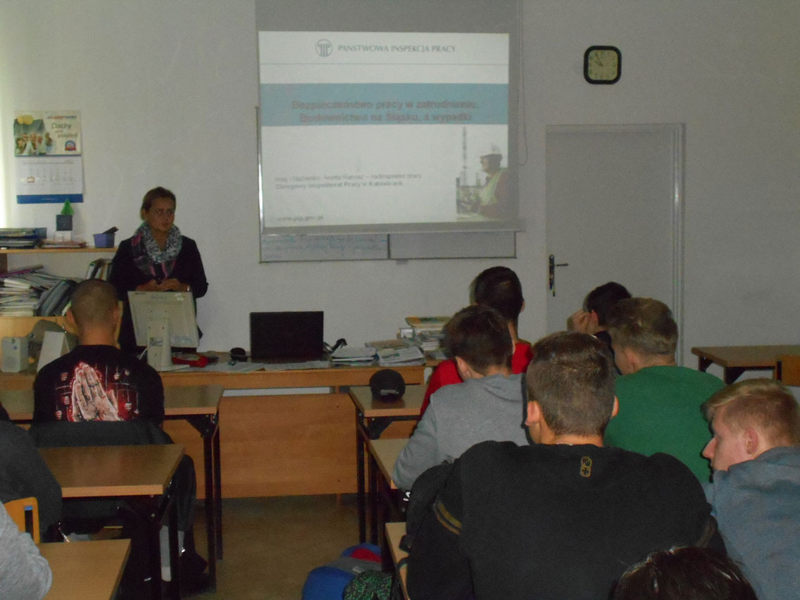 W wykładzie uczestniczyli uczniowie z klasy 2 a BZIS oraz grupa budowlana z klasy 3 A. Tematyka wykładu obejmowała zagadnienia związane z bezpieczeństwem pracy na budowie – na podstawie wypadku śmiertelnego przez przysypanie w wykopie liniowym, wąskoprzestrzennym oraz Instytucje Nadzoru nad warunkami pracy.